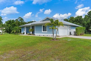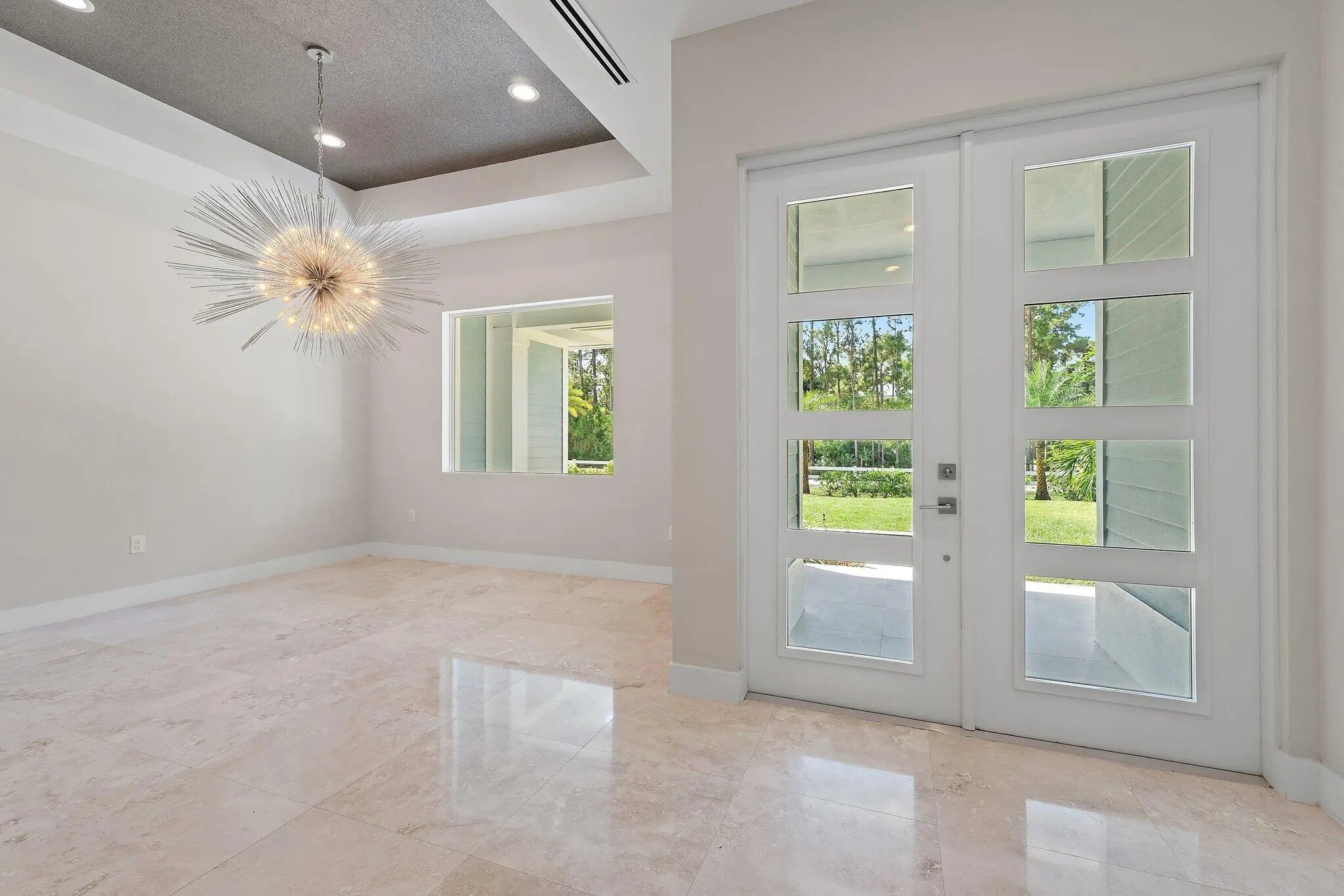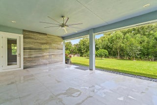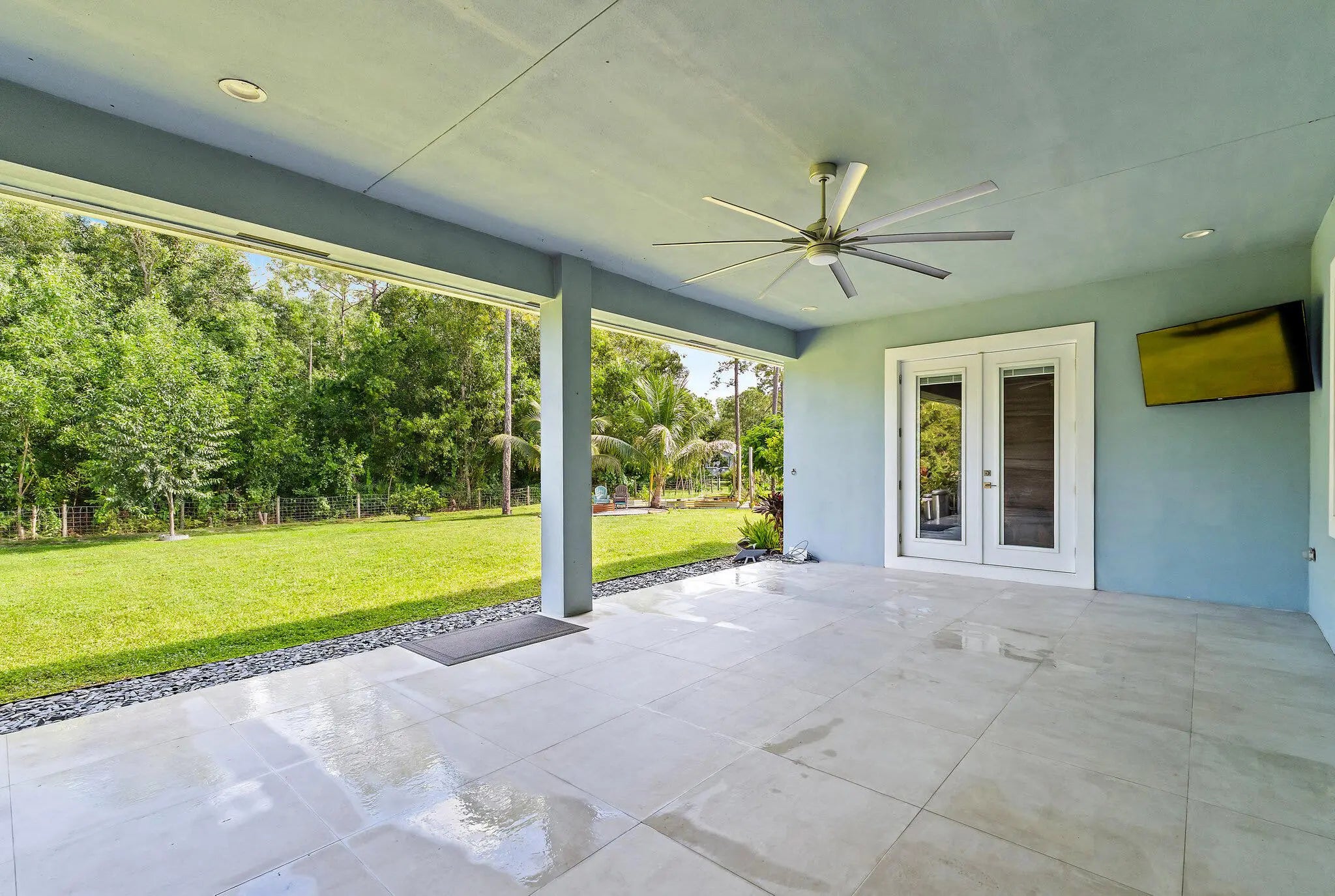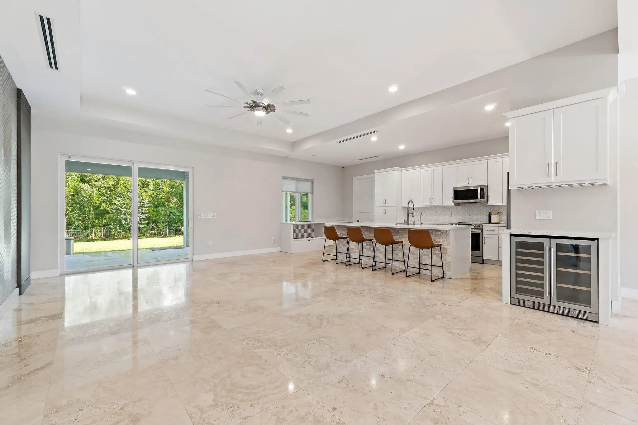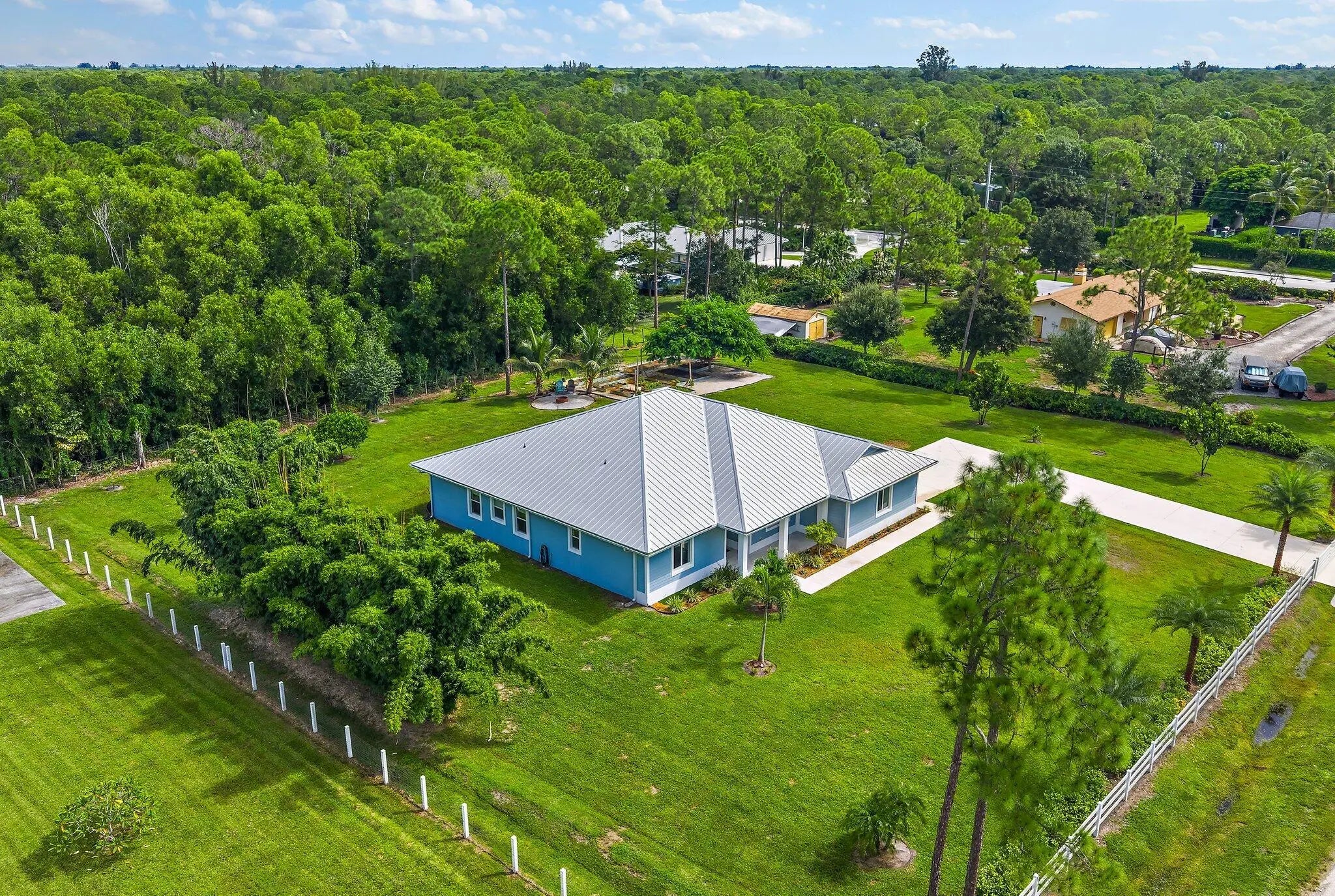 2022 CBS home on over an acre in Jupiter Farms with no HOA. This single-level residence offers 4 bedrooms, 3 bathrooms, and a spacious open-concept layout with travertine and luxury vinyl plank flooring throughout. The kitchen features quartz countertops, a large island with seating, shaker cabinetry, stainless steel appliances, and a built-in wine fridge. The primary suite includes a walk-in closet, spa-style bathroom with soaking tub, dual vanities, and a large glass-enclosed shower. Upgrades include full impact windows and doors, standing seam metal roof (2021), two Trane A/C units (2022) with attic service platform, and an electric water heater (2021). The fully fenced yard includes an electric gate, porcelain-tiled front and back porches, a 2,000 sq. ft. vegetable garden, fruit trees, and a 6-zone irrigation system. Plenty of space for RVs, boats, pets, or future additions. Located on a quiet street with easy access to town, beaches, and A-rated schools.