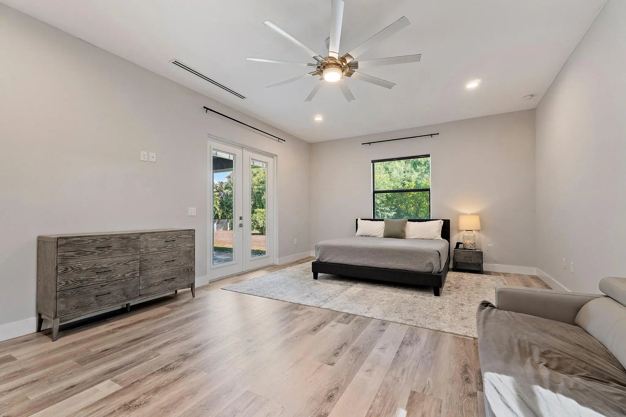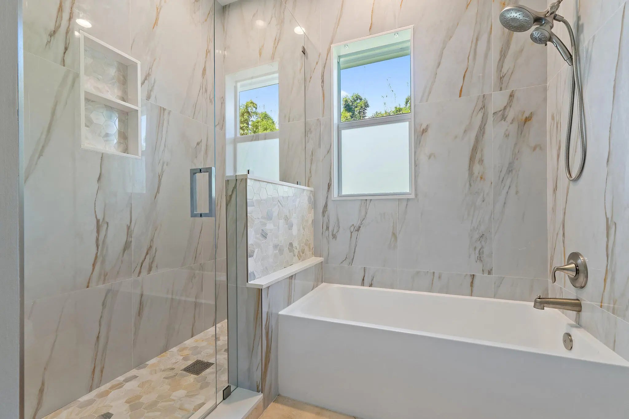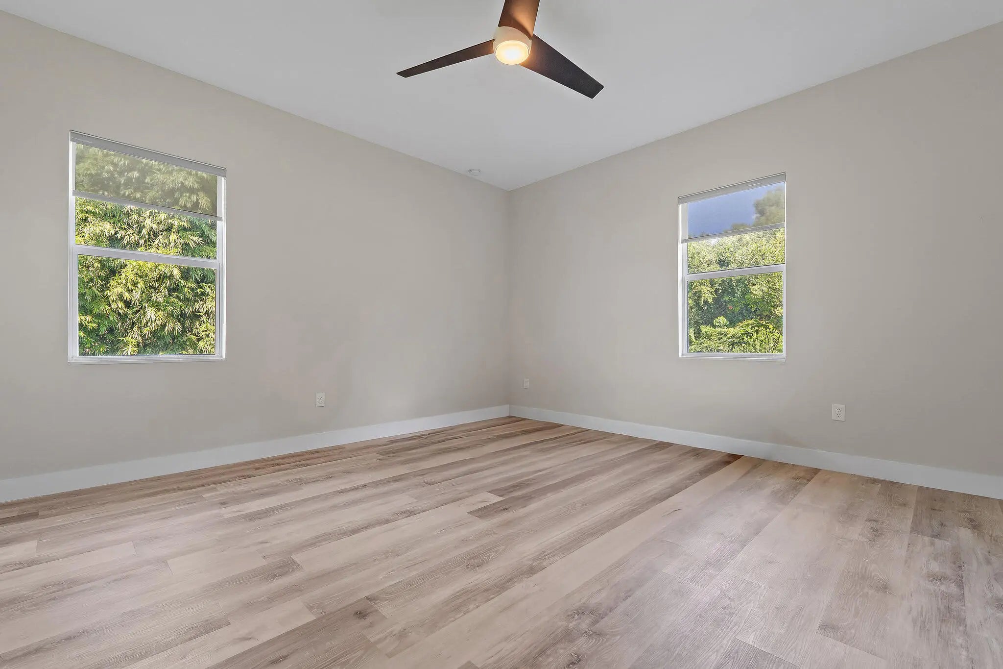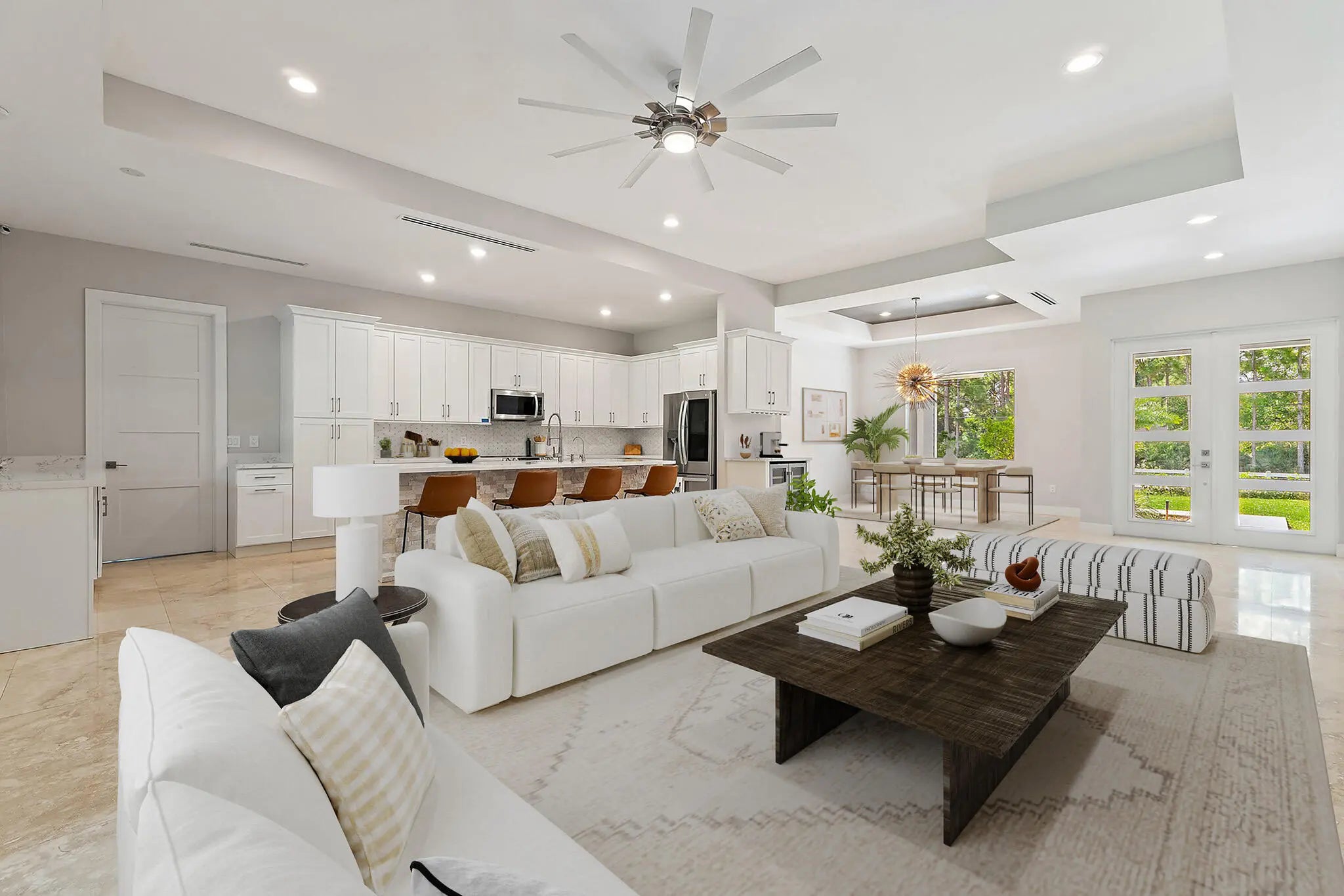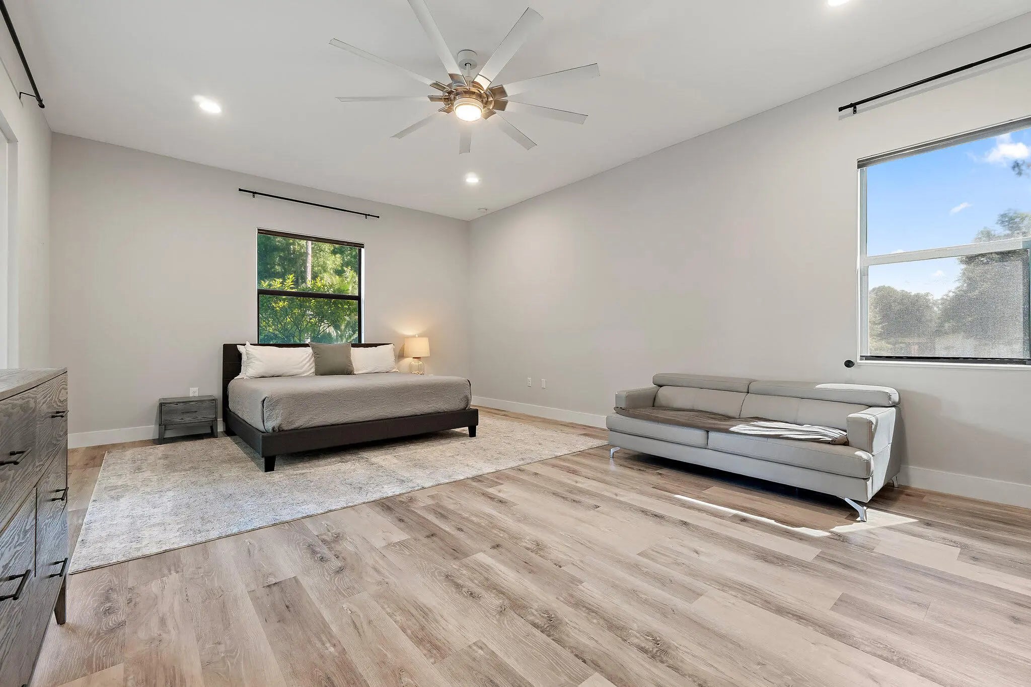 2022 CBS home on over an acre in Jupiter Farms with no HOA. This single-level residence offers 4 bedrooms, 3 bathrooms, and a spacious open-concept layout with travertine and luxury vinyl plank flooring throughout. The kitchen features quartz countertops, a large island with seating, shaker cabinetry, stainless steel appliances, and a built-in wine fridge. The primary suite includes a walk-in closet, spa-style bathroom with soaking tub, dual vanities, and a large glass-enclosed shower. Upgrades include full impact windows and doors, standing seam metal roof (2021), two Trane A/C units (2022) with attic service platform, and an electric water heater (2021). The fully fenced yard includes an electric gate, porcelain-tiled front and back porches, a 2,000 sq. ft. vegetable garden, fruit trees, and a 6-zone irrigation system. Plenty of space for RVs, boats, pets, or future additions. Located on a quiet street with easy access to town, beaches, and A-rated schools.