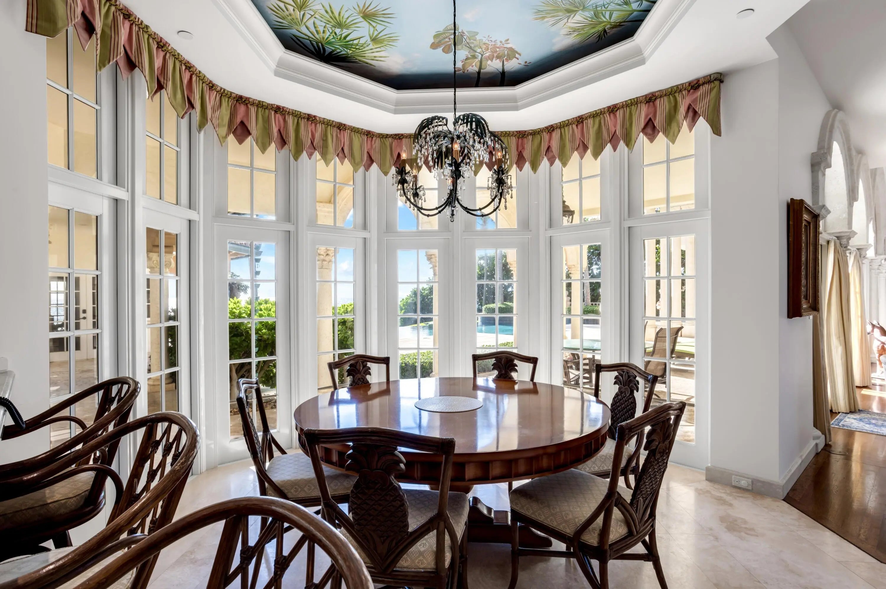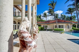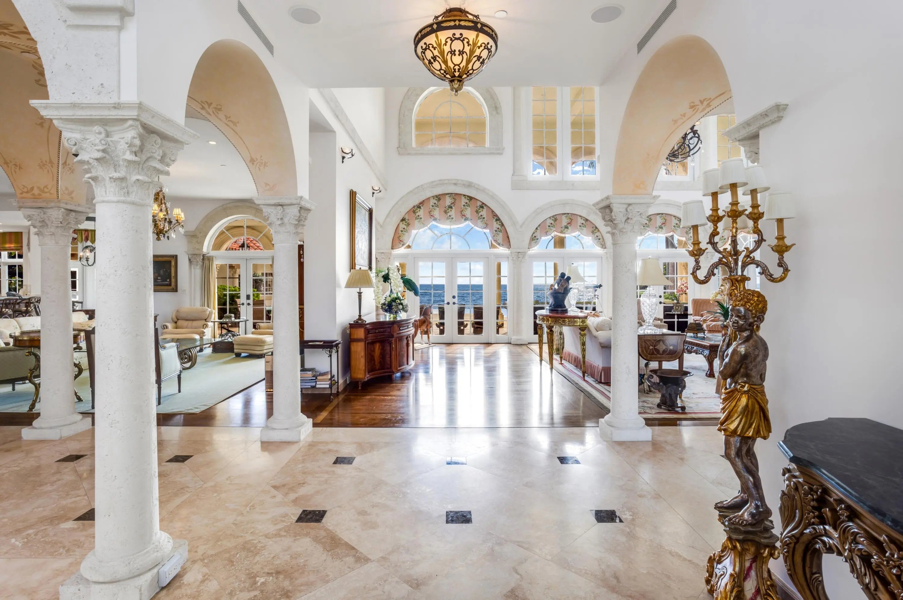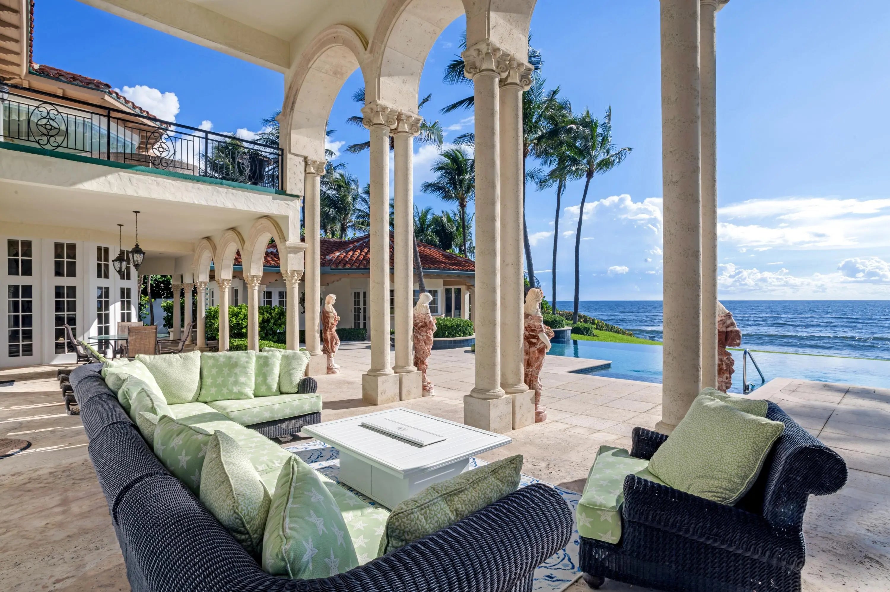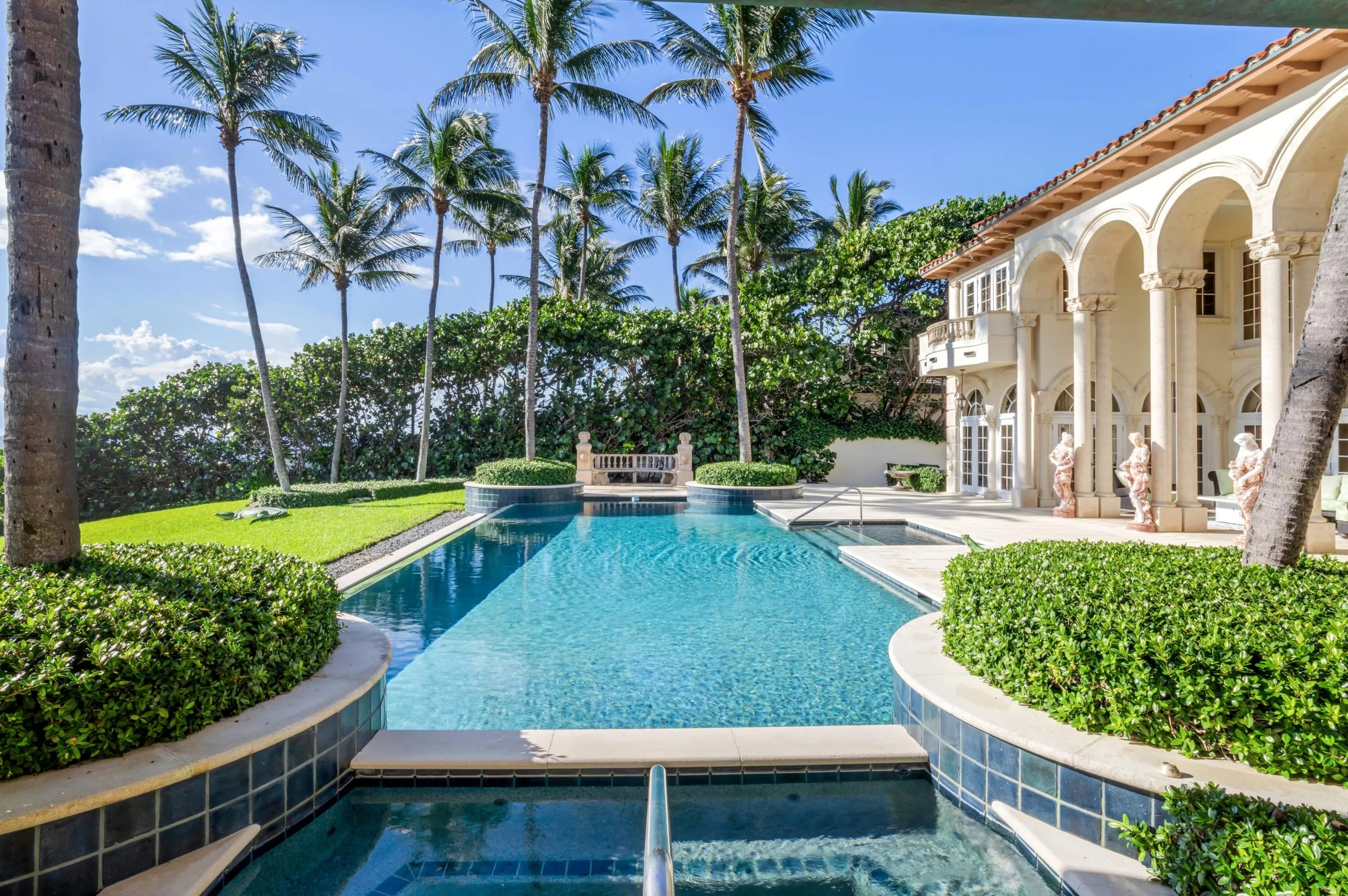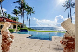 In a gorgeous tropical setting on the beach in Ocean Ridge, this elegant villa commands magnificent ocean panoramas. Loggias, terraces and balconies bring outdoor living indoors, while the estate's interiors are optimized for ocean views. This architectural masterpiece, complete with every amenity accounted for, is one of Palm Beach County's most complete and compelling private lease offerings. Ocean Ridge, Florida: One of the Gold Coast's best-kept secrets, Ocean Ridge is prized for its tranquility, relaxed ambiance, and unspoiled barrier island beauty nestled between the Atlantic Ocean and Intracoastal Waterway. Midway between Palm Beach and Boca Raton, Ocean Ridge is near a variety of boutique shops and gourmet restaurants as well as entertainment, cultural and sport venues, with the added convenience of Palm Beach International Airport a 20±-minute drive away. PROPERTY: On almost an acre of tropically landscaped gardens and sweeping lawns, this gated estate with 130 feet on the ocean invites an elevated outdoor living experience. The expansive loggia, with a summer kitchen and a gas grill, overlooks the heated infinity-edge pool with an overflow spa, while a seaside gazebo serves as a picturesque ocean-view perch. The detached guest house also serves as a cabana, with a living room, kitchenette, bedroom and full cabana bath. RESIDENCE: Resembling a Mediterranean villa reminiscent of the South of France, this lavishly furnished oceanfront six-bedroom, 12,968± total-square-foot estate blends elegance with ease that elevates resort-style living to a new level of luxury. Through double glass doors adorned with wrought iron, the grand entry foyer unfolds past the dramatic circular staircase set within a tower and flows through colonnaded galleries to the magnificent salon, crowned by a soaring two-story ceiling. A gas fireplace, topped by a striking overmantel trumeau, creates a welcoming ambience, while four sets of French doors to the ocean-view loggia invite the outside in. For a moment of quiet respite, step into the library, featuring custom built-in cabinetry, a coffered ceiling and French doors that also open to the ocean-view loggia and pool. From the gracious dining room, a butler's pantry accesses the cook-island kitchen, fitted with custom wood cabinetry, granite countertops, and professional-grade appliances. In an open layout, the kitchen adjoins an intimate ocean-view breakfast area and the family room with a large wet bar. Completing the first-floor layout are an ensuite guest bedroom and a laundry room. Upstairs, the primary suite, an oasis of serenity, opens to a large ocean-view balcony. Details of the suite include a coffered ceiling, gas fireplace, custom-fitted walk-in closets and a spa-inspired light-filled bathroom fitted with dual vanities, a soaking tub, a walk-in shower and two water closets. The VIP guest bedroom suite, which also opens to an ocean-view balcony, comprises banks of wall closets and a large bathroom with double sinks, a spa tub and walk-in shower. Perfect for children, one of the guest bedroom suites is fitted with built-in beds, and its ensuite bathroom is finished with whimsical wave-patterned decorator tile in the shower, while the vanity with dual sinks features luminescent undercounter lighting. On the lower level are staff quarters and access to the garages that accommodate three cars. With vast ocean views, complete architectural harmony and every amenity accounted for, this is one of Palm Beach County's most complete and compelling private lease offerings. The information herein is deemed reliable and subject to errors, omissions or changes without notice. The information has been derived from architectural plans or county records. Buyer should verify all measurements DISCLAIMER: Information published or otherwise provided by the listing company and its representatives including but not limited to prices, measurements, square footages, lot sizes, calculations, statistics, and videos are deemed reliable but are not guaranteed and are subject to errors, omissions or changes without notice. All such information should be independently verified by any prospective purchaser or seller. Parties should perform their own due diligence to verify such information prior to a sale or listing. Listing company expressly disclaims any warranty or representation regarding such information. Prices published are either list price, sold price, and/or last asking price. The listing company participates in the Multiple Listing Service and IDX. The properties published as listed and sold are not necessarily exclusive to listing company and may be listed or have sold with other members of the Multiple Listing Service. Transactions where listing company represented both buyers and sellers are calculated as two sales. "No payments made until title passes" Some affiliations may not be applicable to certain geographic areas. If your property is currently listed with another broker, please disregard any solicitation for services. Information published or otherwise provided by seller, listing company or its representatives is deemed reliable but are not guaranteed and subject to errors, omissions, or changes without notice. Copyright 2024 by the listing company. All Rights Reserved.