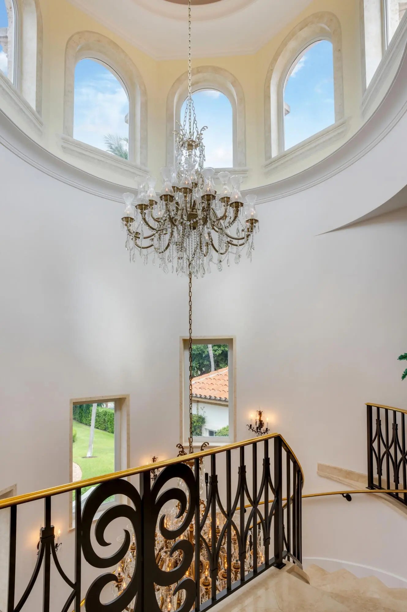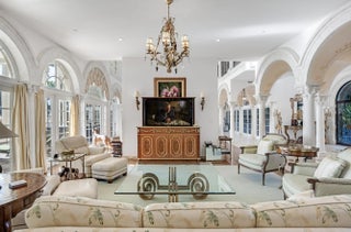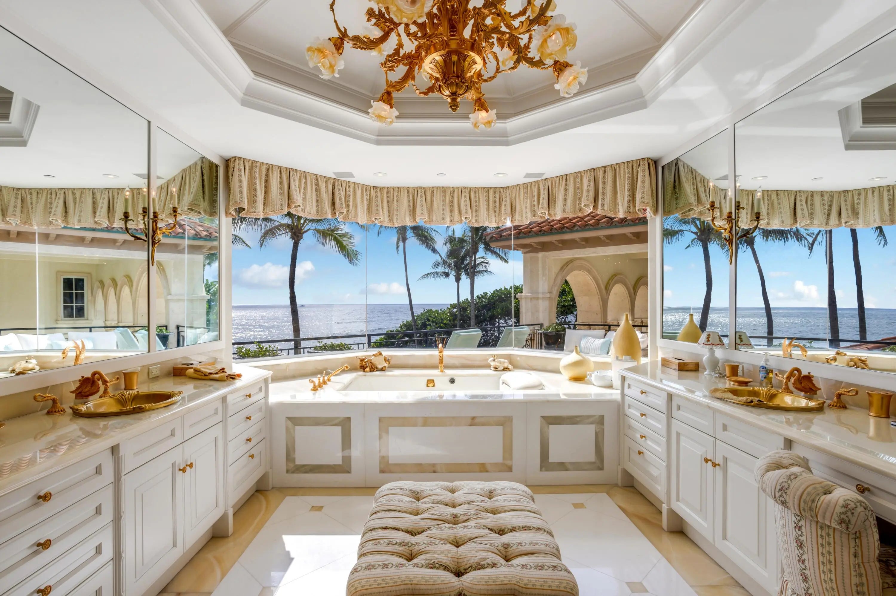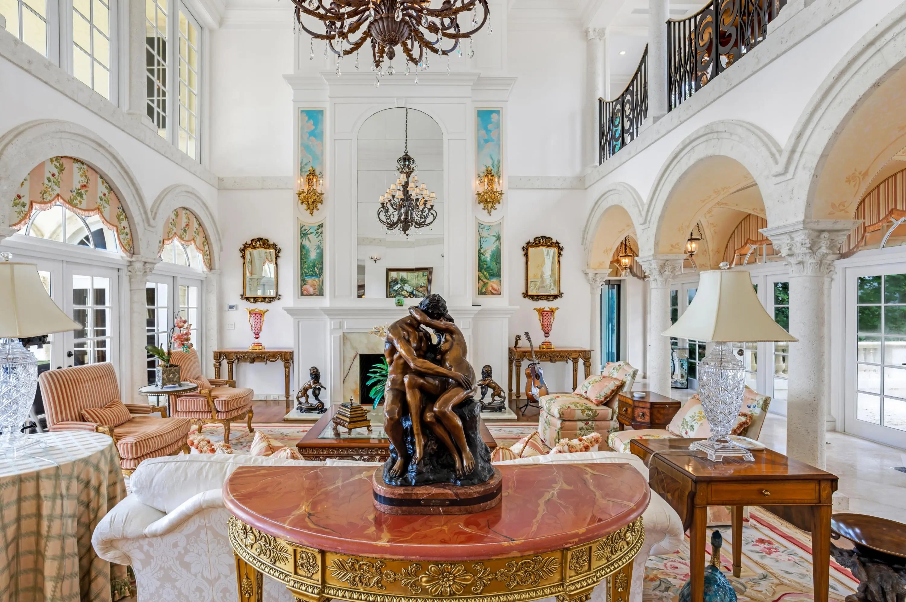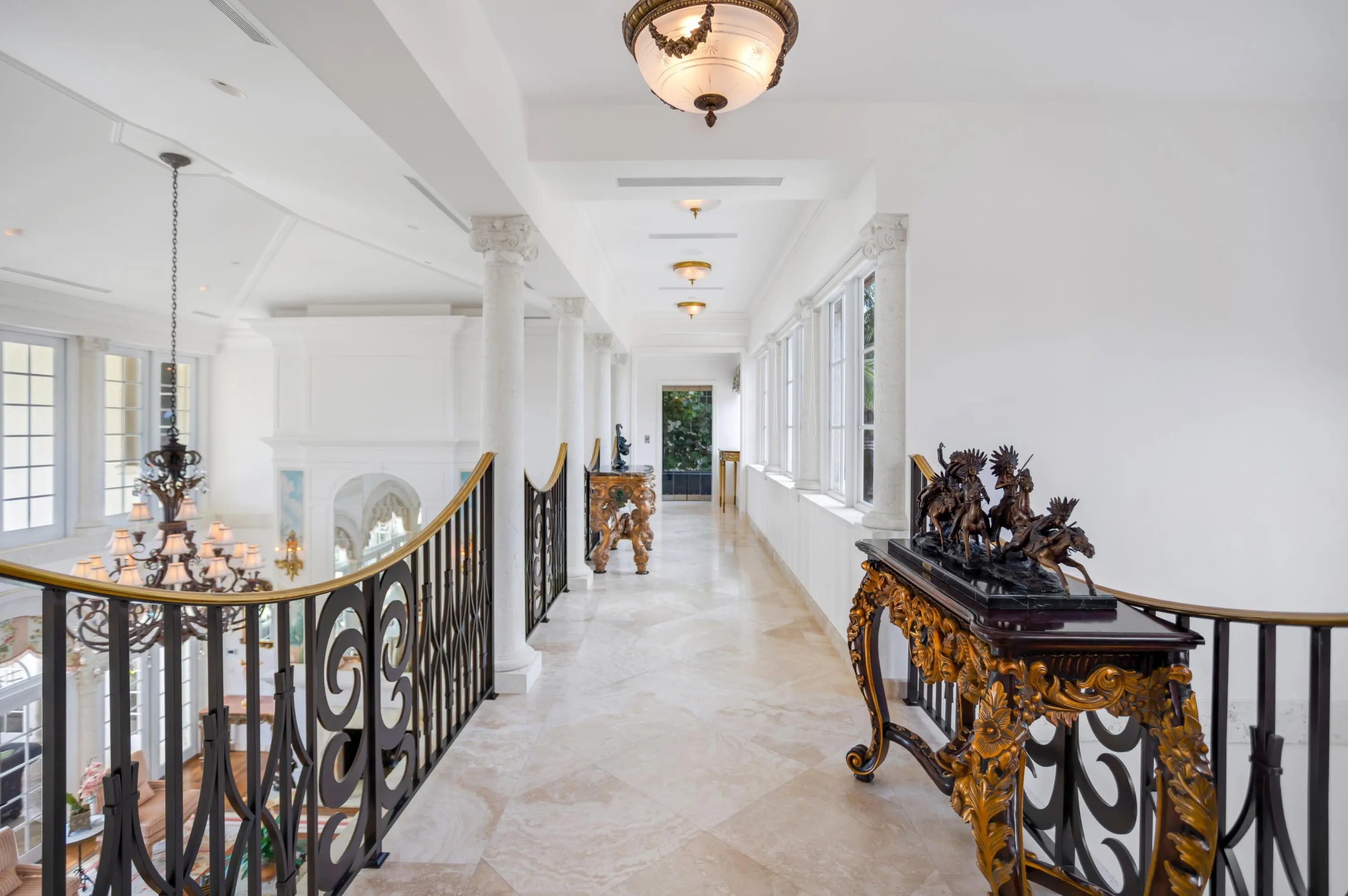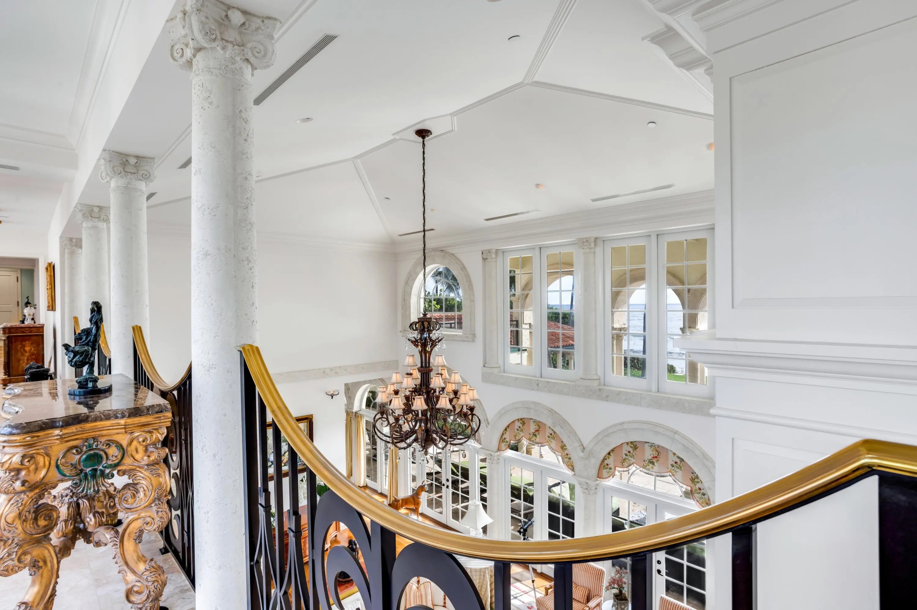 In a gorgeous tropical setting on the beach in Ocean Ridge, this elegant villa commands magnificent ocean panoramas. Loggias, terraces and balconies bring outdoor living indoors, while the estate's interiors are optimized for ocean views. This architectural masterpiece, complete with every amenity accounted for, is one of Palm Beach County's most complete and compelling private lease offerings. Ocean Ridge, Florida: One of the Gold Coast's best-kept secrets, Ocean Ridge is prized for its tranquility, relaxed ambiance, and unspoiled barrier island beauty nestled between the Atlantic Ocean and Intracoastal Waterway. Midway between Palm Beach and Boca Raton, Ocean Ridge is near a variety of boutique shops and gourmet restaurants as well as entertainment, cultural and sport venues, with the added convenience of Palm Beach International Airport a 20±-minute drive away. PROPERTY: On almost an acre of tropically landscaped gardens and sweeping lawns, this gated estate with 130 feet on the ocean invites an elevated outdoor living experience. The expansive loggia, with a summer kitchen and a gas grill, overlooks the heated infinity-edge pool with an overflow spa, while a seaside gazebo serves as a picturesque ocean-view perch. The detached guest house also serves as a cabana, with a living room, kitchenette, bedroom and full cabana bath. RESIDENCE: Resembling a Mediterranean villa reminiscent of the South of France, this lavishly furnished oceanfront six-bedroom, 12,968± total-square-foot estate blends elegance with ease that elevates resort-style living to a new level of luxury. Through double glass doors adorned with wrought iron, the grand entry foyer unfolds past the dramatic circular staircase set within a tower and flows through colonnaded galleries to the magnificent salon, crowned by a soaring two-story ceiling. A gas fireplace, topped by a striking overmantel trumeau, creates a welcoming ambience, while four sets of French doors to the ocean-view loggia invite the outside in. For a moment of quiet respite, step into the library, featuring custom built-in cabinetry, a coffered ceiling and French doors that also open to the ocean-view loggia and pool. From the gracious dining room, a butler's pantry accesses the cook-island kitchen, fitted with custom wood cabinetry, granite countertops, and professional-grade appliances. In an open layout, the kitchen adjoins an intimate ocean-view breakfast area and the family room with a large wet bar. Completing the first-floor layout are an ensuite guest bedroom and a laundry room. Upstairs, the primary suite, an oasis of serenity, opens to a large ocean-view balcony. Details of the suite include a coffered ceiling, gas fireplace, custom-fitted walk-in closets and a spa-inspired light-filled bathroom fitted with dual vanities, a soaking tub, a walk-in shower and two water closets. The VIP guest bedroom suite, which also opens to an ocean-view balcony, comprises banks of wall closets and a large bathroom with double sinks, a spa tub and walk-in shower. Perfect for children, one of the guest bedroom suites is fitted with built-in beds, and its ensuite bathroom is finished with whimsical wave-patterned decorator tile in the shower, while the vanity with dual sinks features luminescent undercounter lighting. On the lower level are staff quarters and access to the garages that accommodate three cars. With vast ocean views, complete architectural harmony and every amenity accounted for, this is one of Palm Beach County's most complete and compelling private lease offerings. The information herein is deemed reliable and subject to errors, omissions or changes without notice. The information has been derived from architectural plans or county records. Buyer should verify all measurements DISCLAIMER: Information published or otherwise provided by the listing company and its representatives including but not limited to prices, measurements, square footages, lot sizes, calculations, statistics, and videos are deemed reliable but are not guaranteed and are subject to errors, omissions or changes without notice. All such information should be independently verified by any prospective purchaser or seller. Parties should perform their own due diligence to verify such information prior to a sale or listing. Listing company expressly disclaims any warranty or representation regarding such information. Prices published are either list price, sold price, and/or last asking price. The listing company participates in the Multiple Listing Service and IDX. The properties published as listed and sold are not necessarily exclusive to listing company and may be listed or have sold with other members of the Multiple Listing Service. Transactions where listing company represented both buyers and sellers are calculated as two sales. "No payments made until title passes" Some affiliations may not be applicable to certain geographic areas. If your property is currently listed with another broker, please disregard any solicitation for services. Information published or otherwise provided by seller, listing company or its representatives is deemed reliable but are not guaranteed and subject to errors, omissions, or changes without notice. Copyright 2024 by the listing company. All Rights Reserved.