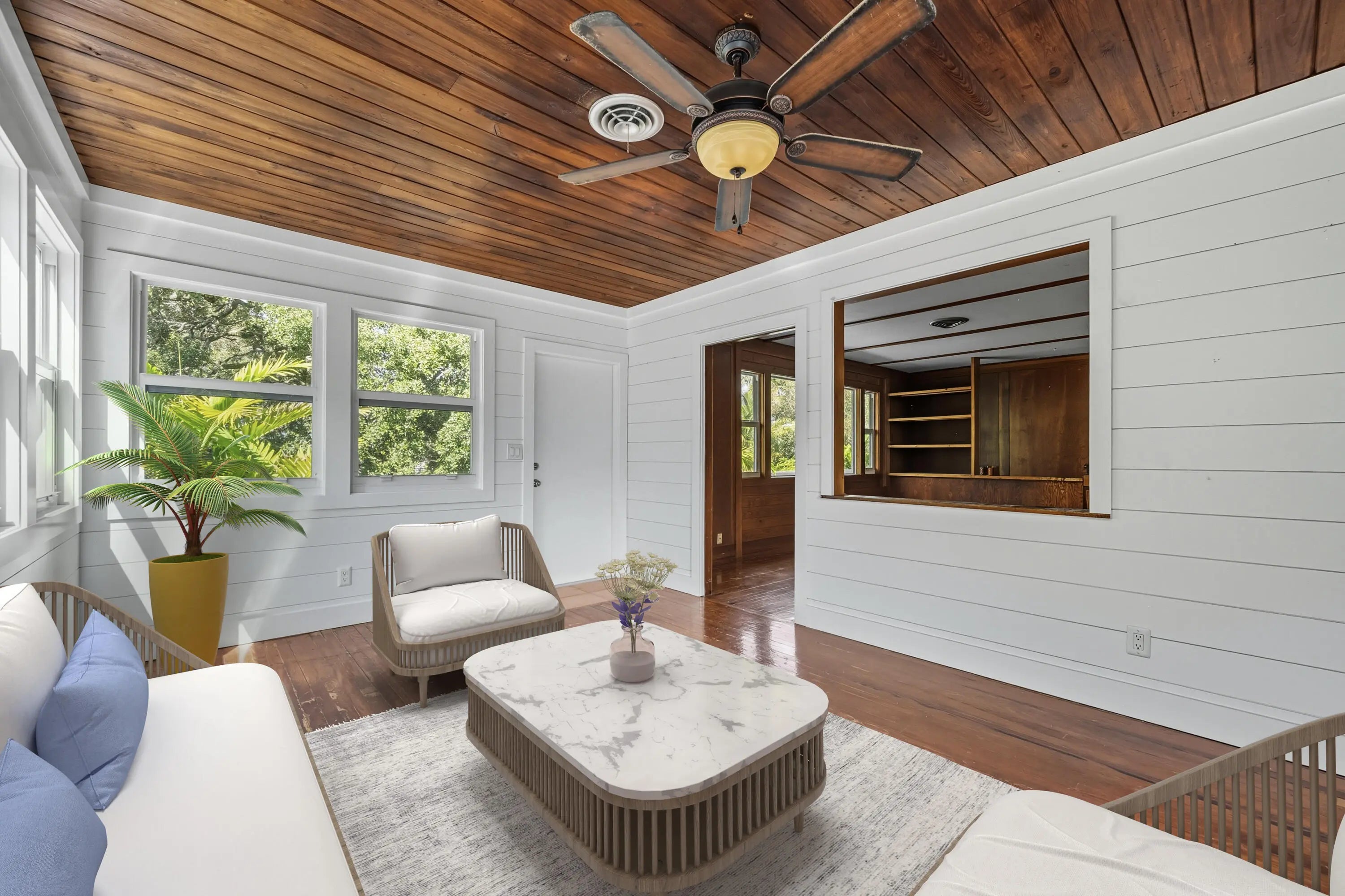 Discover this opportunity to own a spacious 4 bedroom home with garage on larger than 1/3 acre homesite. Home has complete impact glass windows & doors plus a durable metal roof. Located on a very quiet street near downtown Stuart with a spectacular 300 year old legacy oak tree in the front yard. Concrete Block CBS on 1st floor and Hardiplank upstairs. Huge 1000 sq.ft. Trex type wrap around balcony. Dade County pine staircase and floors upstairs and tile downstairs. Paver driveway. NO HOA! Pet friendly, truck friendly, and boat & trailer friendly! Conveniently located less than 5 minutes to downtown Stuart.