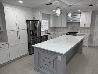 True gem for the particular buyer, with custom finishes unheard of in this price range. The kitchen alone is a show-stopper! A beautifully designed and coordinated home on a private cul-de-sac lot. It has porcelain tile floors (no spongy LVF), and smooth ceilings throughout. Every room is adorned with upgraded fixtures/appliances and professional molding. The gorgeous tropical landscape makes your salt water pool area seem like Shangri-La. 2021 roof and 2018 HVAC; Sprinkler system; New pool equipment including 2 speed pump; Upgraded insulation; Induction range; LED lighting; Hurricane rated vinyl fence. No cast iron, galvanized, or polybutylene pipes, lead paint, asbestos-laden popcorn ceiling/insulation, well pumps, or septic system.