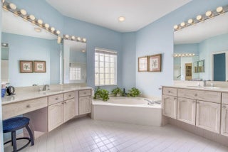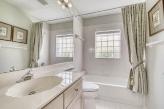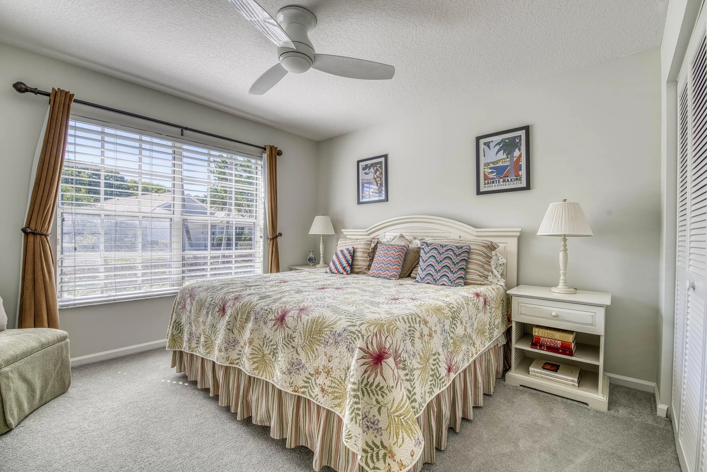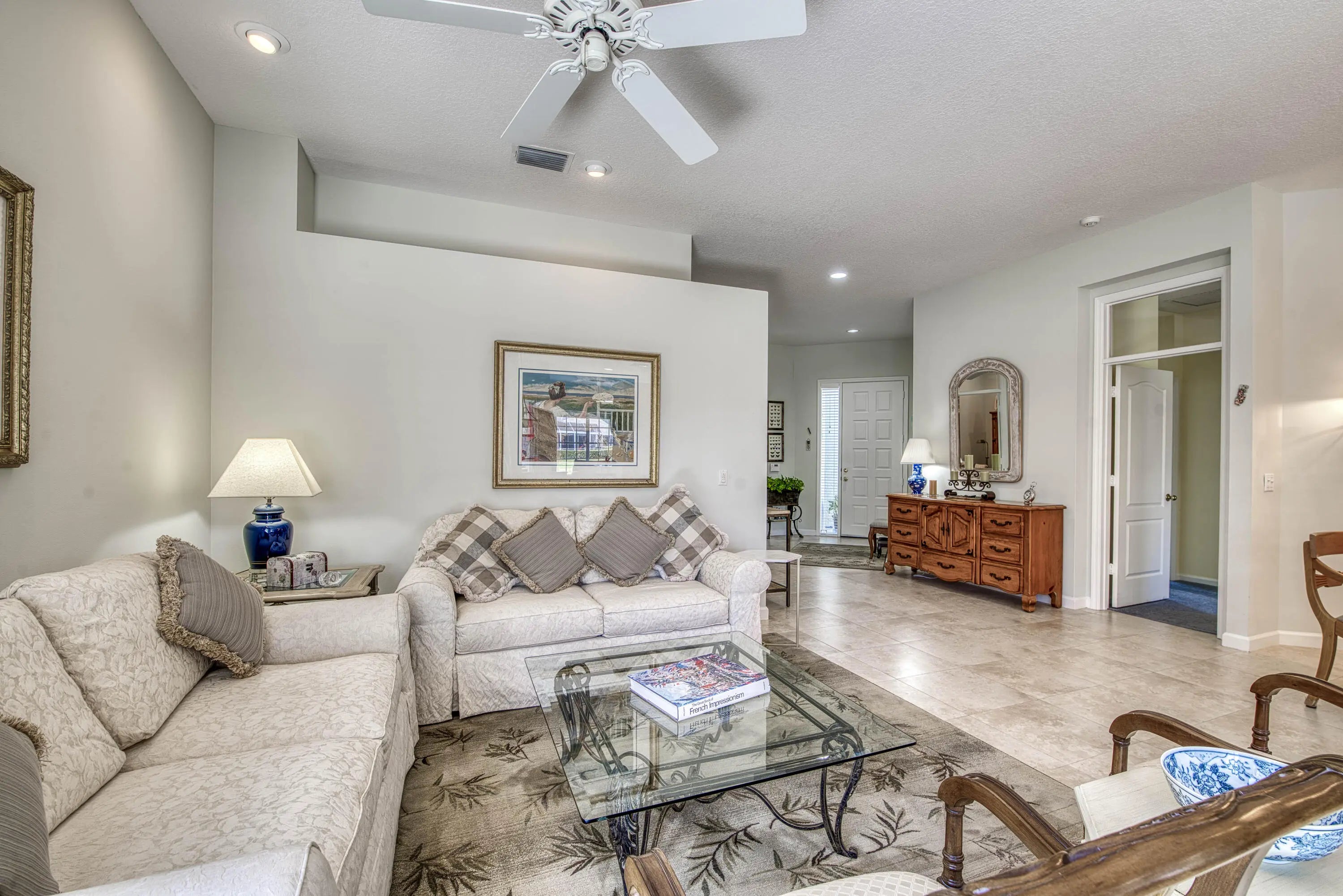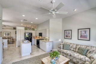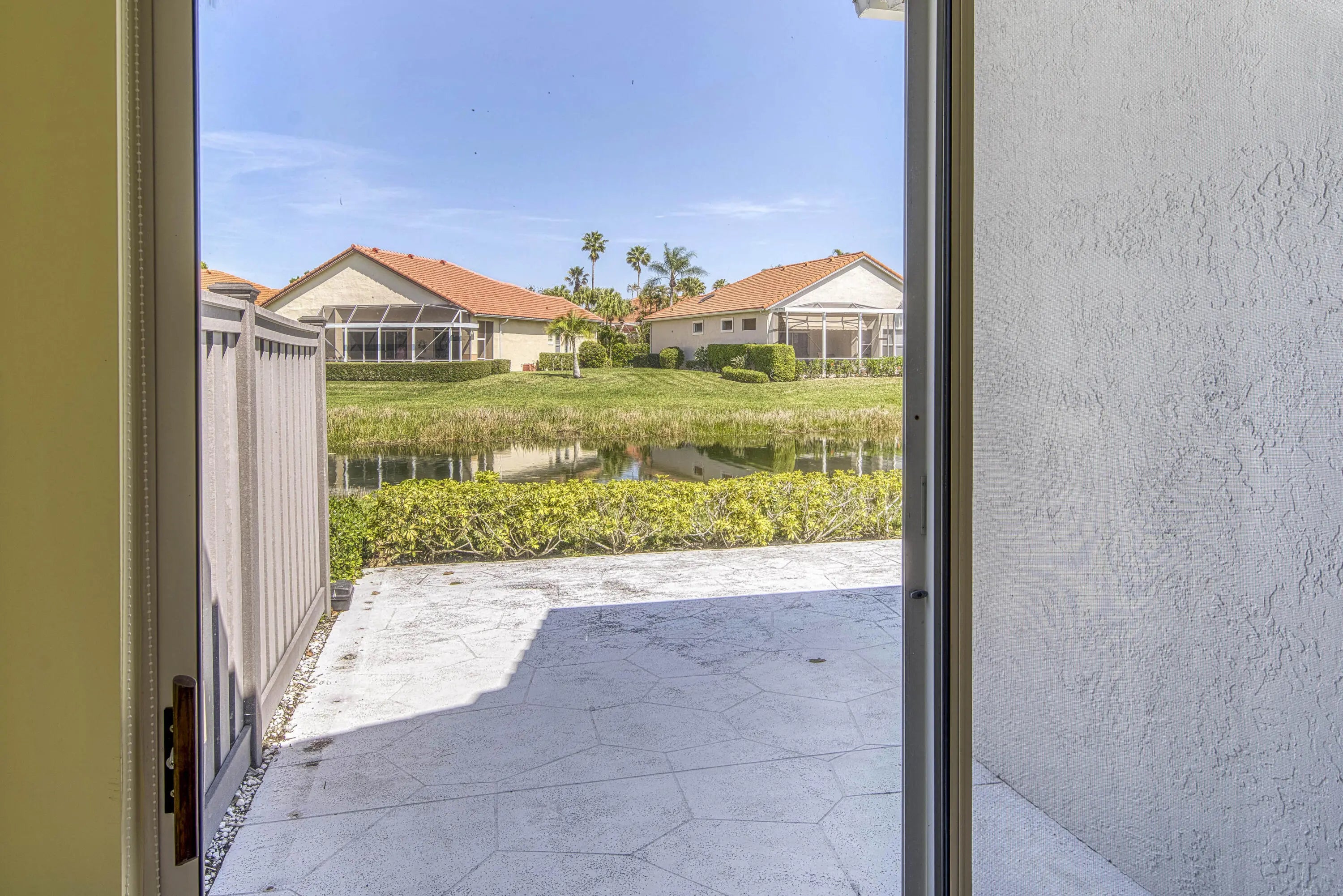 Welcome to this 2,023 sq ft CBS single-family home, featuring 3 bedrooms and 3 bathrooms in the prestigious Masters at Eagleton neighborhood of PGA National. The bright living room is filled with natural light from sliding glass doors and recessed ceiling lighting, complemented by off-white walls and neutral stone-look tile. Adjacent, the formal dining area offers a chandelier, wall sconces, and recessed lighting, seamlessly connecting to the open-concept living space. The kitchen boasts linen-toned paneled cabinets, granite countertops, a neutral mosaic glass tile backsplash, black appliances, a prep island with sink and dishwasher, and a sunny breakfast nook in a bay window. The cozy family room overlooks tranquil lake views and provides access to the covered patio. A spacious office with en-suite bath offers flexibility as a guest suite. The primary suite features a seating area, walk-in closet, and private en-suite with dual vanities, Roman tub, glass-enclosed shower, and water closet. The guest bedroom is bright and comfortable, offering generous closet space and perfect for welcoming visitors. Outdoor living is enhanced by a covered side patio off the living and family rooms and an open back patio off the primary bedroom, perfect for relaxing or entertaining while enjoying serene lake views.