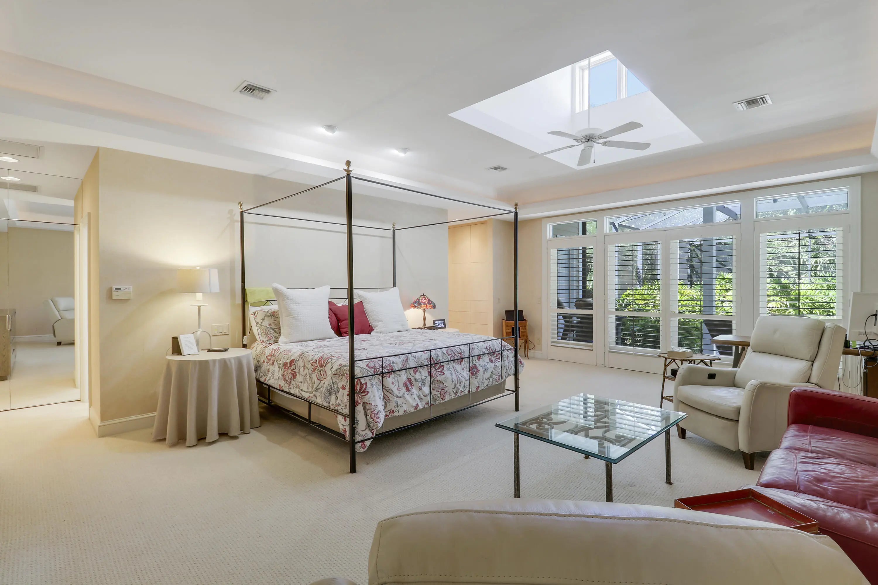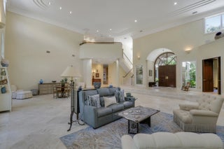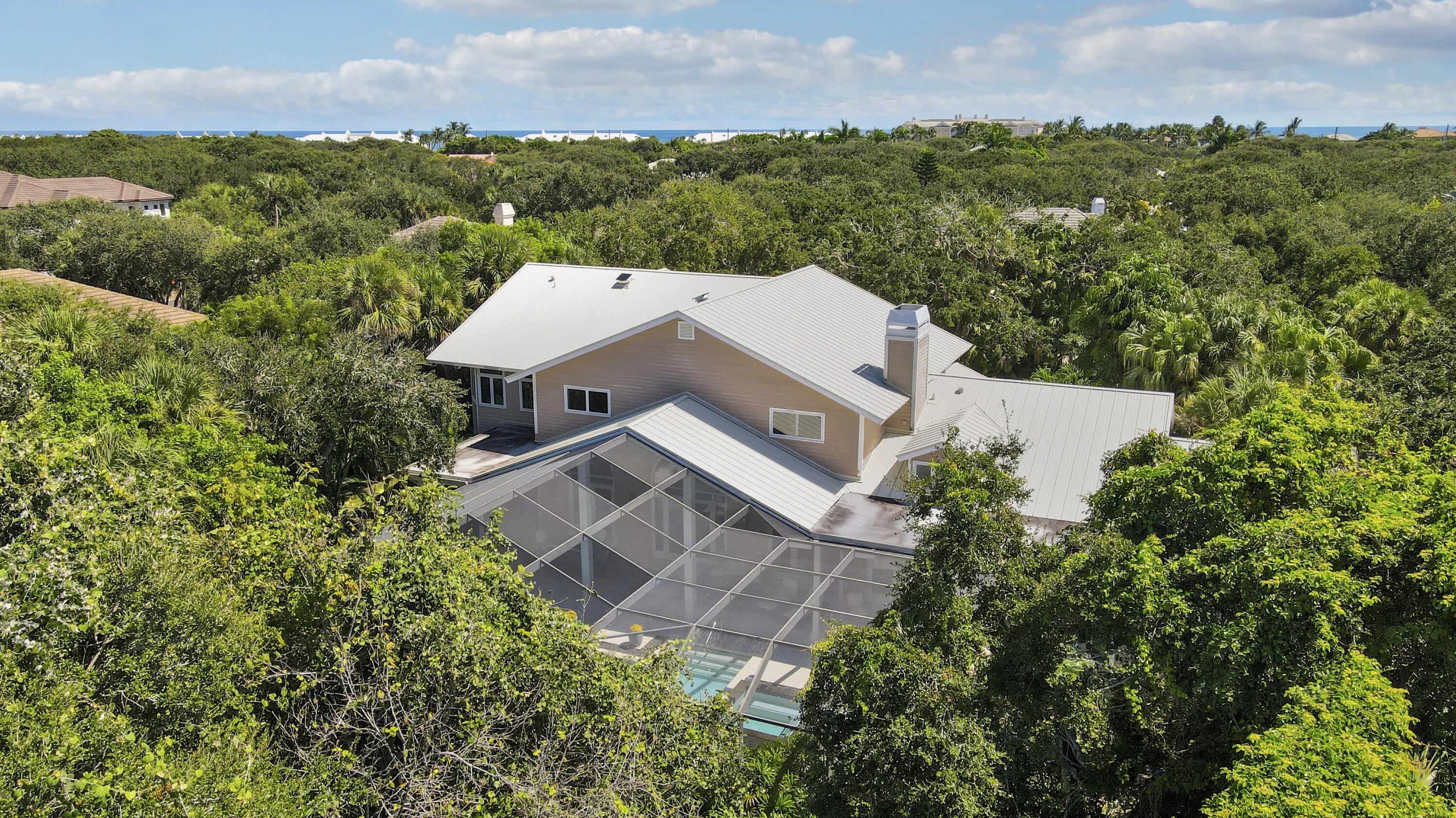 Elegant 4BR/5.1BA pool home in prestigious Indian Trails, offering ±5,800 SF of refined indoor-outdoor living on a lushly landscaped cul-de-sac. The grand entry opens to soaring ceilings and a dramatic great room with marble fireplace, arched windows, wet bar, and library with custom bookcases. The chef's kitchen features granite countertops, custom cabinetry, 5 burner gas stove and under-cabinet lighting. The first-floor primary suite is a true retreat with garden views, tray ceiling, and spa-like marble jacuzzi tub with dual vanities, and oversized walk-in shower. A dedicated pool bath adds convenience for guests. Upstairs, the large guest loft includes two bedrooms, with 2 full baths, and a bright sitting area. Enjoy the renovated screened pool and spa deck with hot tub, cascading water feature, and tropical landscaping. The covered patio features a granite-topped summer kitchen and stainless-steel grill and built in green egg and drink refrigerator. Community amenities include a clubhouse, pool, Har-Tru tennis courts, riverfront docks for boating, and a charming beach house with direct beach access via a scenic boardwalk. Recent upgrades include a new roof in 2021 and updated exterior lighting. Minutes to Vero's beaches, dining, and boutiques ~ this home offers the best of Florida coastal living!