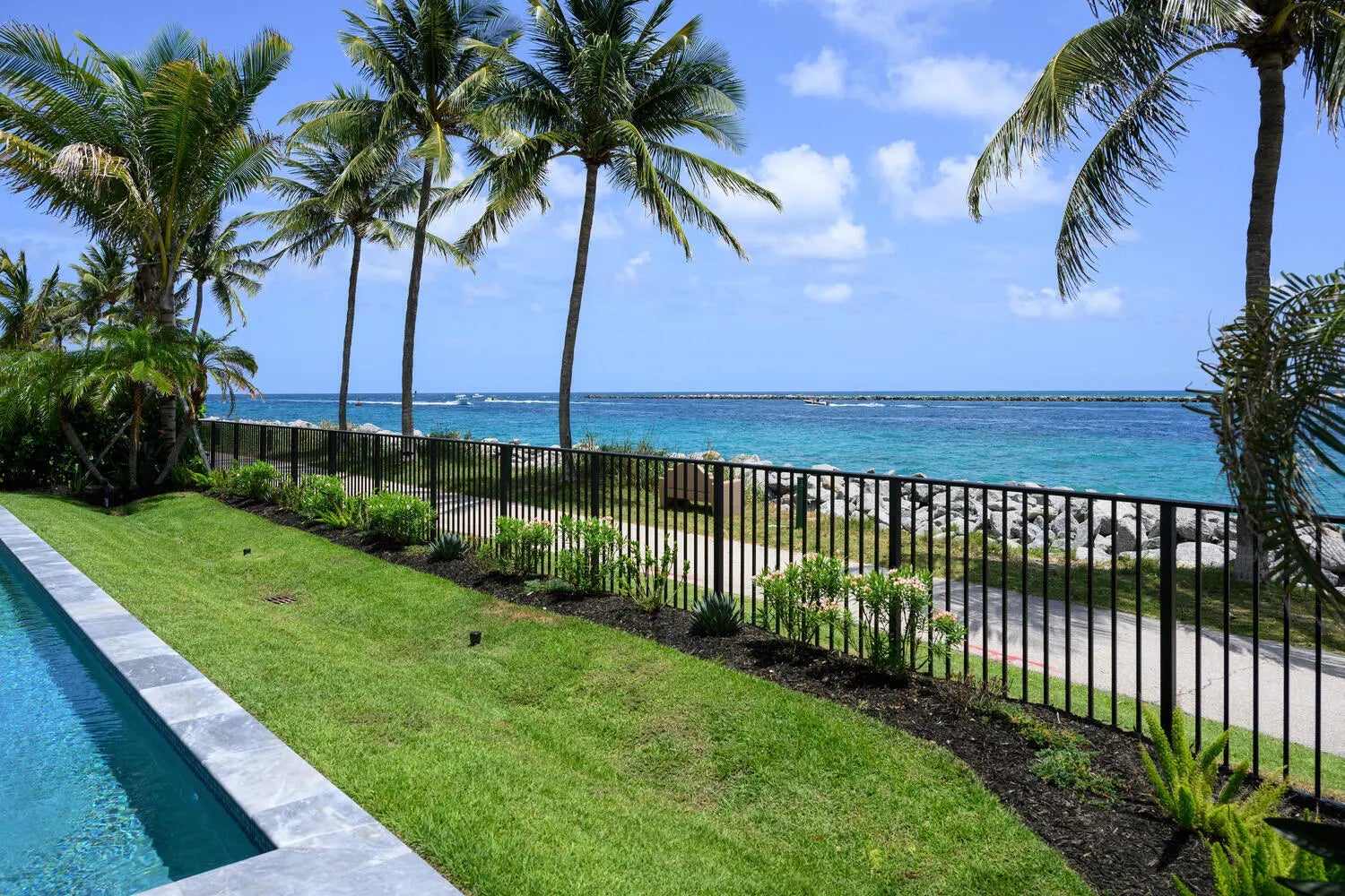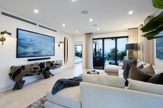 Waterfront luxury meets elevated design in Palm Beach Shores, located directly on the Palm Beach Inlet. This extraordinary second-floor residence at 206 Inlet Way offers a front-row seat to breathtaking turquoise waters and lush inlet views—an exclusive lifestyle opportunity in one of South Florida's most desirable boutique buildings. Expertly curated by Decorators Unlimited, this state of the art turnkey home is a true showpiece, blending elegance with smart-home convenience. Every detail has been thoughtfully selected—from custom wall coverings and designer lighting to recessed accents and stunning artwork throughout. Enjoy seamless indoor-outdoor living with a phantom privacy screen on the balcony, custom blackout blinds, and built-in surround sound in the kitchen, living room, and primary suite all easily controlled by your smartphone. Picture frame TVs and a Sonos sound bar elevate your entertainment experience. The gourmet kitchen is a chef's dream, featuring a large center island with a built-in wine refrigerator, Monogram stainless steel appliances, a five-burner gas range with griddle, under-cabinet lighting, sleek custom cabinetry, and a walk-in pantry with two beverage refrigerators. In the dining area, you'll find a custom built-in bar with beverage center and cabinetry perfect for entertaining in style. Retreat to a spa-inspired primary suite with a 17-foot double vanity, TV, private water closet, oversized shower, and custom walk-in closet. Oversized 48x48 porcelain tiles run throughout, adding a polished, modern edge to every room. Offered fully furnished and move-in ready just bring your suitcase. This rare waterfront offering combines refined style, cutting-edge technology, and postcard views into one unforgettable Palm Beach Shores address. One of a kind views of Palm Beach Inlet and Palm Beach Island. This condo in Palm Beach Shores is located in a gated community with only five residence creating an exclusive and private atmosphere. This building offers its own pool, and 206 Inlet Way stands out with private golf cart access for residents, a built-in summer kitchen with side burner, and a beautifully designed cabana club room complete with lounge seating, air conditioning, TVs, and a bar. Residents enjoy private beach access, custom landscape design throughout the property, 2 assigned parking spaces.(one interior and one exterior) Parking garage complete with epoxy flooring, epoxy-coated exterior staircases and additional parking for added convenience. Located just across from Palm Beach, this exceptional residence places you moments from world-class dining, luxury shopping on Worth Avenue, renowned golf courses, marinas, and the cultural vibrance of West Palm Beach. Whether you're unwinding by the water, exploring coastal trails, or enjoying the Palm Beaches social scene, this is South Florida living at its finest. Located close to cultural centers like Kravis Center, fine dining, world class fishing, beaches, recreation, and entertainment. Easy access to major highways and Palm Beach International Airport.