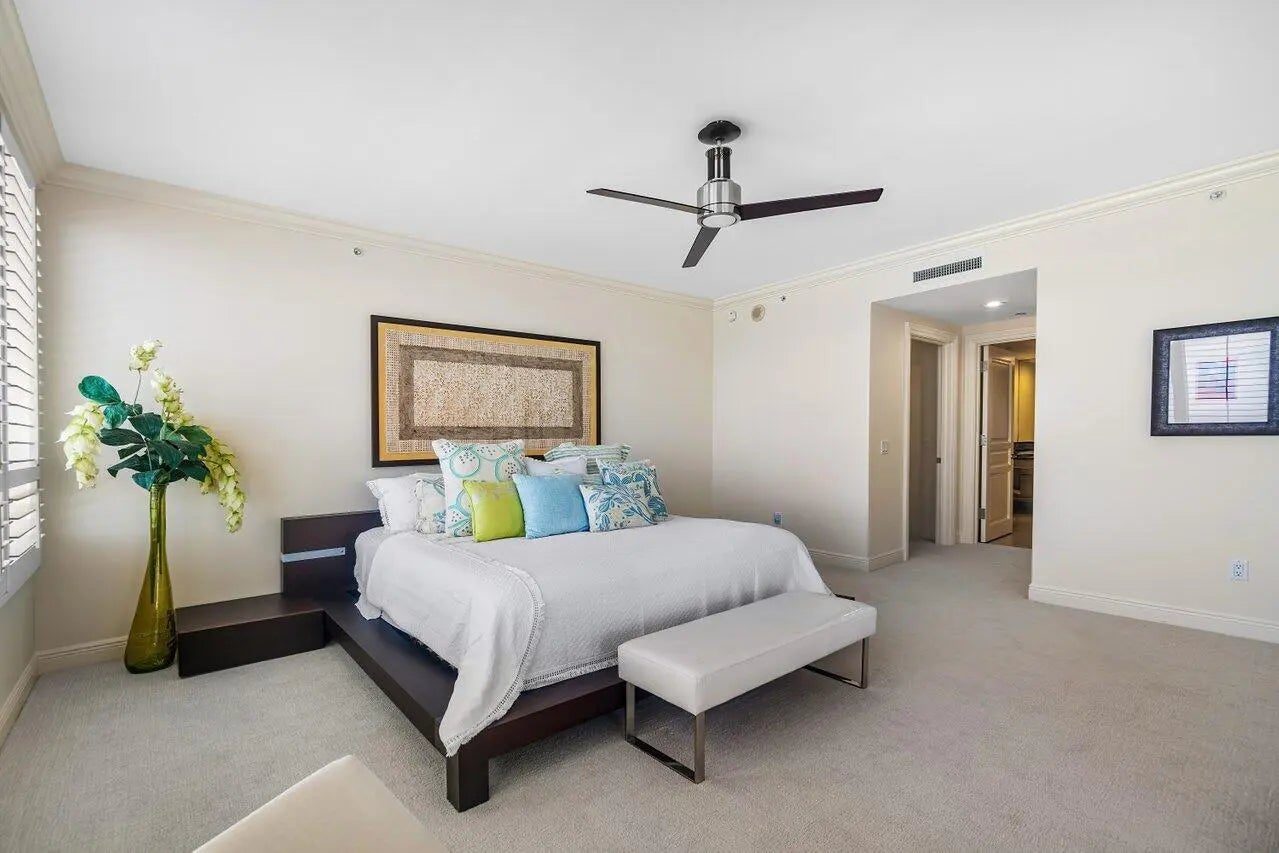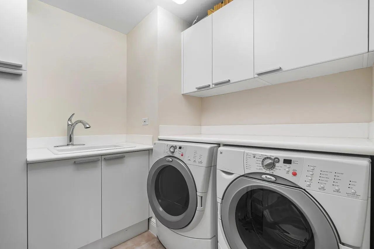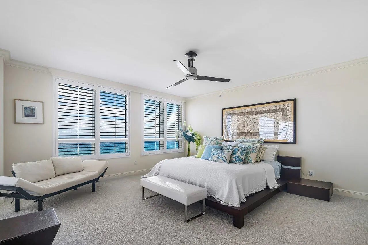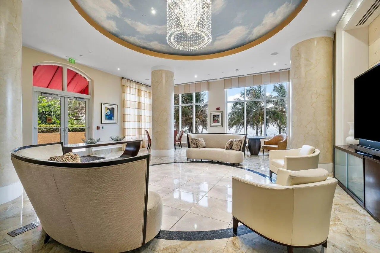 The Private Residences of the Resort on Singer Island. The condominium showcases a split floor plan, encompassing 3 bedrooms and 3.5 bathrooms, with each bedroom featuring an en-suite bathroom and walk-in closet. The kitchen is well-appointed with granite countertops, stainless steel appliances, and a wine cooler. Marble flooring extends throughout the property, which also includes a full-size washer and dryer. Residents enjoy access to the Palm Beach Marriott's comprehensive amenities, such as two pools, a whirlpool, multiple dining venues, a fitness center, Si Spa, a billiard room, social rooms, a movie theater, valet parking, a 24-hour business center, an elevator, a lobby, an on-site manager, a sauna, sidewalks, a spa-hot tub