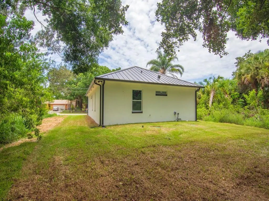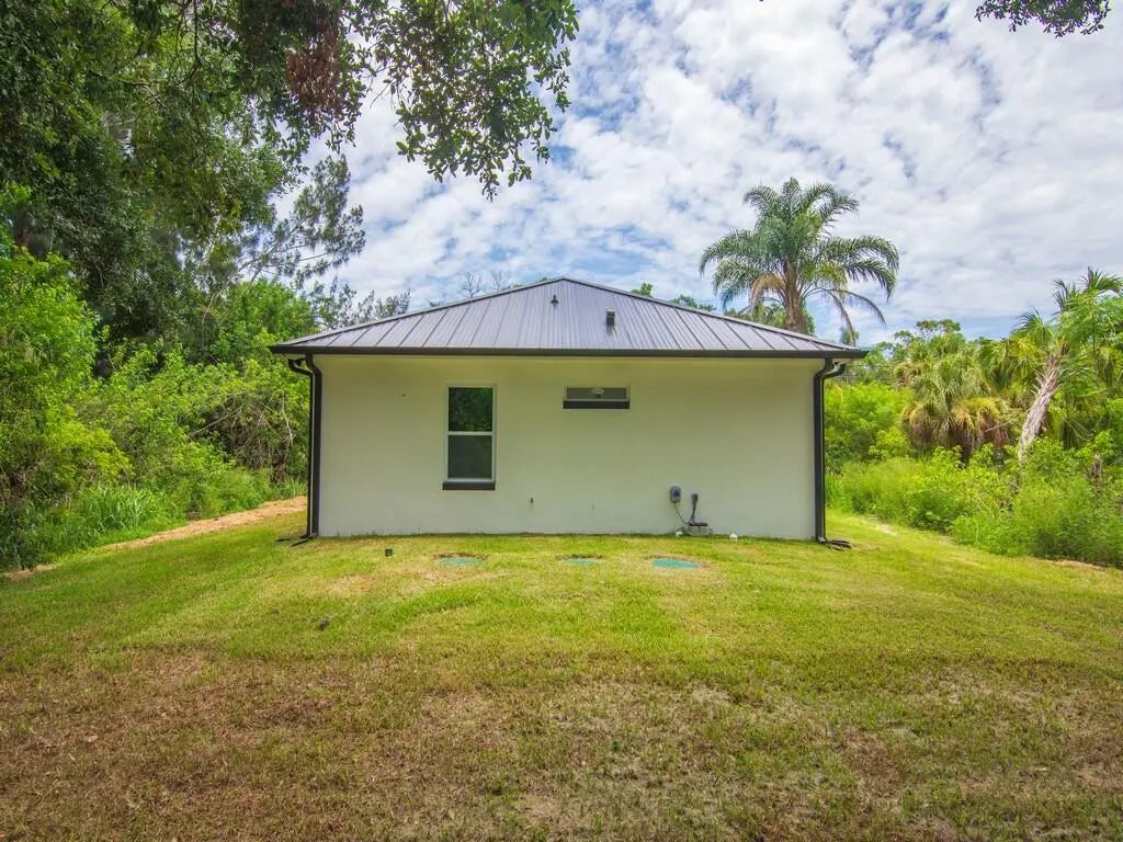Custom New Construction 2025! No budget spared at this Concrete Block home with standing seam metal roof wrapped with gutter system, hurricane impact windows, updated sewer, huge covered porch, rheem a.c, sprinkler system, hurricane rated garage with surrounding flood lights plus more! Step inside to custom quality paint, quartz counters, vaulted ceilings, tile & luxury laminate floors, vent hood, extra electrical outlets throughout, custom cabinets and new light fixtures. This home is located just minutes from the Wabasso causeway and bridge leading to fishing destinations and beaches.