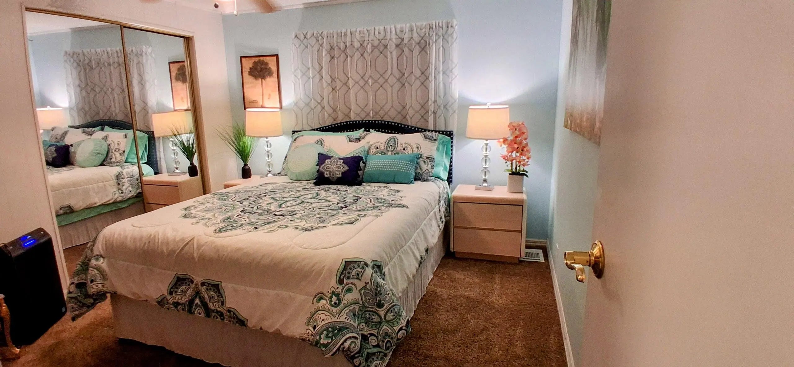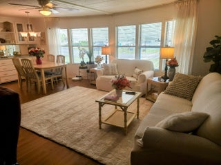 Private furnished home, Free Electric, water, TV, internet & trash! Also includes a sparkling pool, hot tub, sauna, tennis & pickleball courts, fitness center with showers & changing area, putting greens and billiards. Bedroom has a queen size bed with fresh bedding, Bathroom has towels and a tub/shower. Living room/dining area has beautiful bay windows, creating a warm and welcoming atmosphere throughout. It has an additional queen size sofa sleeper with bedding. Has a 70'' smart TV with a desk. Outside, has a private backyard and a sitting area. Peaceful neighborhood. Close to shopping, dining, and recreational places. Don't miss this opportunity, 40 year and up community, No pets and No smoking.