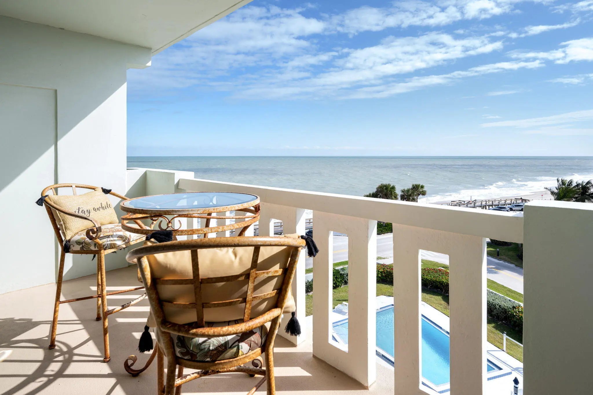 Wake up to endless ocean views in this furnished 5th-floor 2 bed, 2 bath condo in Vero Beach, FL. This beautifully designed unit offers a bright open floor plan with kitchen island, breakfast bar, crown molding, and new 2024 A/C & hot water heater. Includes under-building garage parking and is located steps from Ocean Driveâ™s boutiques, dining, and seaside village. Perfect for year-round or seasonal living, this luxury condo with ocean views combines comfort, style, and the best of Vero Beach coastal living.