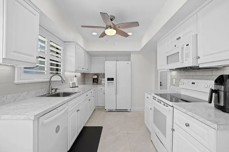 Move Right In! Beautifully Updated 2-Bedroom Condo with Golf Course Views Step into this impeccably maintained second-floor, split-bedroom condo offering stunning golf course views and breathtaking sunsets. Features a modern kitchen, tile flooring throughout. This home offers abundant storage and convenience. Enjoy peace of mind with accordion hurricane shutters, a 2017 A/C, and roof maintenance covered by the HOA replaced in 2023, outside of condos were repainted in 2024 and parking repave in 2025. Nestled in a vibrant 55+ community, this low-maintenance gem is ideally located near I-95, the Turnpike, top shopping, dining, and golf. Whether you're looking for a serene retreat or a social lifestyle, this condo offers the perfect blend of tranquility and convenience. Don't miss your chance to enjoy easy living in a welcoming, friendly communityschedule your showing today!