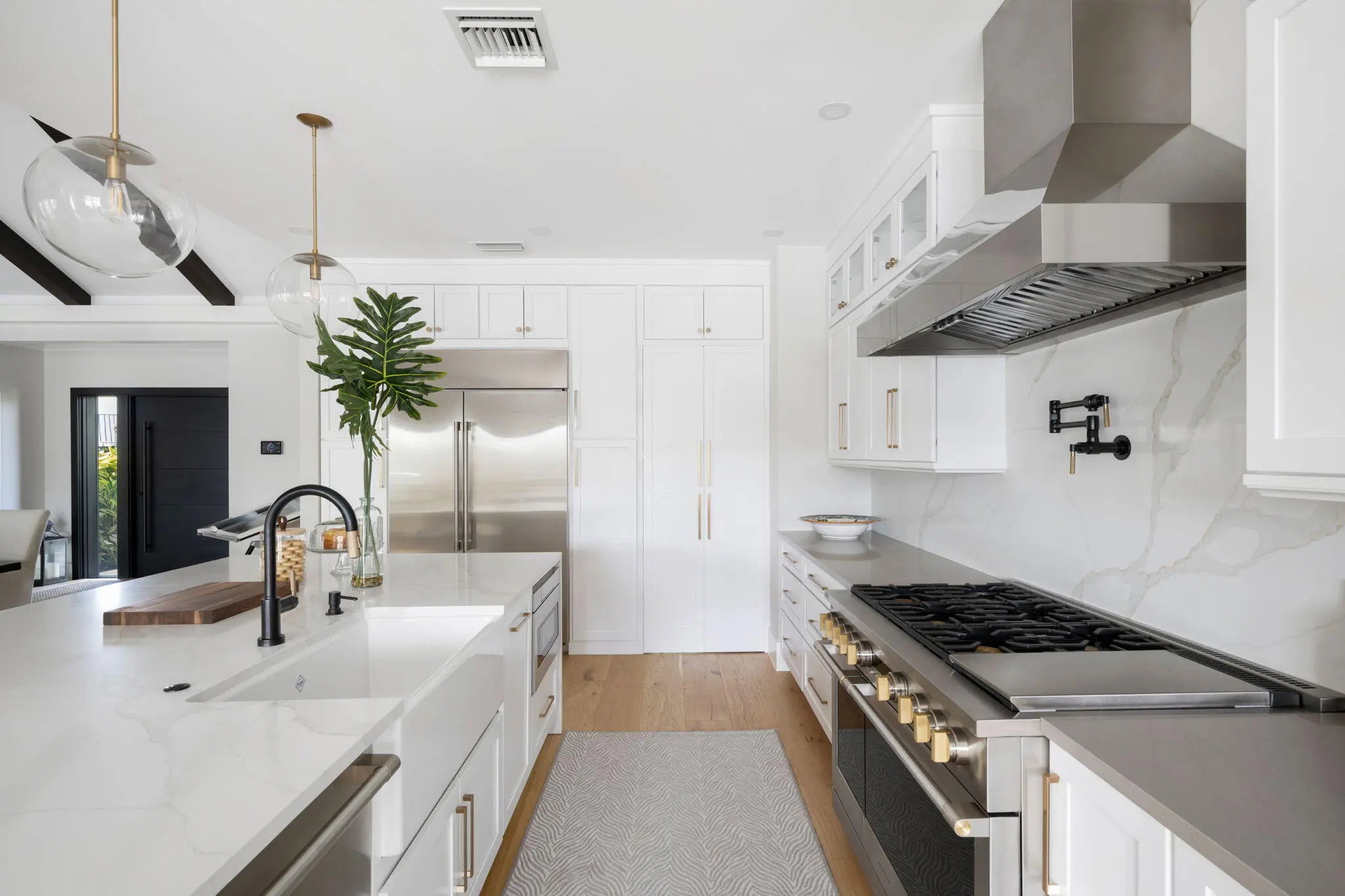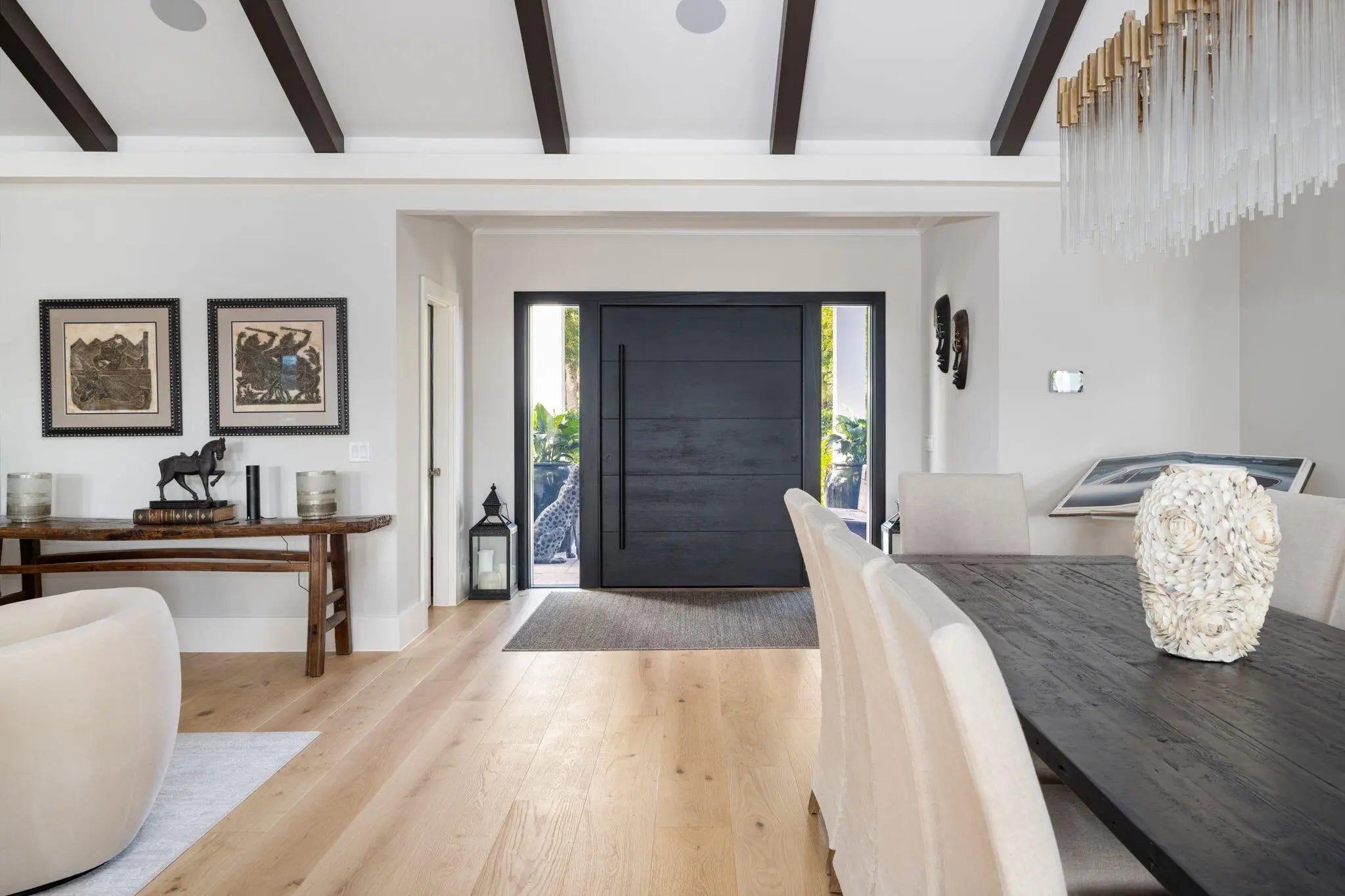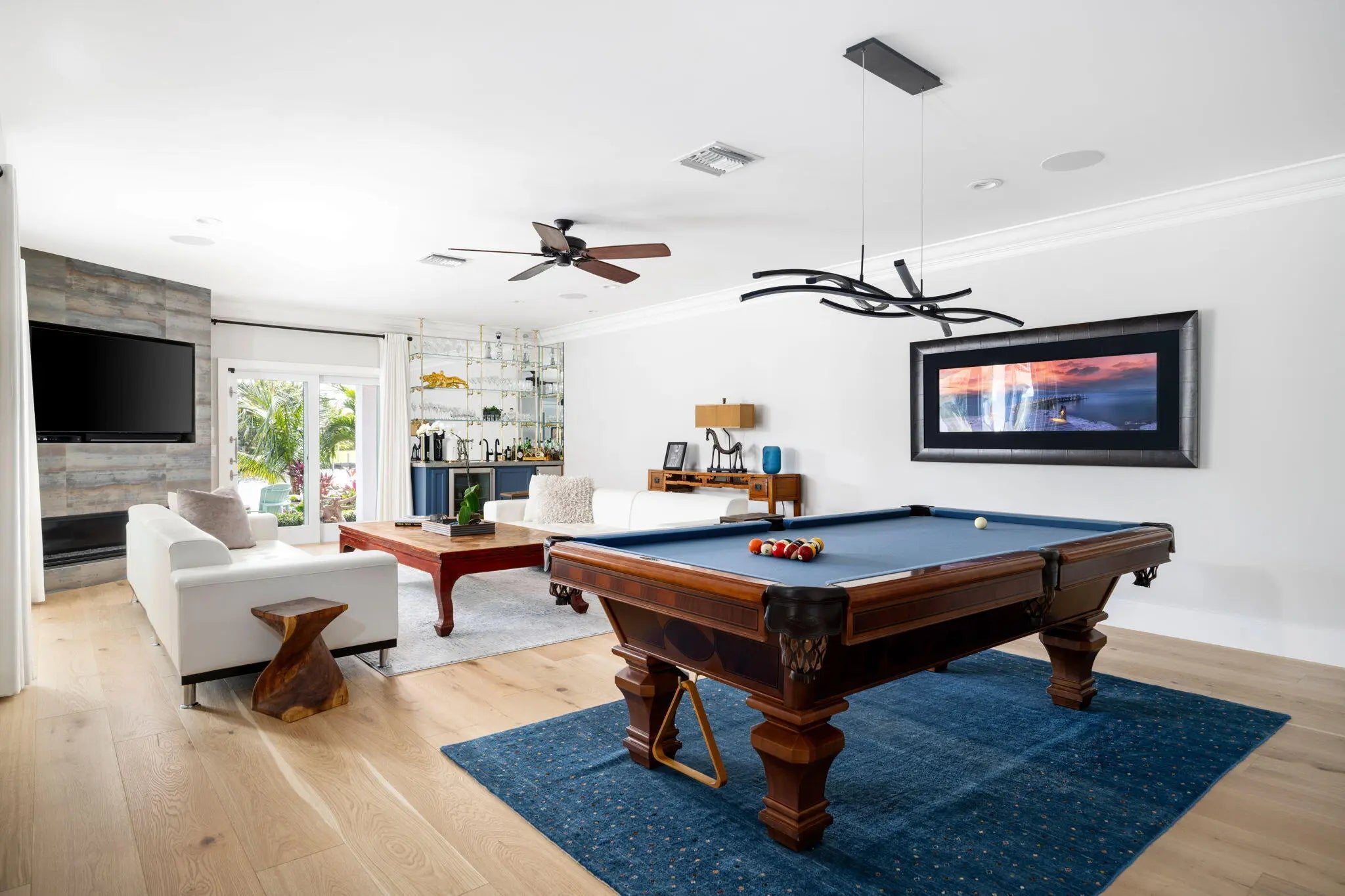 This IS a boater's dream! Over 184 feet of PROTECTED DEEP-WATER frontage, a 98' Ipe wood dock, 24,000 LB lift, & quick access to the intracoastal! Recent renovations transformed this 5,500+ SF home into a modern, luxurious retreat that seamlessly blends indoor & outdoor living. Privacy is enhanced by lush landscaping & authentic Chickee Tiki huts, creating multiple areas for entertaining or enjoying the Florida lifestyle. Spacious updated floor plan with a gourmet kitchen, spacious room sizes & private en-suite bedrooms. All impact glass sliders & windows! Nothing has been missed here!