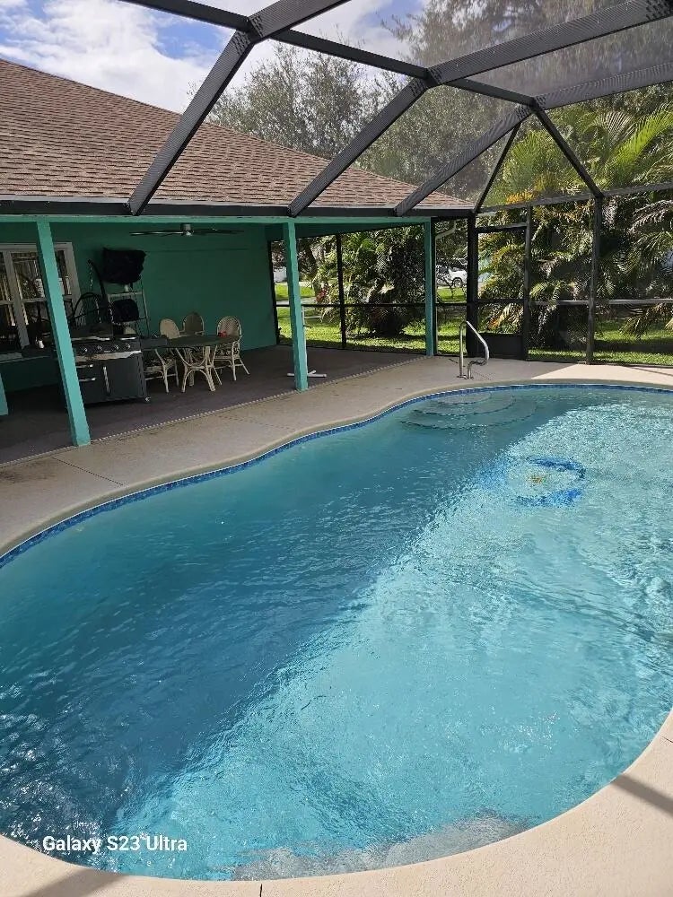 Wow - Stop! This is it- home has it all! This gorgeous pool home with screened lanai is ready for its new owner. The lengthy list of amenities includes... AC in garage, dbl lot, 2 storage sheds, SOLAR PANELS that generate enough elect. for the entire home, Fresh paint, new AC, New shower in 2nd ba, and a water condi. sys., just to name a few. The owners suite is complete with en suite bath that includes double sink in granite topped vanity, jacuzzi tub, separate shower and WIC. There are 2 other nice sized bedrooms as well. The kitchen is the center of the home and includes gorgeous cabinetry, stainless steel appliances and tiled backsplash. There is a formal living as well as den and a formal dining room, perfect for upcoming holiday gatherings. NO HOA! Roof is 2017.
