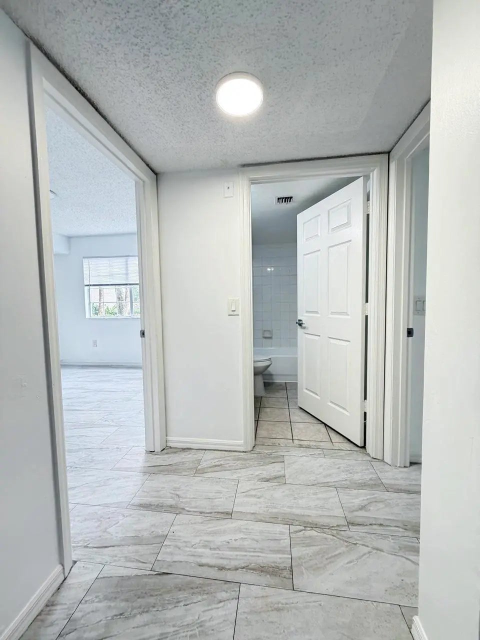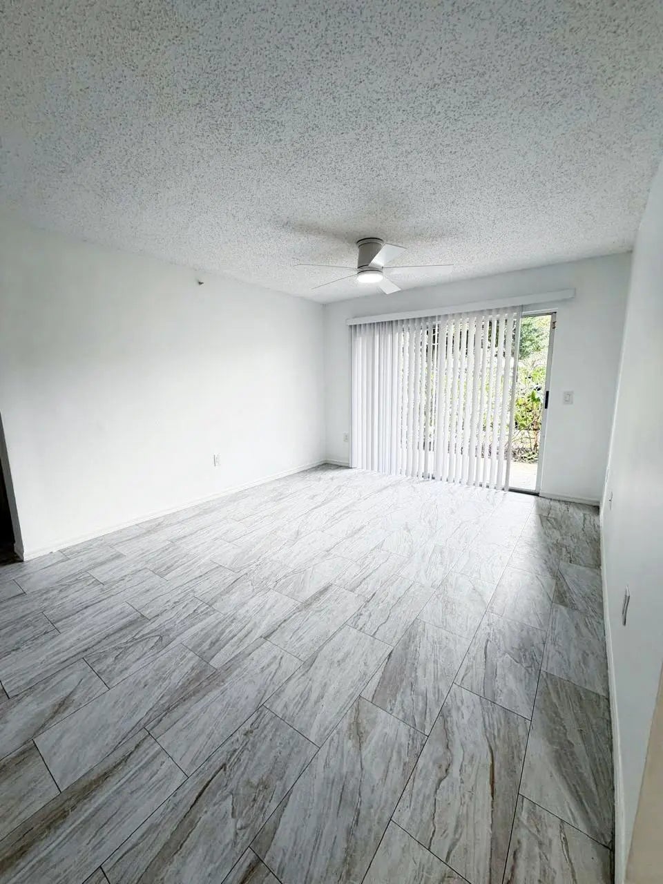 Spacious first-floor 3BR residence freshly painted and move-in ready. Bathrooms feature new vanities, toilets, lighting, and refreshed tubs. Kitchen offers clean updated finishes with newer appliances, including a brand-new microwave. In-unit washer and dryer. A/C replaced in 2021, new roof, and no current assessments. Located in a well-maintained all-ages community with lake, pool, fitness center, tennis courts, playground, and ample guest parking. Competitively priced below recent renovated sales. Easy to show.