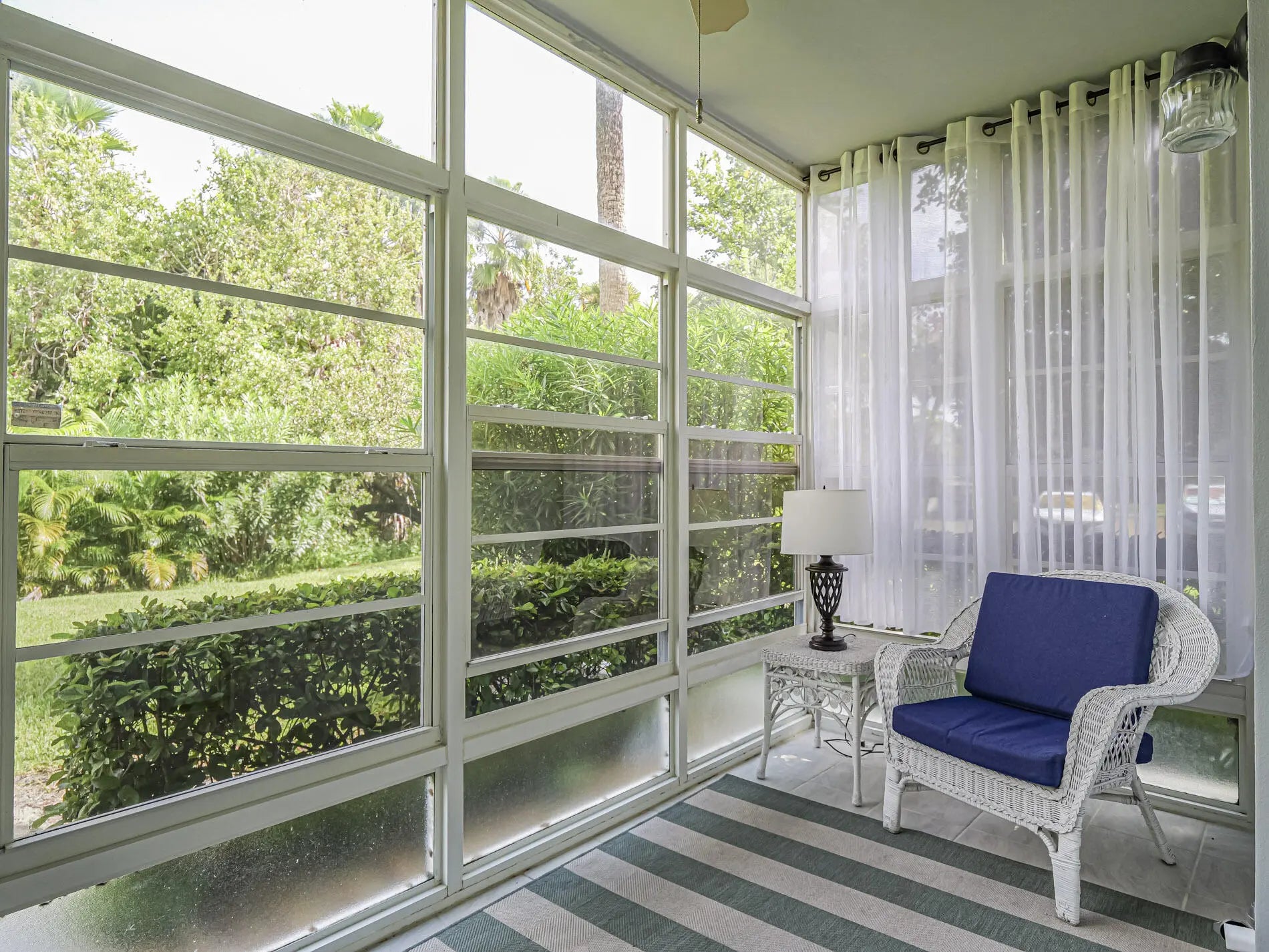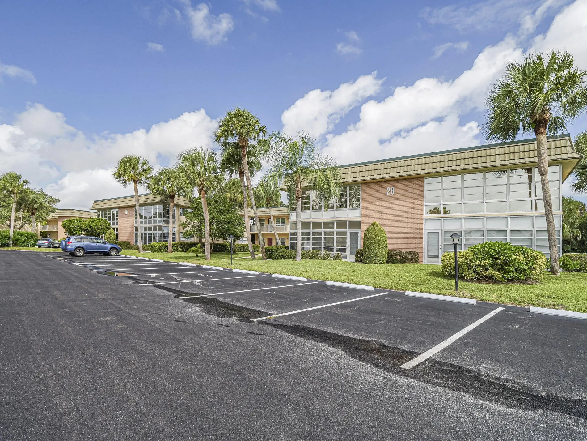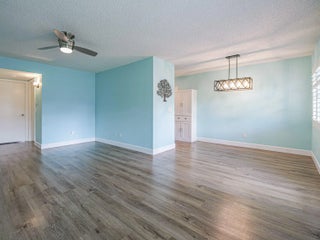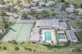 Spacious first floor condominium in vibrant 55+ community- completely renovated with newer laminate LVP floors, redone baseboards, freshly painted interior, redone kitchen with upgraded wood cabinets, newer appliances and pantry closet, newer tiled walk in shower in primary bath, impact windows, newer light fixtures, newer a/c and hot water heater. Cannot rent first year, no pick up trucks. Dues include water, sewer, basic cable, garbage and heated pool, tennis, hottub and on site mgmt. Great clubhouse with many activities. Golf Community and golf is separate. Located just 2 miles to beaches. Great value! Some photos virtually staged.