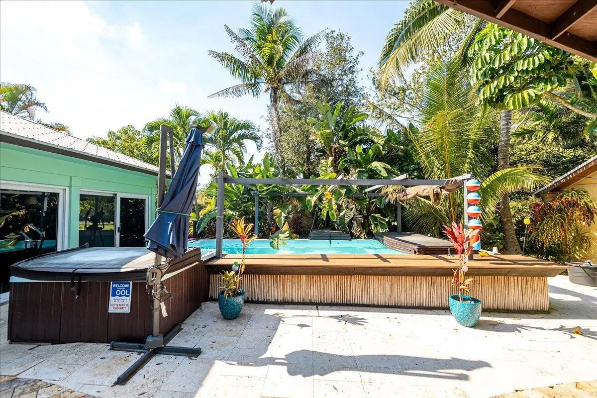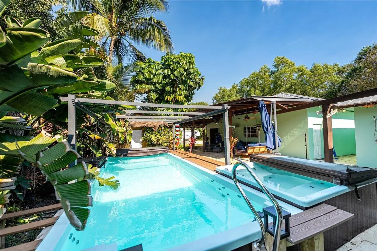 Rare 5 Bedroom Split Floor Plan in Jupiter Farms 1.25 Acre corner with oversized 30x26 detached garage, 39x48--4 Bay Shop Building Perfect for business owners or just needing warehouse space without renting commercial buildings Mechanics or car collectors dream Amazing amount of space if needed Great Floor Plan with great functionality & flow Gather w/friends & family-plenty of space to spare One Bedroom can be an In-law suite/office or private room that has it's own entry and full bath. Pool is a fully heated Swim Spa-in an amazing outside oasis, Bring your toys—room for boat/RV, trailers and more! Enjoy sunrise coffee on the covered patio, watch the stars at night, and live the Jupiter Farms lifestyle with no HOA. Minutes to I-95/Turnpike, Riverbend Park and Jupiter beache