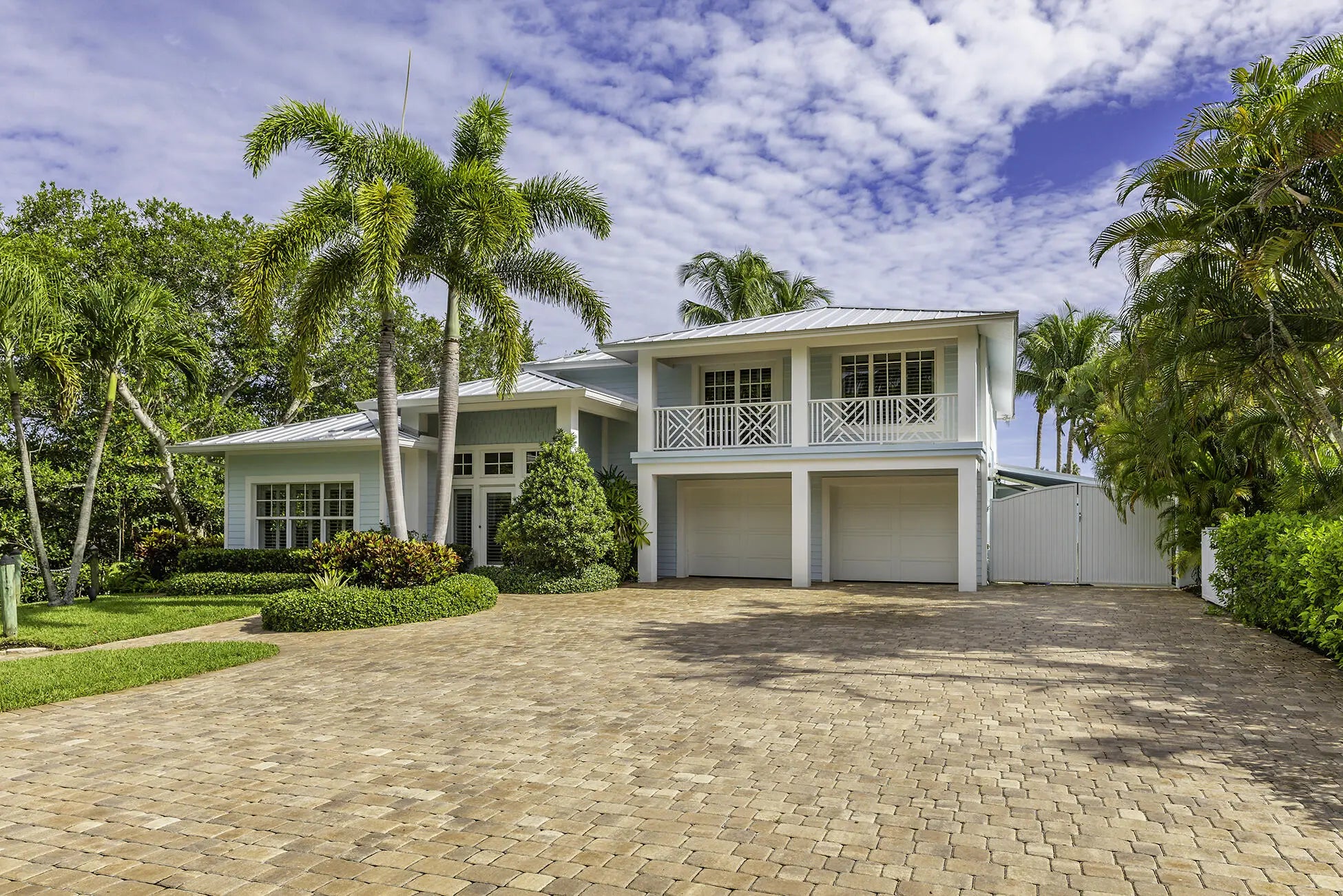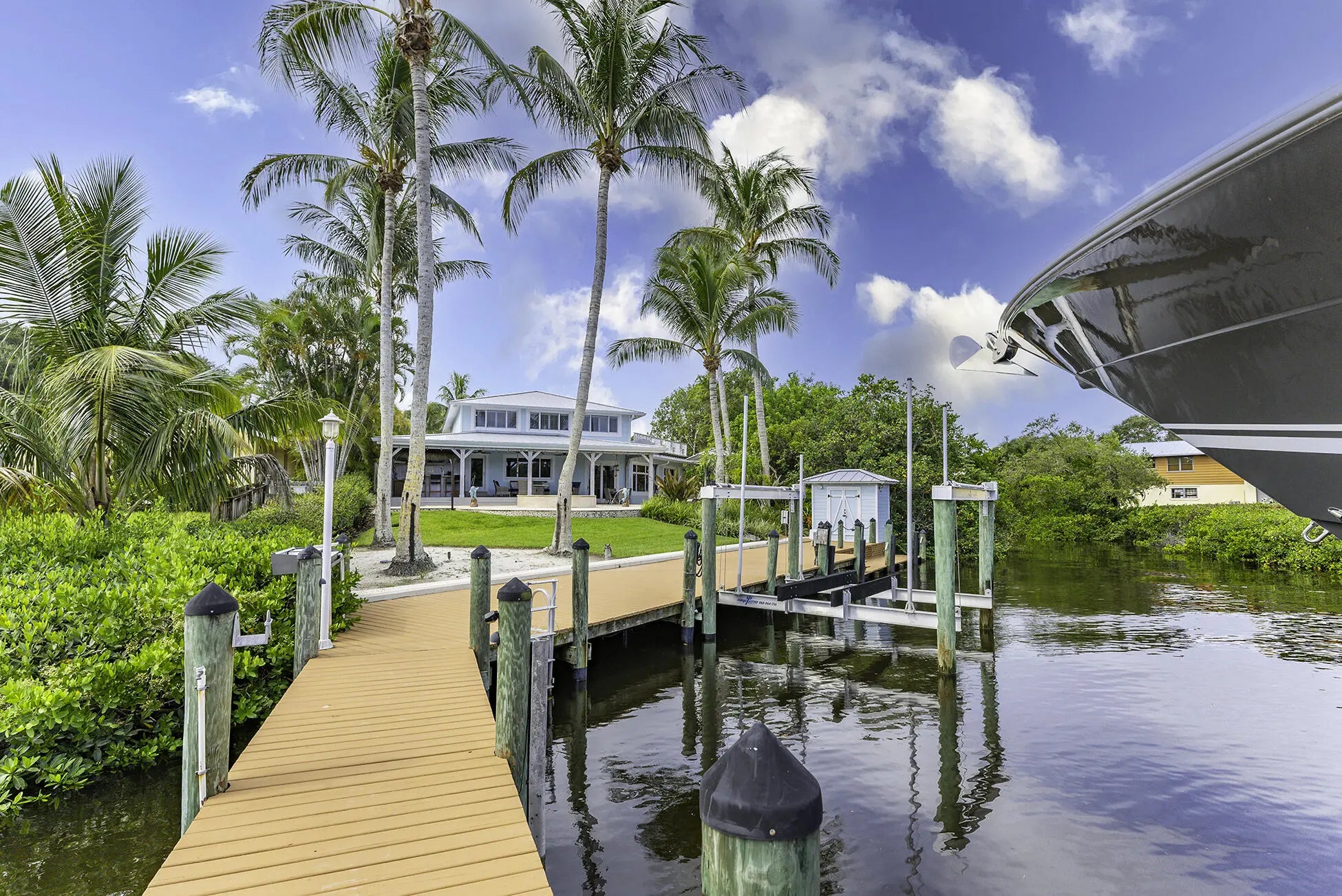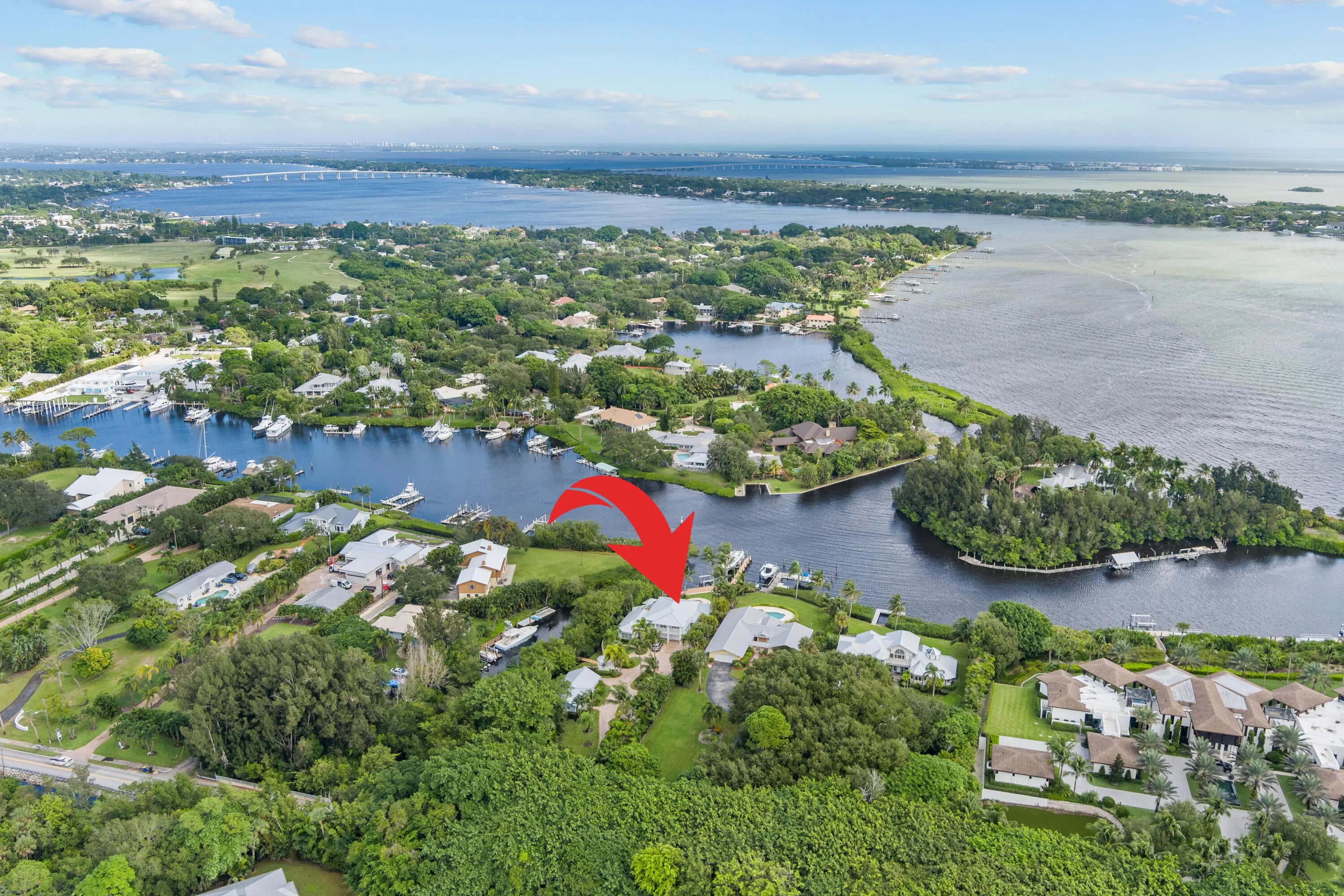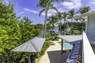 The banyan tunnel leads you to a rare trophy WATERFRONT estate, move-in ready and fully furnished. At the end of Stuart's most photographed road, your gated drive opens to nearly an acre of PRIVACY and 500' of protected shoreline with sweeping views toward the INLET and ''The Crossroads.'' Enjoy true deepwater dockage with multiple docks, two lifts, room for an 80' yacht, and quick ocean access. Reimagined in 2023/2024 with a new standing-seam metal roof, full impact glass, whole-house generator, and new garage doors. The home blends timeless Key West architecture with modern coastal design. Perfect for true boaters and entertainers, with media room, balcony suite, heated saltwater pool, tiki bar, lush landscaping, guest house, no HOA, minutes from downtown Stuart, and not in a flood zone