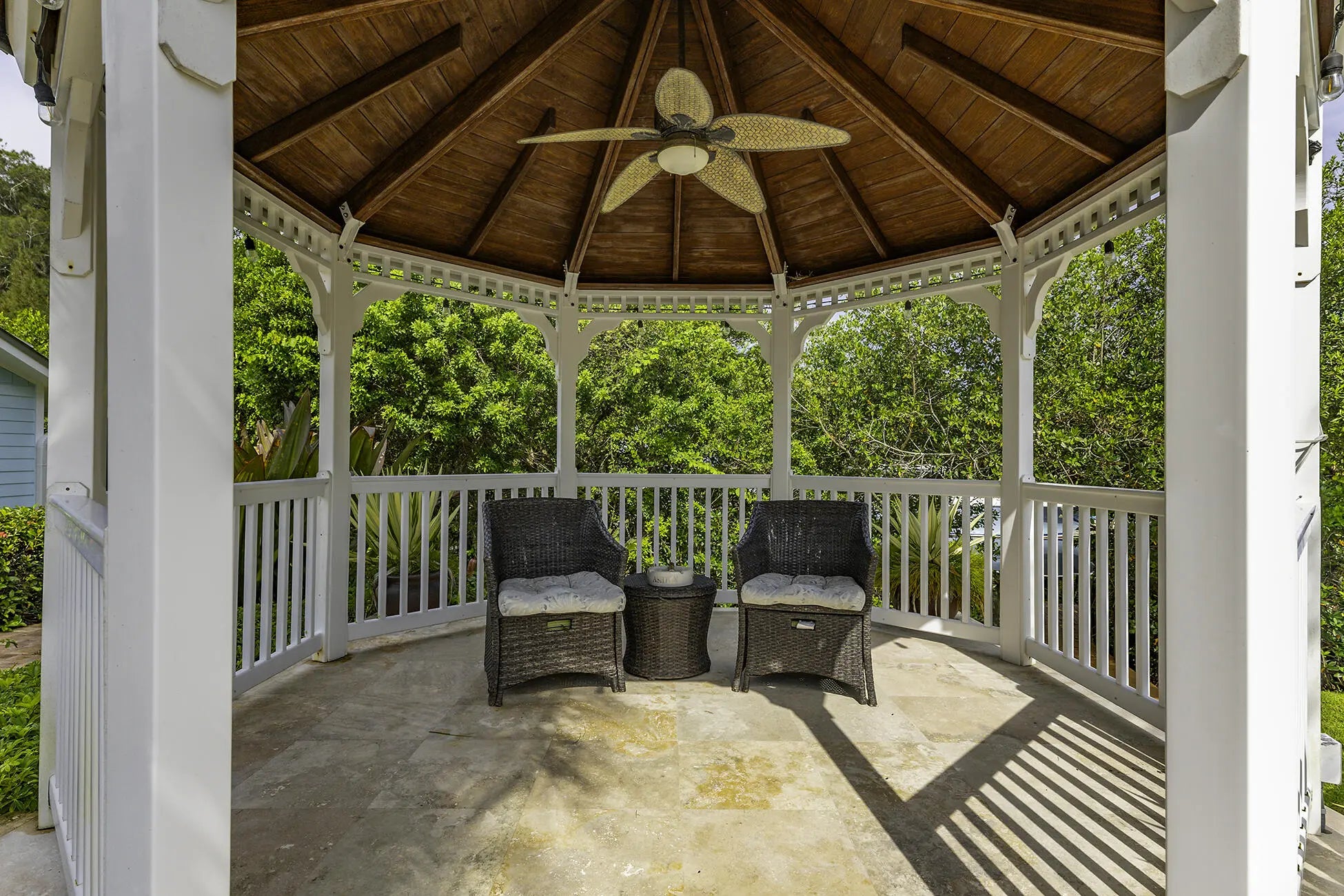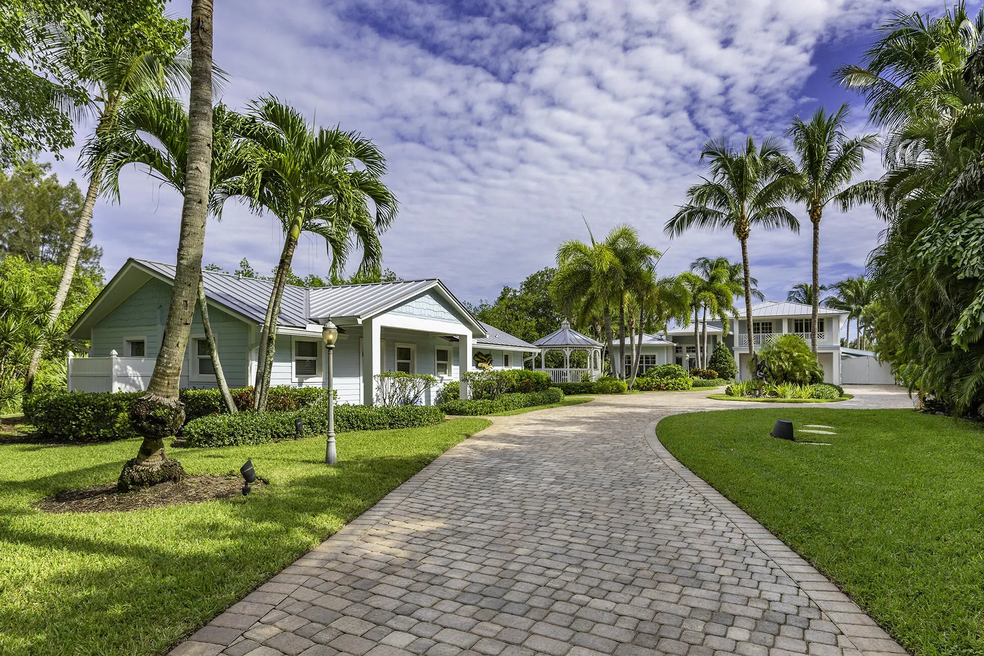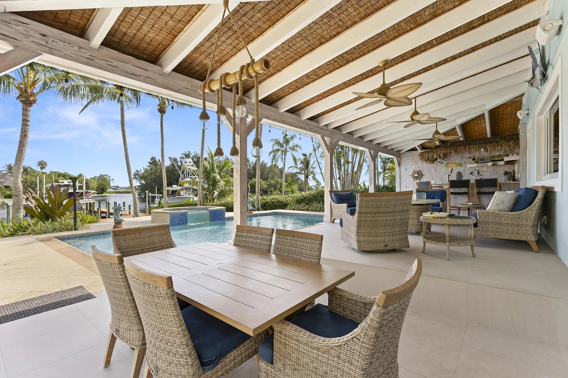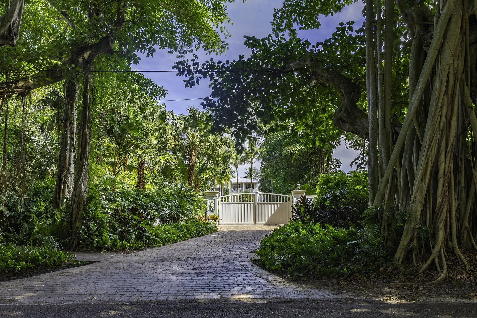 The banyan tunnel leads you to a rare trophy WATERFRONT estate, move-in ready and fully furnished. At the end of Stuart's most photographed road, your gated drive opens to nearly an acre of PRIVACY and 500' of protected shoreline with sweeping views toward the INLET and ''The Crossroads.'' Enjoy true deepwater dockage with multiple docks, two lifts, room for an 80' yacht, and quick ocean access. Reimagined in 2023/2024 with a new standing-seam metal roof, full impact glass, whole-house generator, and new garage doors. The home blends timeless Key West architecture with modern coastal design. Perfect for true boaters and entertainers, with media room, balcony suite, heated saltwater pool, tiki bar, lush landscaping, guest house, no HOA, minutes from downtown Stuart, and not in a flood zone