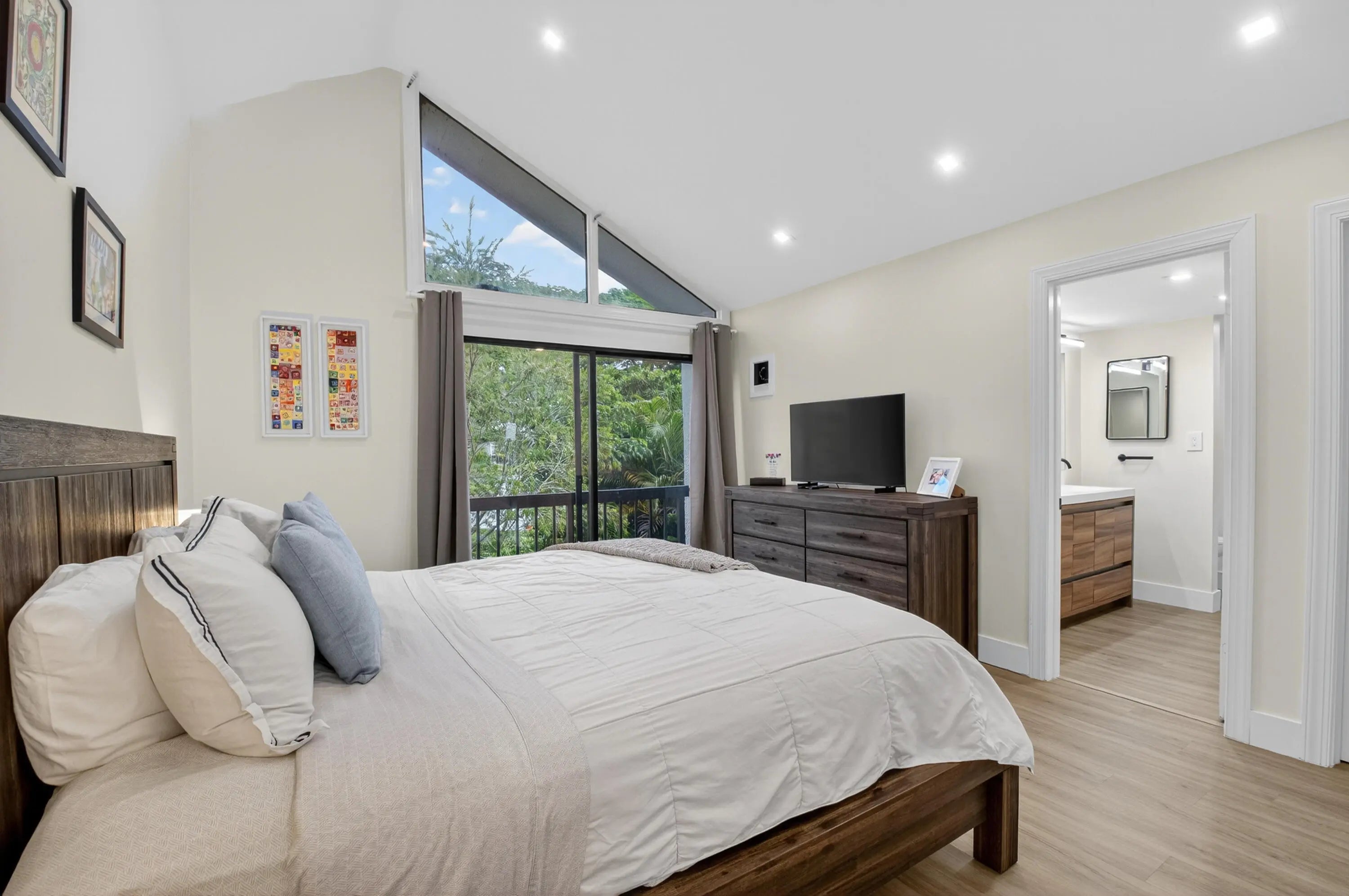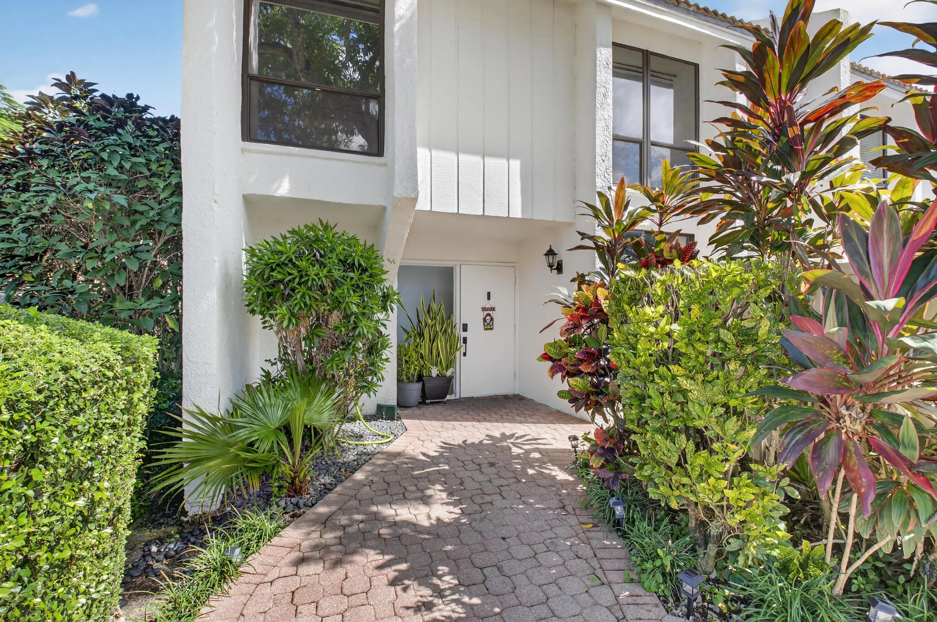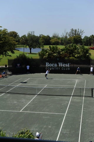 Bridgewood 3 bedroom, 2.5 bath town house. Corner lot with lushly landscaped exterior patio area with partial lake view. Expanded interior area with porch glassed in and opened to the living area. Renovated interior with engineered wood floors throughout. Updated kitchen with granite counters, stainless appliances and kitchen drawers with lights. Oversized washer & dryer. LED Lights in all the rooms. All the bathrooms have been updated with new vanities, toilets and flooring. Tank less water heater. Water filter. No popcorn. Fitted Closets. Private barbecue and sitting area off of the kitchen. Comes with a covered parking space. A/C replaced in 2021. New Electrical panel. Club required at $150,000. + dues and a $10,000 Capital Cont. to the Boca West Master Assoc.