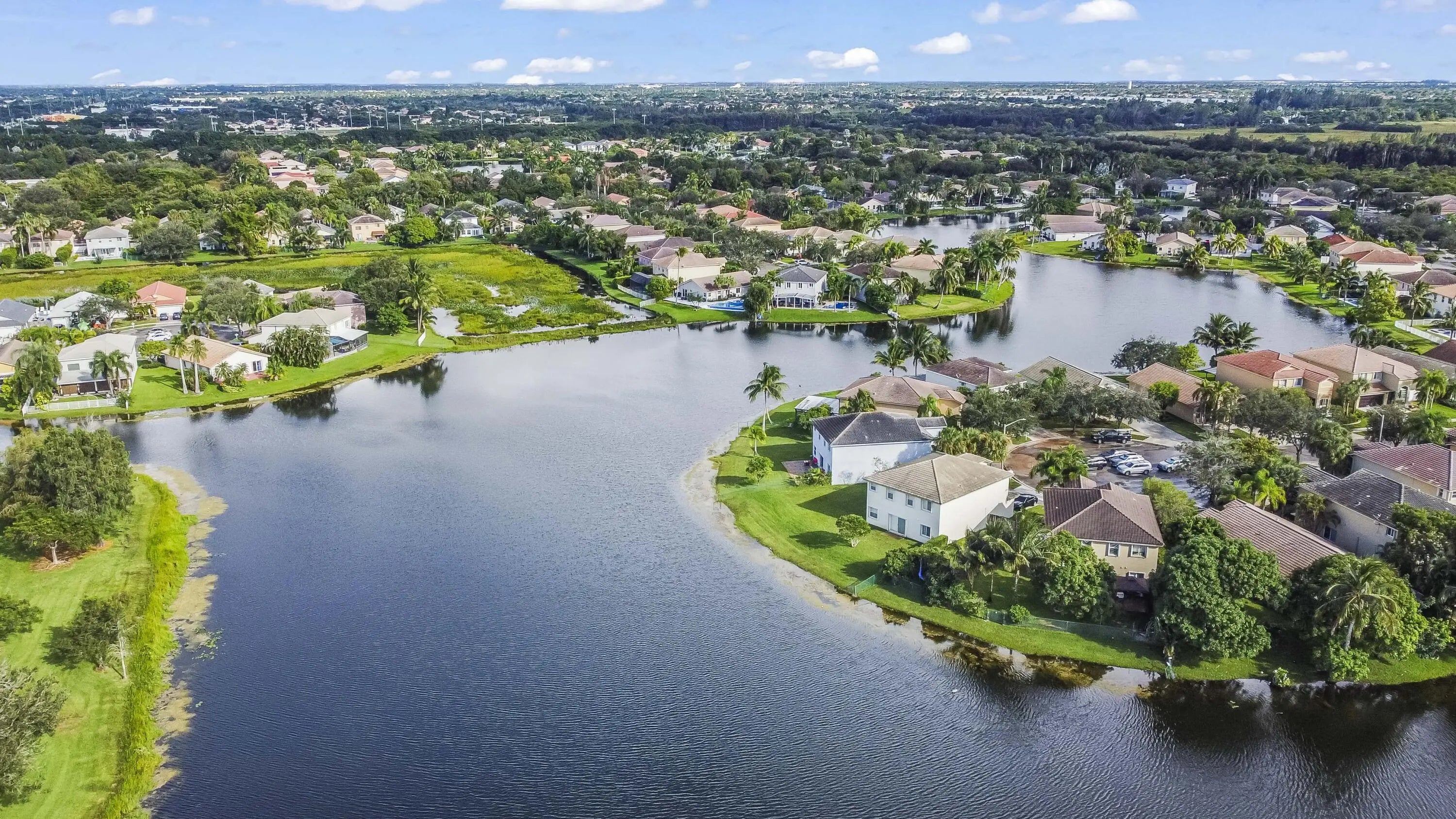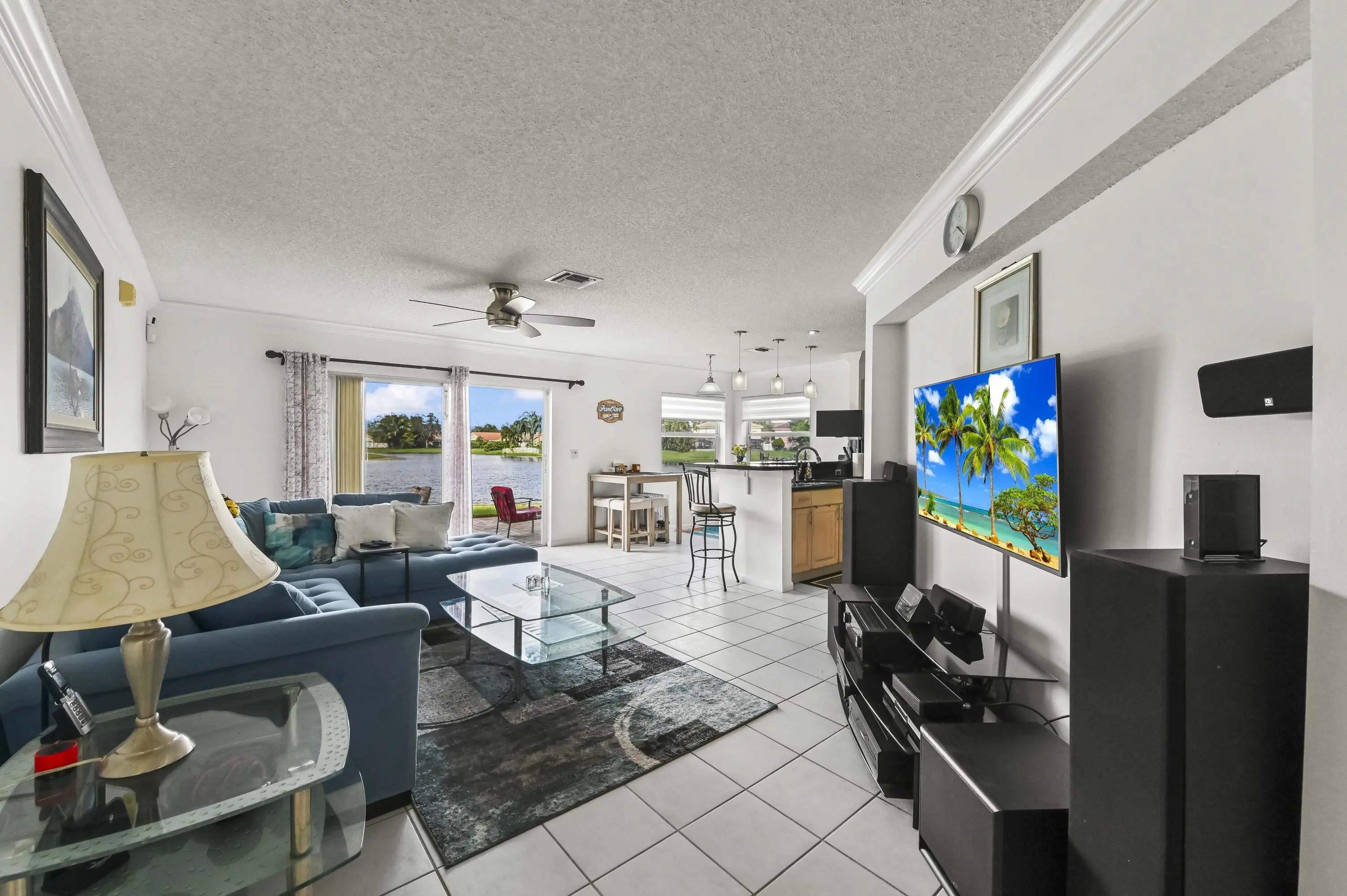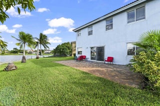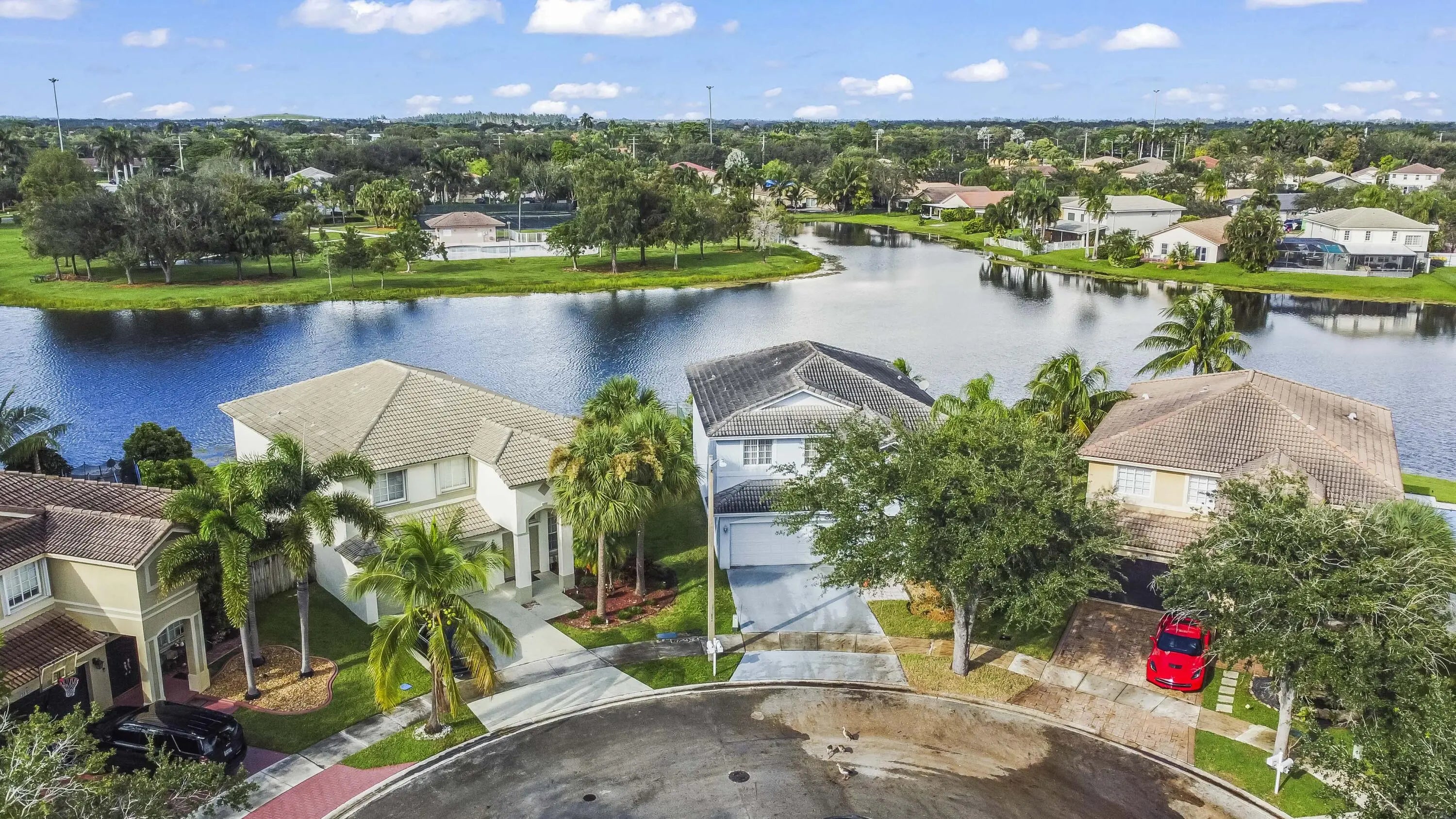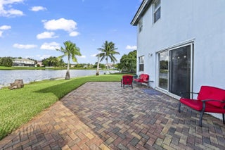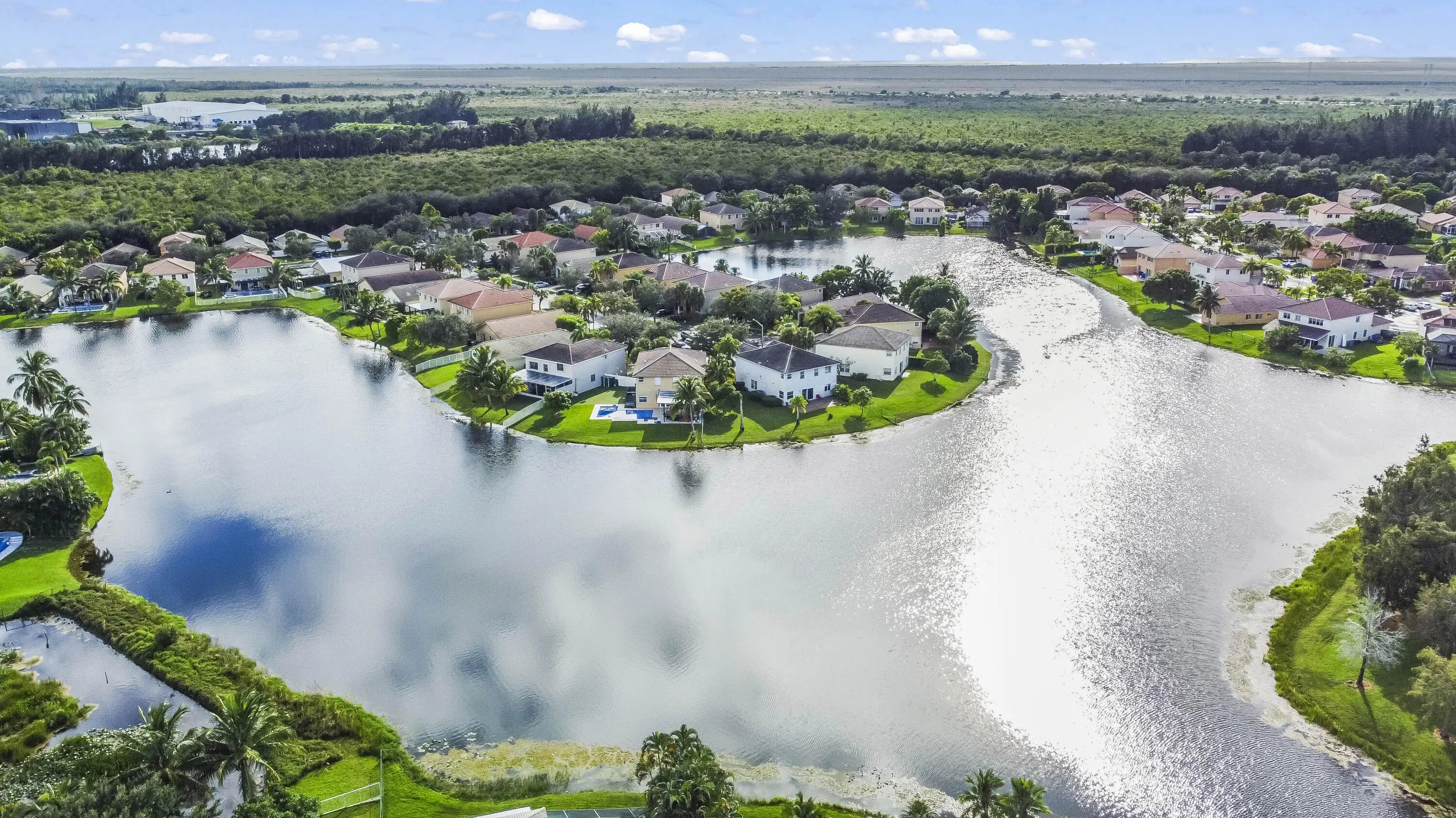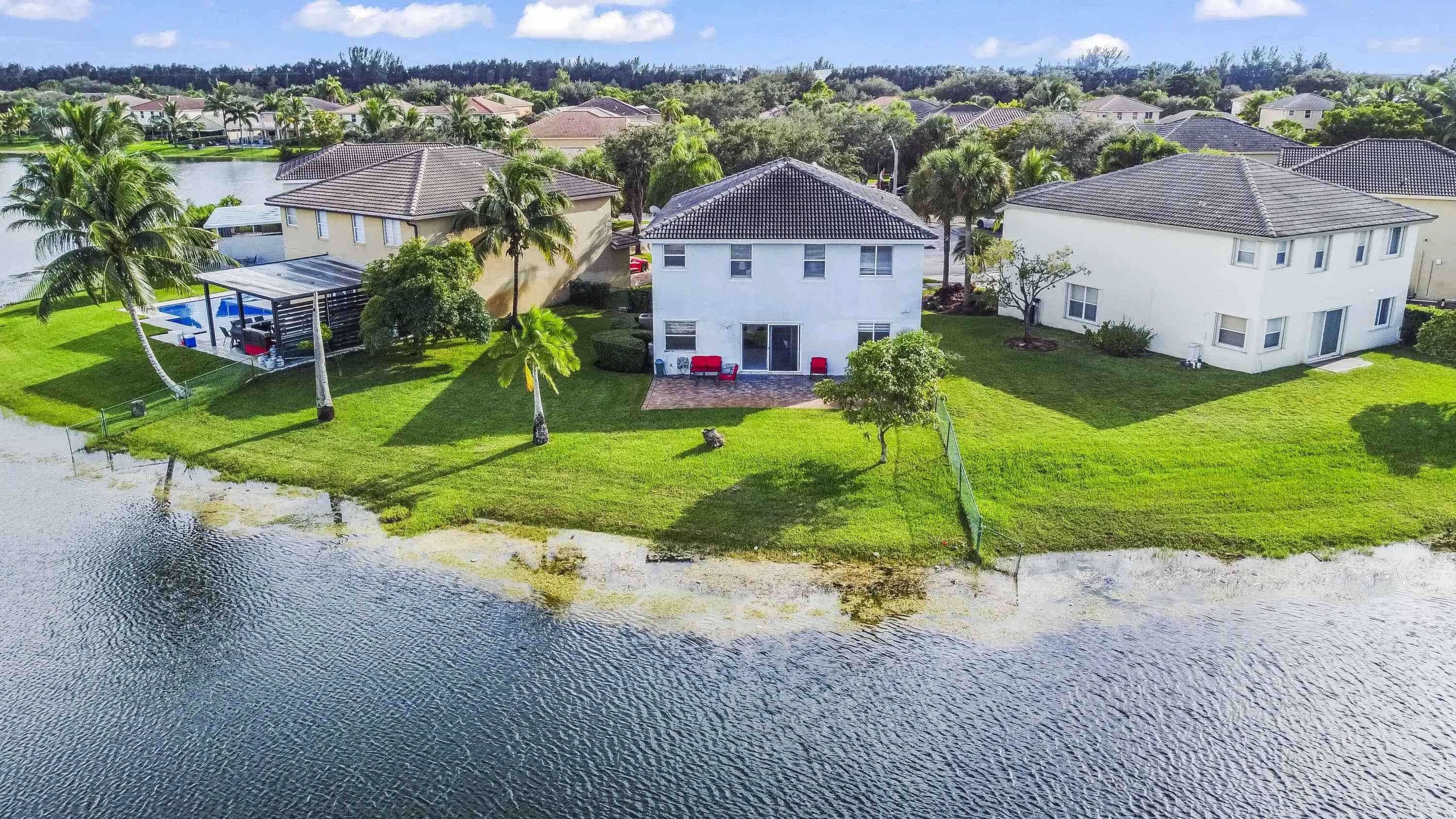 Welcome to an exclusive waterfront property, perfectly situated on a unique peninsula lot where your home is virtually surrounded by water. This stunning two-story residence boasts one of the most premier settings in the community, providing spectacular, expansive lake views from nearly every window. This is a truly rare opportunity to own a piece of waterfront paradise where tranquility and privacy are paramount. The exterior space is a dream for outdoor living, offering a massive spacious lawn that rolls right down to the water's edge on multiple sides. A beautiful, multi-toned paver patio extends directly from the home's living area, creating an ideal space for sunrises, sunsets, and entertaining guests while taking in the serene view. As part of a meticulously maintained, lake-filled community, you benefit from a consistent aesthetic and peaceful environment, making it a perfect sanctuary for enjoying the Florida lifestyle. The interior of this two-story home awaits your vision, offering a naturally bright and open canvas perfectly suited for a contemporary design with a main level bedroom and bathroom. With large windows on both the first and second floors, natural light and water views are guaranteed throughout. This property represents not just a house, but a premier point-lot lifestylecombining a dramatic waterfront setting, immense privacy, and a functional, spacious shell ready to be customized into your ultimate dream home.