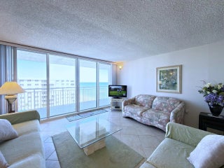 Step into your dream ocean retreat. This spacious Penthouse 2-bedroom, 2-bath, 1,500sqft home welcomes you with beautiful North-East Ocean Views. Imagine starting your mornings with a cup of coffee on your expansive balcony, taking in the beautiful ocean scenery, and ending your day relaxing to the sounds of the ocean waves. From this Penthouse, you can also enjoy the views of the IntraCoastal waterway and watch beautiful fireworks that illuminate the night sky on holidays. Featuring impact-resistant windows throughout, the home ensures comfort and uninterrupted Ocean Views. The space is ready for your personal touch, providing the perfect opportunity to refresh, update, and make it uniquely yours. Whether you're seeking a full-time oceanfront residence or a seasonal getaway, this Penthouse delivers the ideal blend of location, beautiful ocean views, and is perfectly positioned for Oceanfront Living. Located in a premier resort-style condominium, the Barclay offers an array of amenities such as: direct beach access, BBQ area, outdoor kitchen, heated pool, tennis/pickaball courts, gym, saunas, business center, party room, game room, lounge, movie room, bike storage, and much more, ensures a lifestyle of indulgence. Covered parking, drive-through car wash, 24/7 concierge, water, pest control, internet, and cable are all conveniently included in the HOA. Additional highlights include covered parking and an extra storage bin. Don't miss this exceptional chance to own a piece of oceanfront paradise. Just steps from the beach, it offers a one-of-a-kind lifestyle by the ocean, ready for you to enjoy!