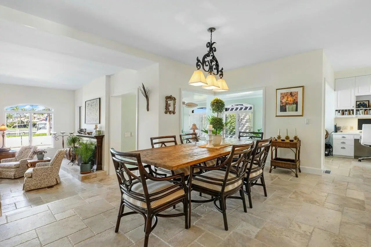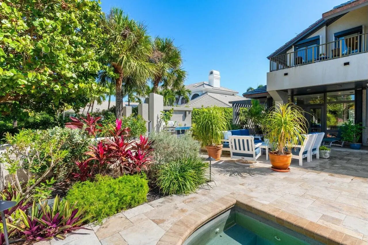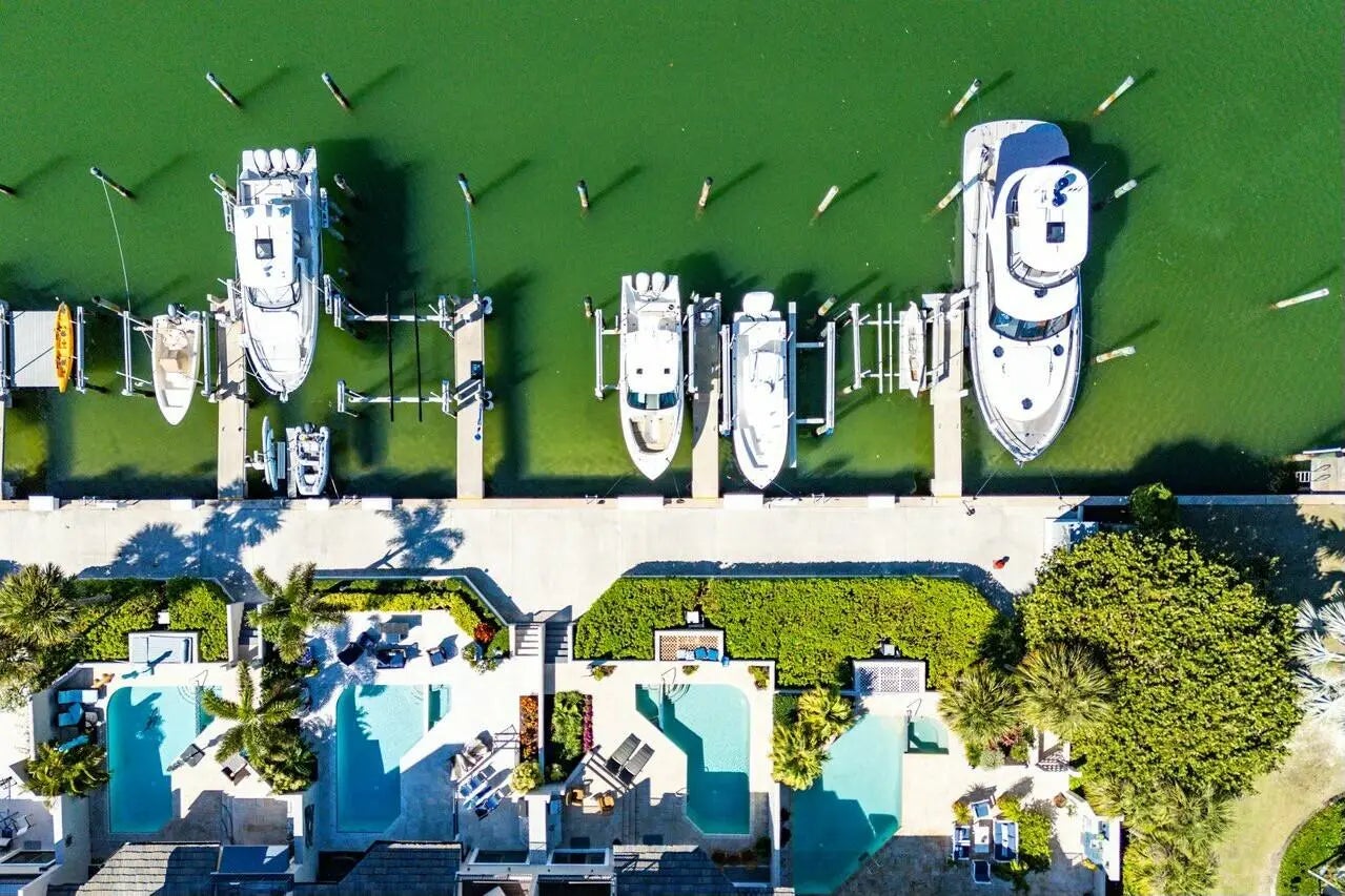 Elegant corner townhouse with sweeping waterfront views! This spacious 4-bedroom residence offers luxury waterfront living and worry-free maintenance. The custom kitchen, light-filled living room with fireplace, and wet bar create an inviting space for entertaining. The expansive travertine tile patio is complete with a heated pool, spa, wet bar, and built-in grill—perfect for al-fresco dining and sunset gatherings. Mature 10ft. tall hedges surrounding the L-shaped lanai provide privacy as well as a lush tropical garden feel. Directly behind the home, an oversized boat slip accommodates a large yacht. With the Bahamas only 55 nautical miles away, you can cast off in the morning and be in the islands-or Palm Beach to the south-in time for lunch! A 3-car garage provides ample storage. The townhouse is part of Marina Point, an exclusive enclave of townhomes and villas within Sailfish Point. Marina Point has its own property management company, which helps relieve seasonal and full-time owners of many maintenance-related headaches. Townhouse owners can negotiate collectively with contractors and insurance providers to help control expenses. The spacious light-filled structure, private patio and lanai, large boat slip and wide water views make this easy-to-maintain property a truly rare offering.