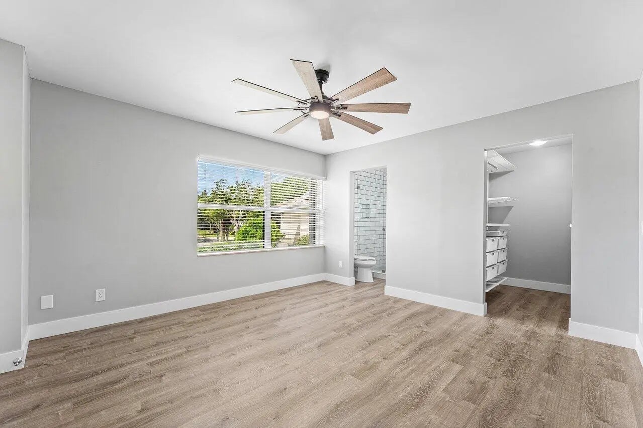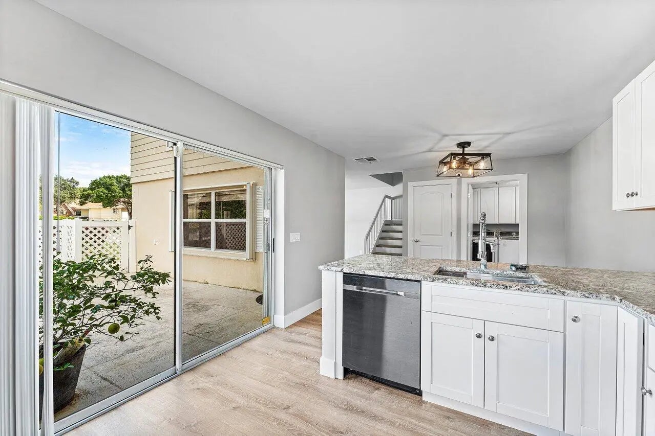A charming renovated 2-bedroom townhome nestled in the sought-after gated community of Wellesley at Lake Clarke Shores. Bright, airy, and move-in ready, this home impresses with modern finishes and a dual-master layout perfect for privacy and comfort. Step inside to a spacious living area with flat ceilings, new flooring, and an abundance of natural light. The updated kitchen features crisp white cabinetry, stainless steel appliances, a double-door oven, welcoming bar, and a white glass French door refrigerator that complements the clean, modern aesthetic. Upstairs, both bedrooms offer on-suite baths, walk-in closets with built-in storage, creating two true master suites. Additional highlights include accordion shutters, modern fixtures, and thoughtful design details throughout. Outside you have a large fenced in open patio ideal for relaxing and entertaining.Enjoy the peace of mind of living in a gated community with beautifully maintained grounds and a welcoming neighborhood feel.Experience modern comfort and timeless style in one of Lake Clarke Shores' most desirable communities. This home offers both convenience and charm all while being minutes from the shops, dining, and vibrant energy of downtown West Palm Beach. Whether you're seeking a serene retreat or a well-located spot close to it all, this is the perfect place to call home.