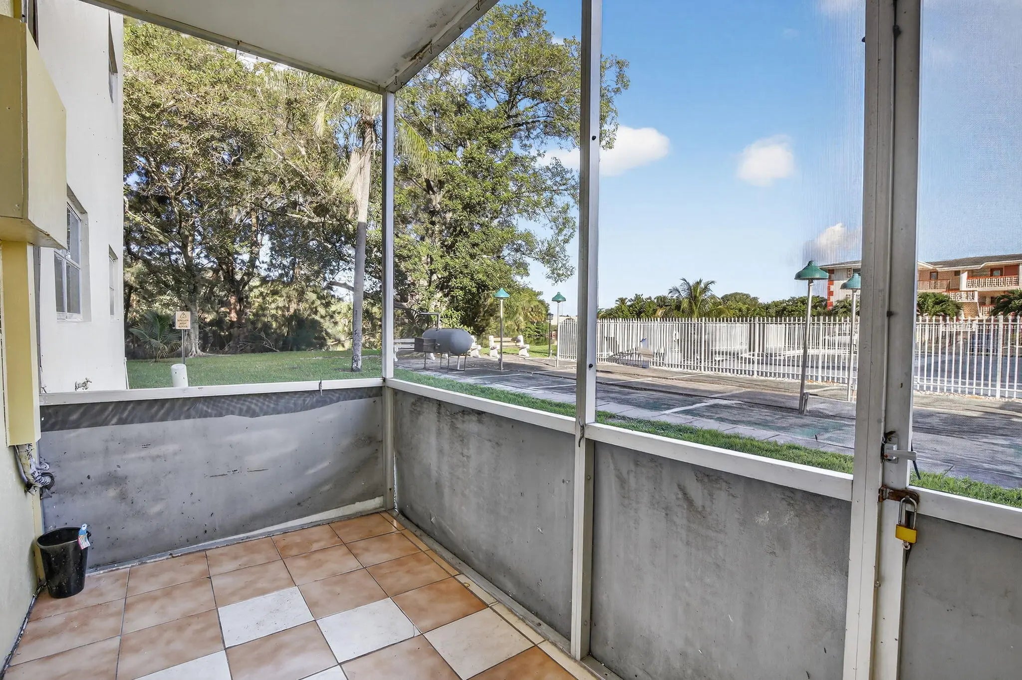 Welcome home to this beautifully updated first-floor 2-bedroom, 1-bath condo! Step inside to find a bright and inviting space featuring a newly renovated kitchen with modern finishes and new tile floors throughout. Freshly painted from top to bottom, this home is truly move-in ready. Enjoy a cozy dining area perfect for everyday meals or intimate gatherings, seamlessly flowing into a large family room ideal for relaxing or entertaining guests. The spacious primary bedroom offers a sizable walk-in closet, while two additional hallway closets provide plenty of extra storage. Walk right out and unwind on your private patio overlooking the sparkling pool and clubhouse. Meet your neighbors at the common laundry in the complex. Enjoy piece of mind with an AC unit replaced in 2020. Includes one assigned parking space right in front of the unit, with additional guest parking available. Located in an all ages community, the complex is privately nestled in a peaceful area. Conveniently located very close to both the Florida turnpike and I95. Close to shopping, schools, and entertainment.