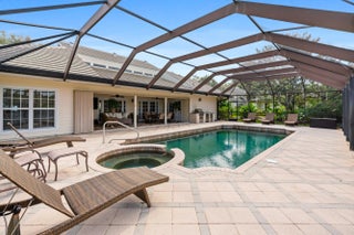 Welcome to the highly coveted community of Heritage Oaks. This sophisticated and spacious home is ideally situated on a generous 0.447 acre lot; offering beautiful long lake views. Boasting 5 bedrooms, 4.5 bathrooms, (5th bedroom is currently being used a den), oversized 20x10 loft, a 2-car garage, and 2,823 square feet of living space. Upon approaching the home, you are greeted with an oversized beautiful paver driveway, adjoined with mature oaks and a welcoming front porch. Your senses will be delighted when you feel the energy of this exquisite home. An abundance of natural light abounds. The bright interior boasts a well-designed floor plan with vaulted ceilings and plenty of natural light throughout. Beautiful hardwood flooring creates a warm and inviting environment. plantation window treatments, hurricane impact windows and a 2019 cement tile roof, with 2 AC units of 1 and 4 years old. The zen like and spacious master suite offers lovely views of the back yard and lake, two closets, one a walk-in closet, and a beautifully remodeled en suite bathroom with dual sinks, and a beautiful frameless glass shower. The gourmet kitchen is equipped with new stainless steel appliances, granite countertops, custom cabinetry and bar top seating. There is also an oversized 20x10 multi-purpose loft space. Step outside to your very own backyard oasis, complete with a screened-in pool and heated spa, perfect for relaxation or entertaining guests. The outdoor kitchen is perfect for hosting barbecues and summer parties with family and friends. Enjoy the Florida lifestyle at its finest while overlooking the serene lake and lush landscaping. This immaculate home offers the perfect blend of luxury and comfort, with unparalleled views and amenities that will make every day feel like a vacation. Don't miss this incredible opportunity to make this breathtaking property your forever home! Heritage Oaks is a private, highly desired, guard gated community nestled along the Loxahatchee River. The community is known for its mature oak tree-lined streets, and beautiful lakes, and is comprised of nearly 200 single-family homes. The community offers a world class tennis facility and club, boat and RV storage, and playground. Close to pristine area beaches, fine dining, shopping, world-class golfing and so much more.