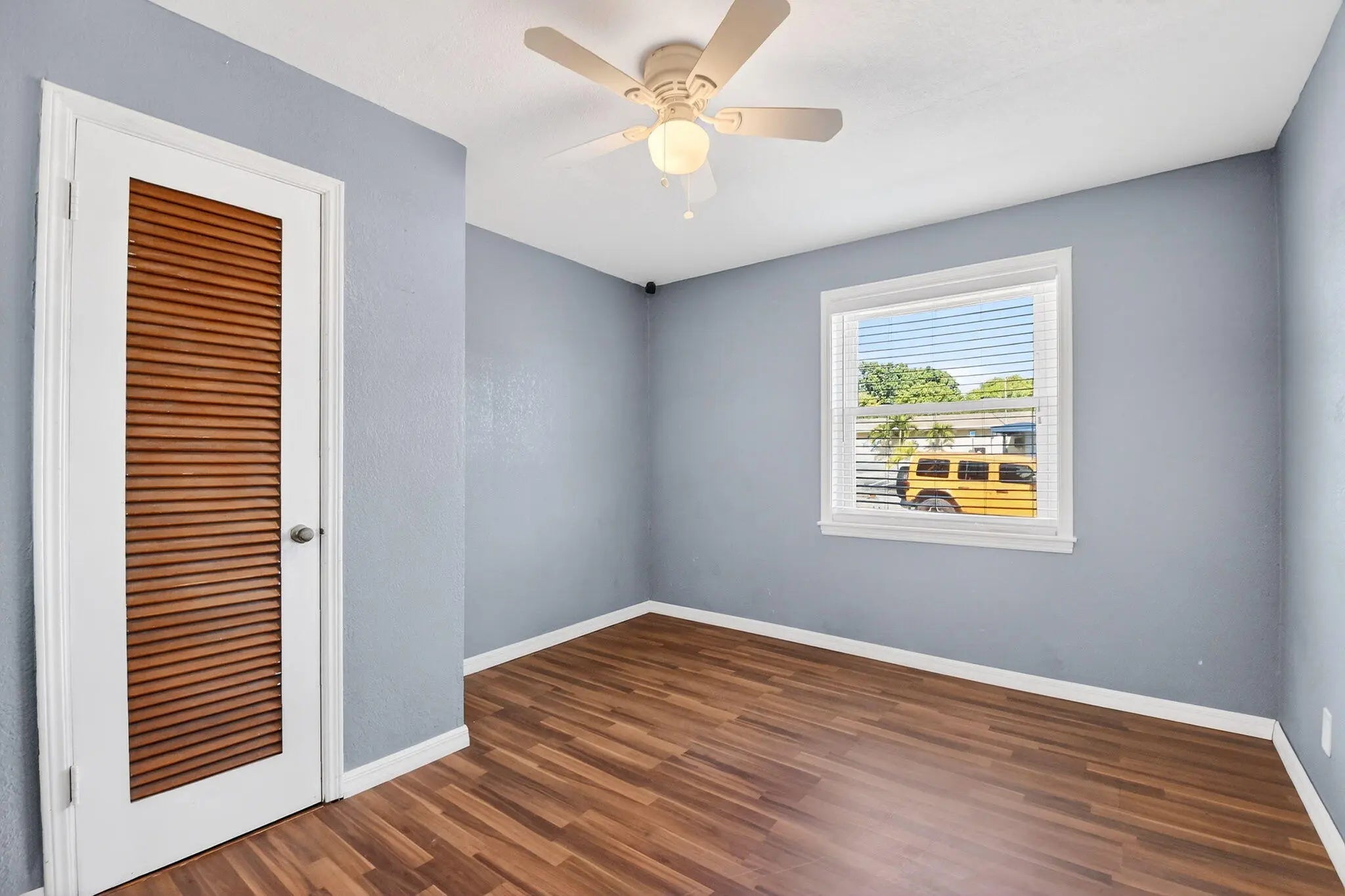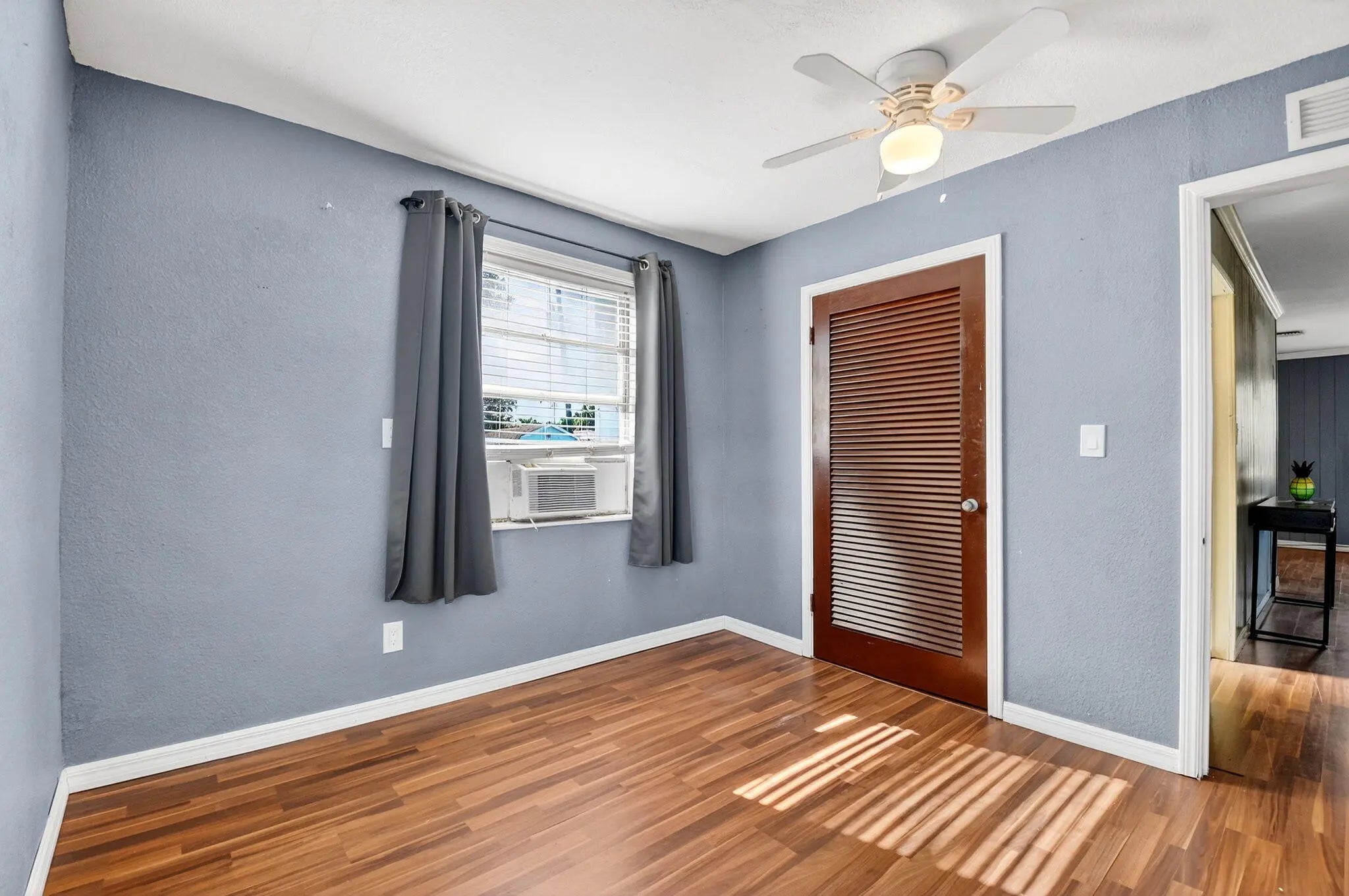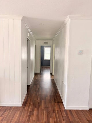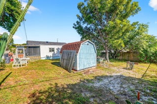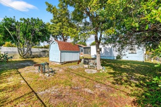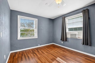 Prime location! This charming starter home offers easy access to everything downtown West Palm Beach provides. The exterior is vinyl siding for easy maintenance. Peace of mind comes with a newer roof (2024), which features a solar ventilation fan for energy efficiency. The flat roof section also has a newer reflective coating. The kitchen boasts hardwood cabinets and stainless steel appliances. Beautiful laminate flooring runs through the main living areas. Additional upgrades include partial impact windows/accordion shutters and a newer washer/dryer. Main living areas freshly painted. Enjoy the large, fully fenced backyard (with room for a pool!) and a separate screened patio. Great curb appeal and it won't last long! Professional photos coming soon!