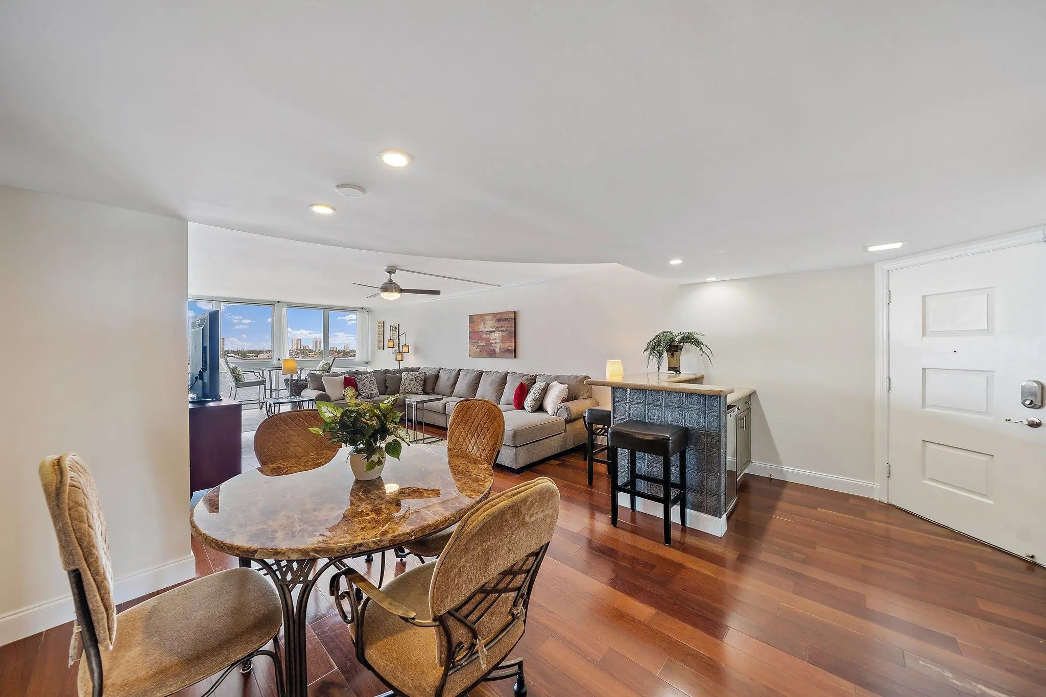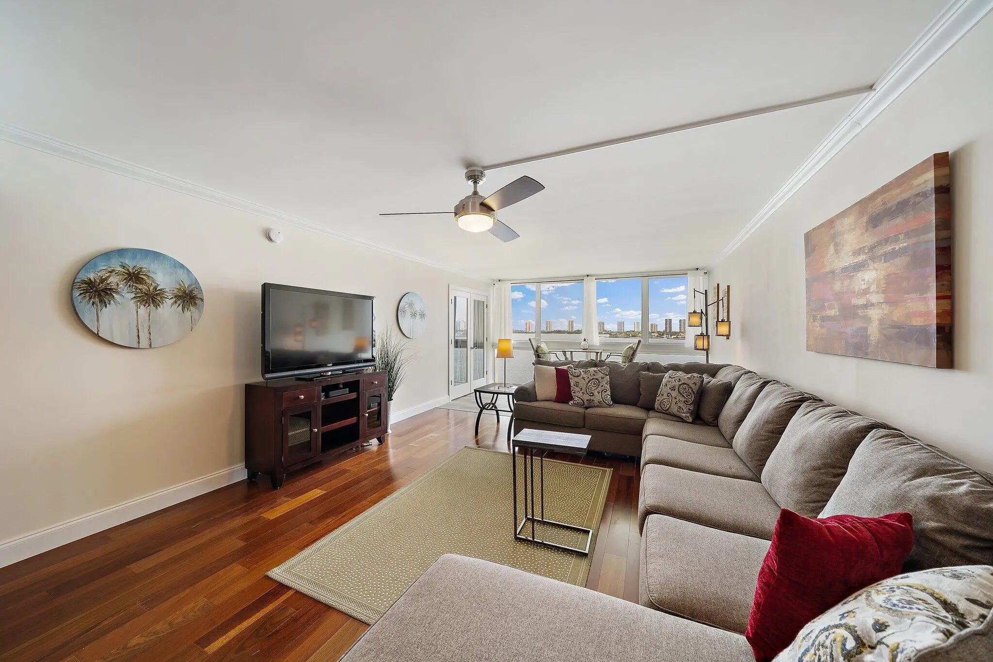 Available April 2026 - Offered for 2027 Season, furnished Annual or 6 month furnished term. Fabulous blue water Intracoastal views from this Penthouse updated condo. Spectacular Views of Singer Island & yachts/boats cruising along the Intracoastal. Wood & tile floors. Newer furniture. King bed in Primary BR with huge walk in Closet. Primary bathroom has double sinks & combo tub/shower. 2nd Bathroom has walk in shower. Twin beds in 2nd BR. Washer/Dryer in unit. Impact storm windows. Bar area for cocktail hour complete with a wine cooler. Community heated Pool. CarPort. Gated Community entrance. Located next door to Lake Park Marina & within walking distance to parks.