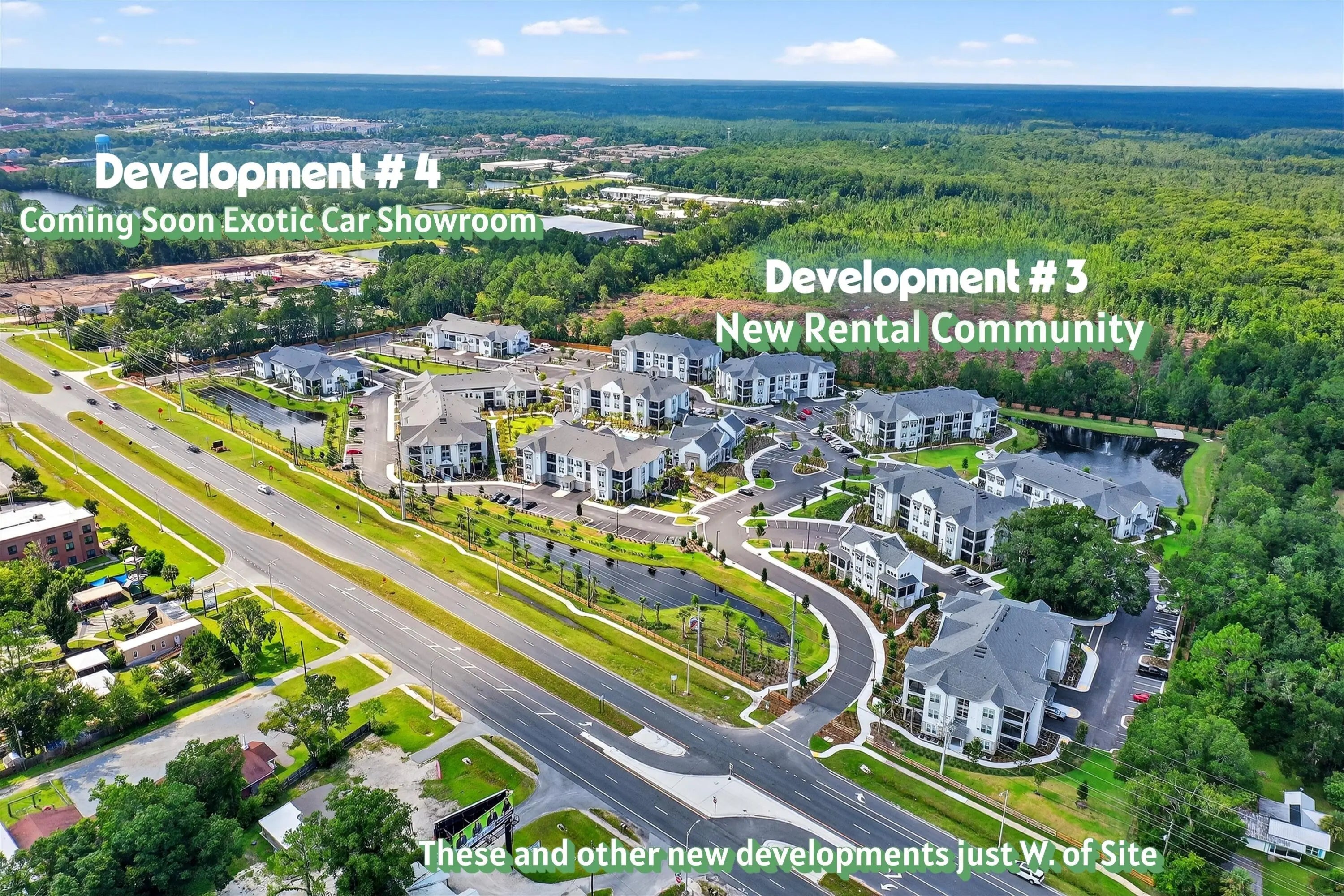 412 Foot Frontage per each 3.5 acre parcel or 823.5 Frontage for both (per tax roll). This is directly on SR 16 which is the Main Road in and out of Old St. Augustine, Fl. The $2.7M price is for the 3.5 acre site on the E. side of the drive. Site W of drive is mostly dry & has income. On last review there were only two other larger parcels available in the area. One had 200 ft and the other 225 feet of Frontage on 16. Please note that the 1900 (listing # 2114333) & this 1910 SR 16 listings are the same parcel with different approaches as to how it is marketed and developed. To be clear there are two engineer generated site plans in the works for this site depending on the developers vision and needs. Virtually all of SR 16 has become a High Demand/High Development Area. The vast majority of sites available two years ago are now in some phase of development. 3 of the 4 new housing projects in the area have recently come directly to 16 (please see pics regarding these developments). The upscale Tapestry located just to the West of subject site finished construction & is currently leasing. Another in the 1100 block of SR 16 & another in the 800 to 900 blk of SR 16 starts construction in Q1 2026. 2 of the 3 new housing starts are for 300+. The 4th housing development (Terrassa) is just N of 16 and E. of I-95 where the high end outlet mall was. Terrassa is also over 300 luxury apts. This high growth area is in need of commercial services to satisfy Mushrooming demand. Due to exposure this site qualifies as Prime. Non-residential projects being built on 16 include a dental bldg w a coffee shop and an emergency care bldg in the 800 block. An exotic car dealership (Sunday Drive) is coming soon to the 2100 block of 16. Lastly Atlantic Marine is soon to build a new boat showroom in the 2200 block of SR 16. The full 12 acre site (Listing # 2114333) is in the process of being planned & permitted for potential entitlements up to 100,000 sqft. In this 1910 SR 16 site plan it is geared for the developer and end user looking to take maximum advantage of the top end traffic count of roughly 43K/day (see attachment line 93.2). Note there is a Median Cut already in place on 16 going directly into the drive providing easy access for customers going in either direction. There will be two buildable 3 acre sites on each side plus a 1/2 acre retention in back of each for a total of 3.5 acres each side. Clients can purchase the full 7 acres or one full side (3.5 ac) or as little as 1.15 acres which includes their portion of the retention. Any which way you slice it your client can not possibly get better exposure than these sites afford. These full 3.5 acre sites will be ideal for your clients looking to build structures in the 15 to 30,000 ft range such as Convenience stores w gas pumps like Circle K, 7-11, Race Trac or even Buc-ee's. Other good fits are grocers like Trader Joe's, Sprouts, Fresh Market or popular Fitness Studios Zoning in front CI & CHT rear DO NOT DISTRURB TENANT!! In the alternate 12 acre 1900 SR 16 site plan (see listing # 255876) there are two smaller outparcels of approx 1.4 acres in front ideal for QSR's (quick serve restaurants like Five Guys, Cava, BurgerFi or Panda Express, Drive-Thru coffee & Beverage Shops like Dutch Brothers or Ellianos, Banks-Credit Unions, Urgent Care/Medical Office/Vision Care i.e. America's Best Contacts, or Dental like Heartland or Deca Dental. Also needed is a Pharmacy w Drive-Thru. Specialty Retail like Mattress Firm, Auto Zone, O'Reilly's or Wireless Providers. Car washes like Mr. Clean, Tommy's Tidal Wave or Mister Car Wash. Also a good fit for auto accessory shops like Tint World, Black Optix, Line-X or Color Glo. In the 1900 SR 16 site plan, in back of the outparcels there will be 2 sets of strip stores on either side of the driveway. Both w drive thru end caps. These retail strips could offer the needed services such as hair and nail salon, barber, dry cleaner, beauty supply, mini bank branches w atm machines, small sit down restaurants, pet care and grooming etc. In back of the strip stores there is a space that can accommodate a large structure with a footprint of 15,000 sqft and can go up to 5 stories. A structure like that would be ideal for Commercial Flex space, a hotel, or potentially a larger scale bed and breakfast built with an Old St. Augustine motif. A few other options include: Tech Schools, College Satellite facilities, Medical/profession office bldg, Top end (Covered) RV and Boat Storage, Large Scale Fitness Facility, Recreation facilities, Adult & Child Care Centers etc. Please check attached Zoning charts to confirm if your project applies. Property currently has a 3000 ft metal structure & two businesses on site W. of the drive, these are not necessarily being considered in the valuation.