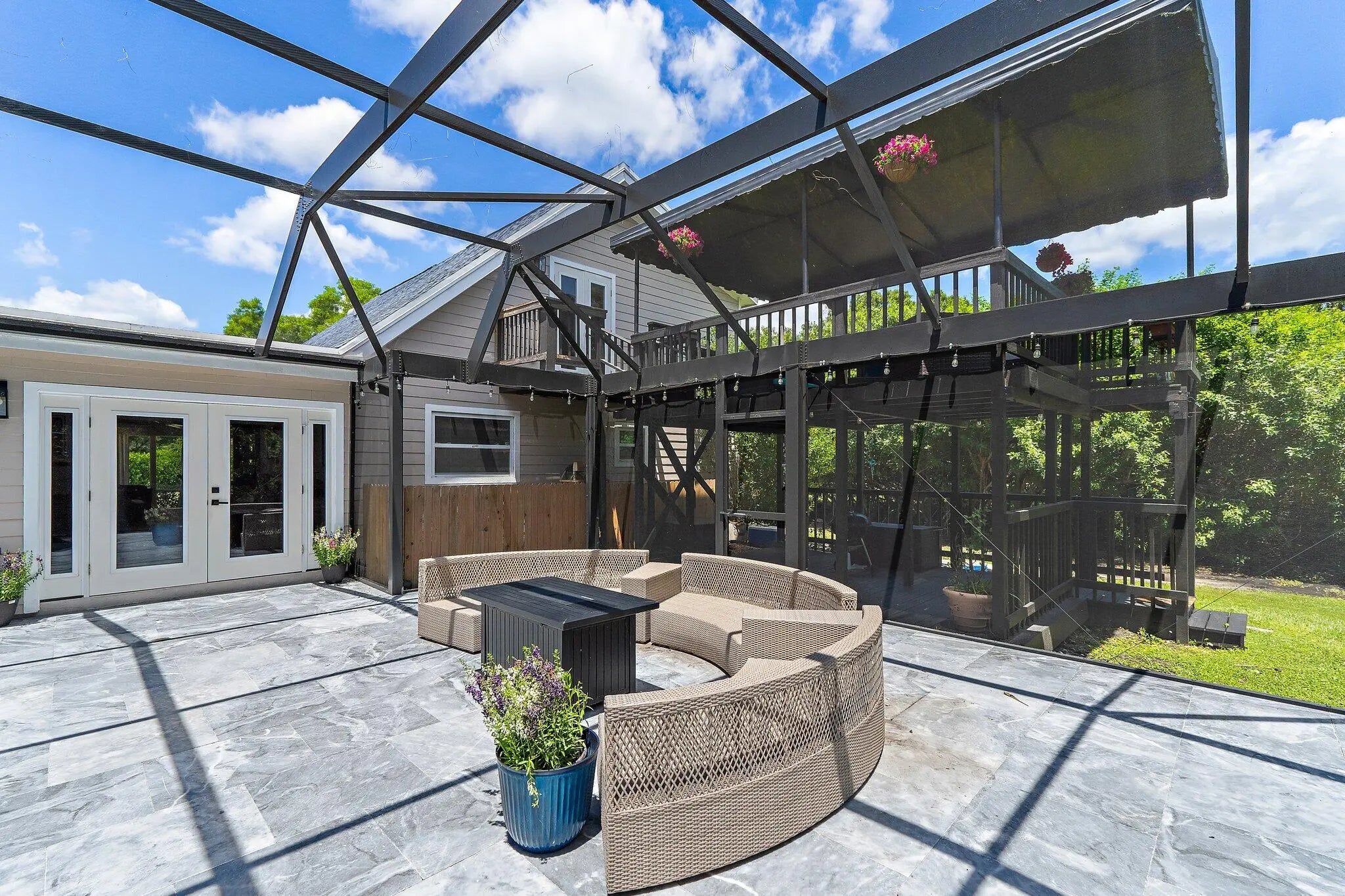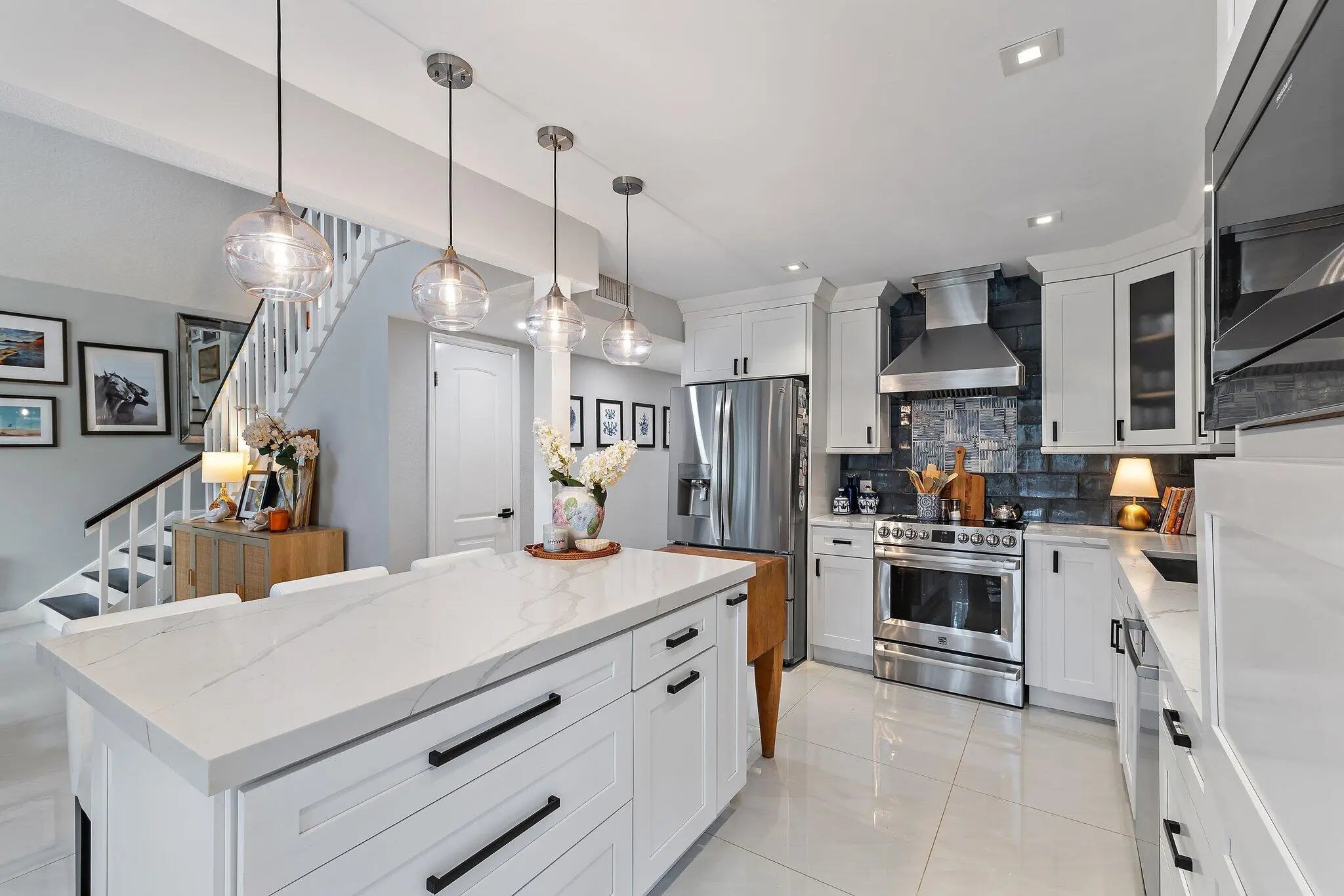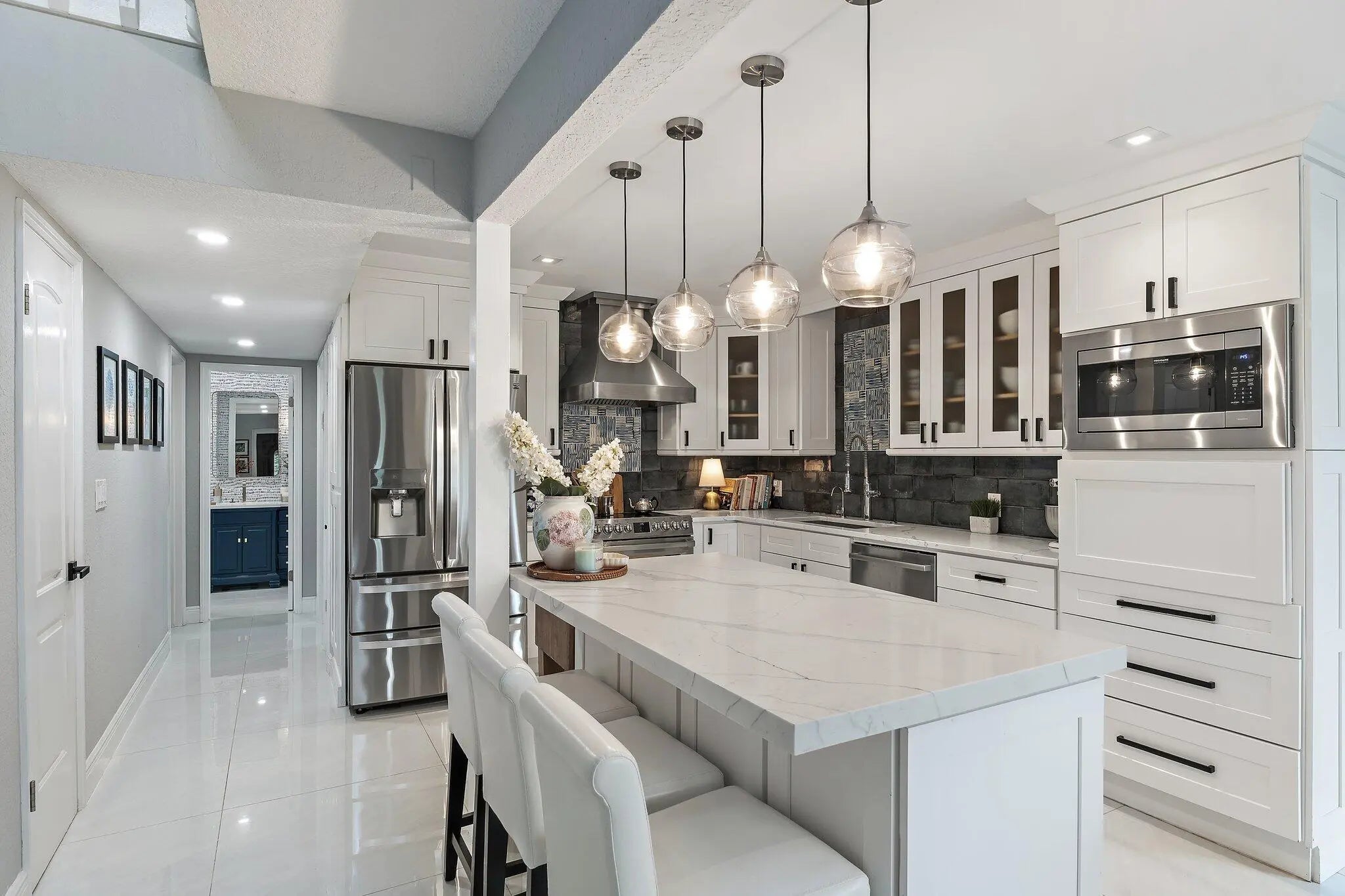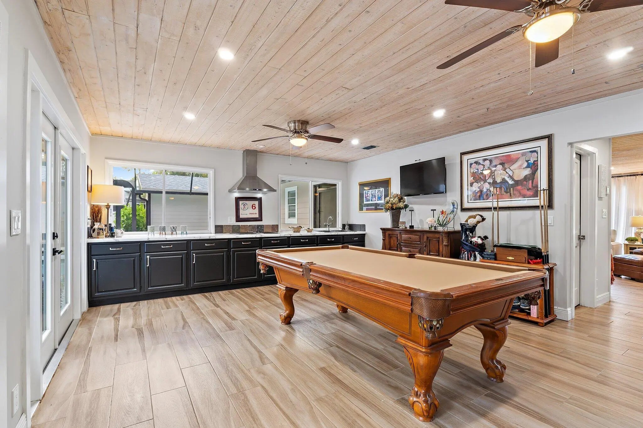 Jupiter Farms lifestyle in this beautifully updated 3BR/3BA pool home on 1.25 private acres with no HOA and plenty of room for RVs, boats, horses, and extra vehicles. This property blends farmhouse charm with modern upgrades: 2022 roof, partial impact windows, and a 2023 hurricane-rated panoramic pool enclosure. Inside, you'll love the spacious family room with custom built-ins, solid oak loft, and a remodeled kitchen with quartz countertops, appliance garage, stainless hood, island seating, and under-cabinet lighting. All three bathrooms have been completely renovated with quartz, seamless glass, upgraded lighting, and custom cabinetry. Flooring includes large-format porcelain tile, engineered wood, and solid oak stairs. The private upstairs primary suite features a sunny deck overlook the property. The 3rd bedroom doubles as a home office with custom built-ins. Outside is where this home shinesa 30-ft screened patio, saltwater pool with heater + chiller, lush landscaping, and summer kitchen hookups already in place. A rare 3.5-bay garage offers exceptional storage or workshop potential. Newer mechanicals: Roof 2022, Pool Heater/Chiller 2022, A/C units 2016 & 2022, Kitchen 2021, Bathrooms 2021-22. Enjoy unmatched privacy, quiet, and the feel of true Jupiter Farms livingyet minutes to Publix, restaurants, I-95, the turnpike, and A-rated schools.