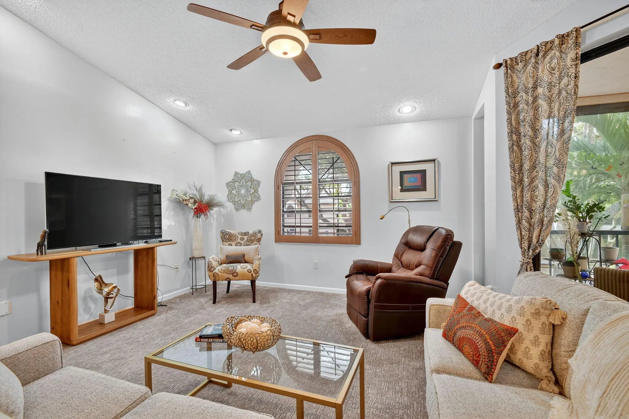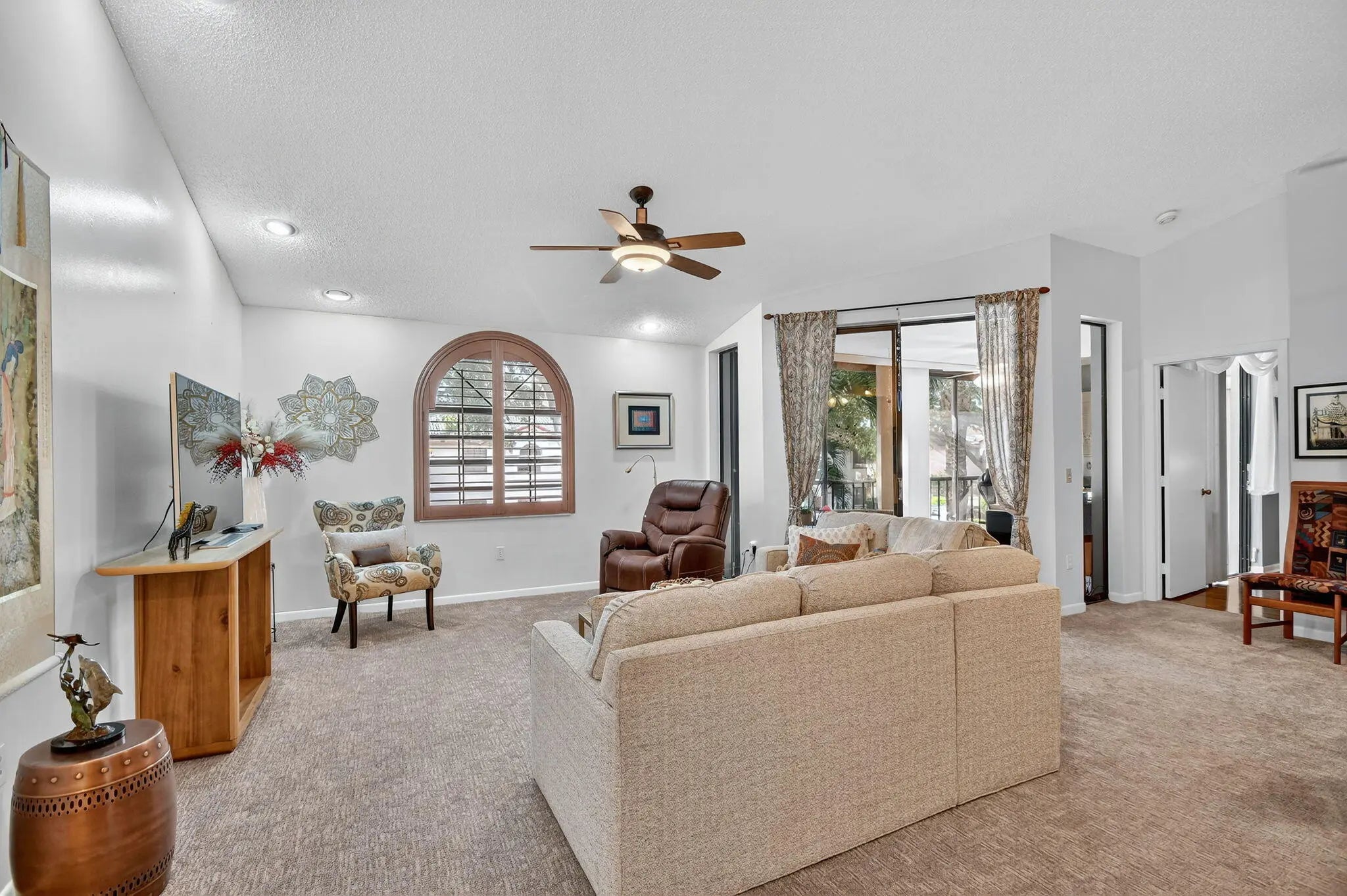 Welcome to this beautiful Grandi model located in the highly sought-after gated community of Platina in Boynton Beach. This 3 bedroom, 2 bathroom condo. Step inside to a spacious, light-filled open floor plan featuring vaulted ceilings, and wood flooring, and a comfortable flow perfect for everyday living or entertaining. The split-bedroom design ensures privacy for you and your guests, while the primary suite boasts a large walk-in closet, and dual sinks and walk-in shower. The kitchen offers plenty of cabinet and counter space, a cozy breakfast nook. Plantina offers an exceptional lifestyle in a beautifully maintained, guard gated community designed for comfort and connection. Residents enjoy resort-style amenities and the convenience of having DirectTV, AT&T high-speed internet, water, and pest control included, with only electricity billed separately. At the center of the community is an impressive 20,000-square-foot clubhouse featuring a welcoming café serving breakfast and lunch, social card rooms, and a fitness center with stationary bikes set in a light-filled solarium overlooking the pool. Multiple swimming options include several satellite pools and a stunning free-form main pool with an expansive sun deck. Outdoor and recreational amenities include tennis, handball, and pickleball courts, along with a dedicated art studio equipped with a kiln. A full calendar of entertainment, clubs, shows, and bingo ensures an active and engaging lifestyle. Ideally located near I-95 and the Florida Turnpike, PLATINA also offers easy access to shopping, dining, and more all within a 24-hour guard-gated setting. Don't miss the opportunity to explore the clubhouse and experience the community firsthand.