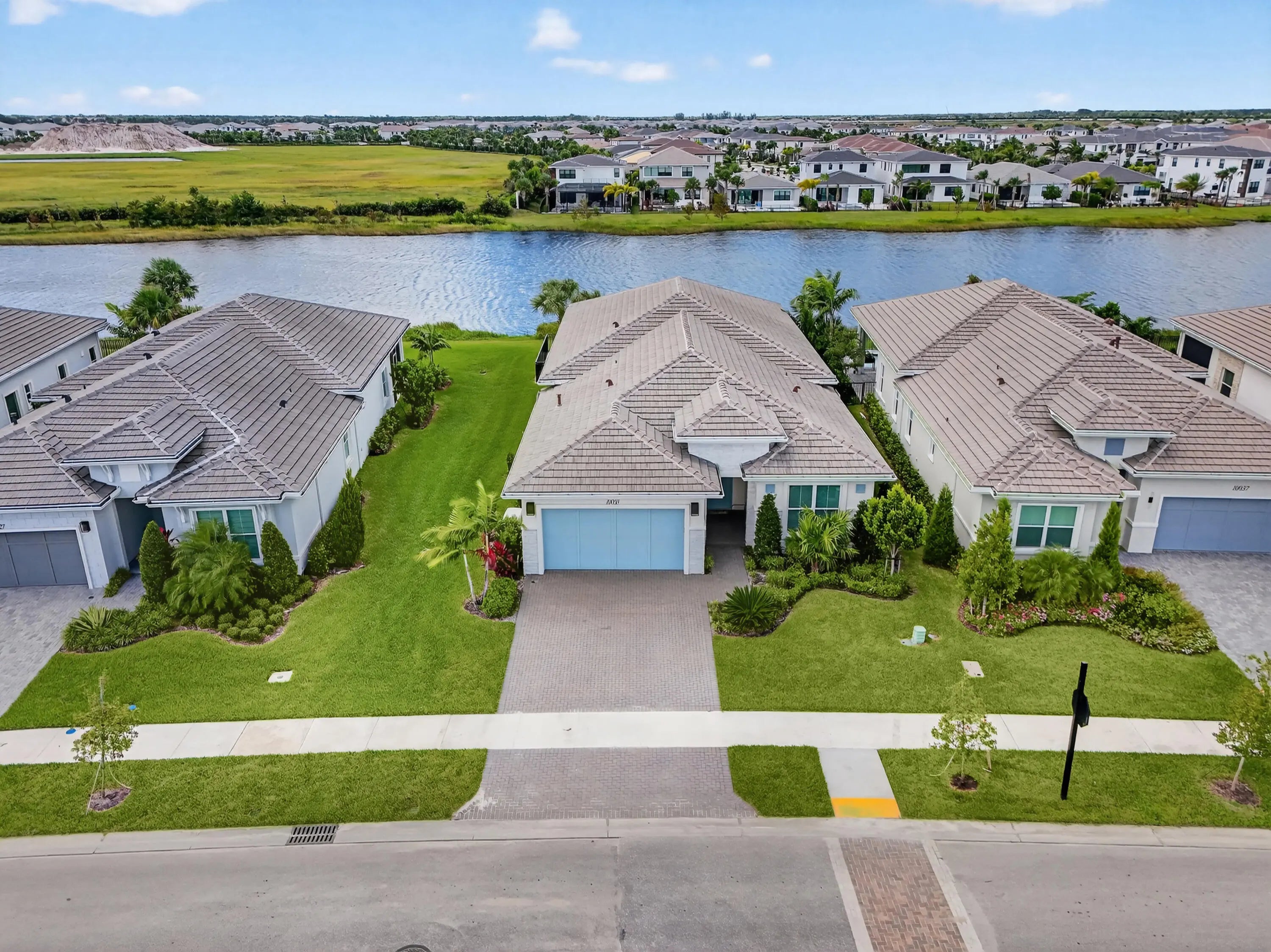 This beautifully appointed 3-bedroom plus office, 3-bath home offers an open and airy floor plan with a bright coastal feel and stunning wide water lake views. Western exposure provides magnificent sunsets that can be enjoyed from the extended lanai patio, creating the perfect setting for entertaining or relaxing by the water. The home features a Tropical-inspired backyard complete with astro turf, a golf putting area, and remote-controlled hurricane patio screens for year-round comfort. Inside, every detail has been thoughtfully upgraded, whole house, Generac Generator, oversized 8-blade ceiling fans with lights in the living areas, bedrooms, and patio, custom blinds on all windows, upgraded light fixtures, and an oversized jetted tub in the primary suite and comfort height toilets. Additional enhancements include, gas fireplace with remote control, extended garage with an additional two feet of height clearance to accommodate large vehicles, finished epoxy garage floor, and custom exterior lighting on a programmable timer. Technology upgrades include extended Wi-Fi coverage to the patio with security monitoring and a zoom feature accessible by phone, along with an upgraded electronic front door lock and doorbell cameras for convenience and peace of mind. All front and back pavers have been professionally glazed, completing the polished look of this exceptional property. Furniture is negotiable, offering the opportunity for a seamless, move-in-ready experience. Experience private, resort-style living at its finest in this vibrant Regency Avenir community. Located in the sought-after Palm Beach Gardens, this community blends contemporary home designs with exceptional amenities, all set in a relaxed and inviting atmosphere. Residents of Regency at Avenir in sought after Palm Beach Gardens enjoy exclusive access to The Pearl, the community's 22,000 sqft private clubhouse offering an onsite activities director, a wide array of special interest clubs, activities, and events. Amenities at The Pearl include a picturesque resort-style pool, spa, pickleball, tennis, two fitness centers, wine storage, card and game rooms, ball room, indoor/outdoor lounge, a golf simulator, outdoor amphitheater, outdoor game area and much more. Conveniently located near Sand Hill Crane Golf Club an 18-hole championship course, The new Nest Par 3 Course and various dining options. Across the street is PGA National's Estate Course, with membership options available. Minutes away from shopping, dining, the Airport, Palm Beach and so much more.