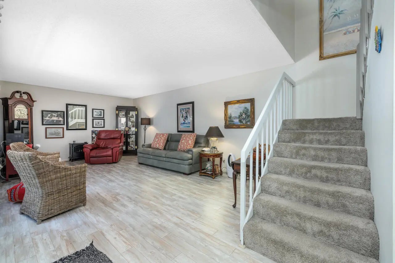 This beautifully updated townhouse features 2 spacious bedrooms and 2 full baths upstairs, plus a convenient 1/2 bath on the main floor. The downstairs boast a remodeled kitchen and new laminate wood flooring. Open Living area and spacious outdoor patio is perfect for entertaining or relaxing. The upstairs area provides a great opportunity for personal touches, with a chance to add new flooring and a few updates to make it your own. Roof and AC replaced in 2023. This unit backs up to a scenic preserve, offering added privacy and a tranquil natural backdrop. Located in a friendly community with 2 swimming pools, tennis and pickleball courts, a private scenic boardwalk to the water and more, all just minute from both Hobe Sound and Stuart.