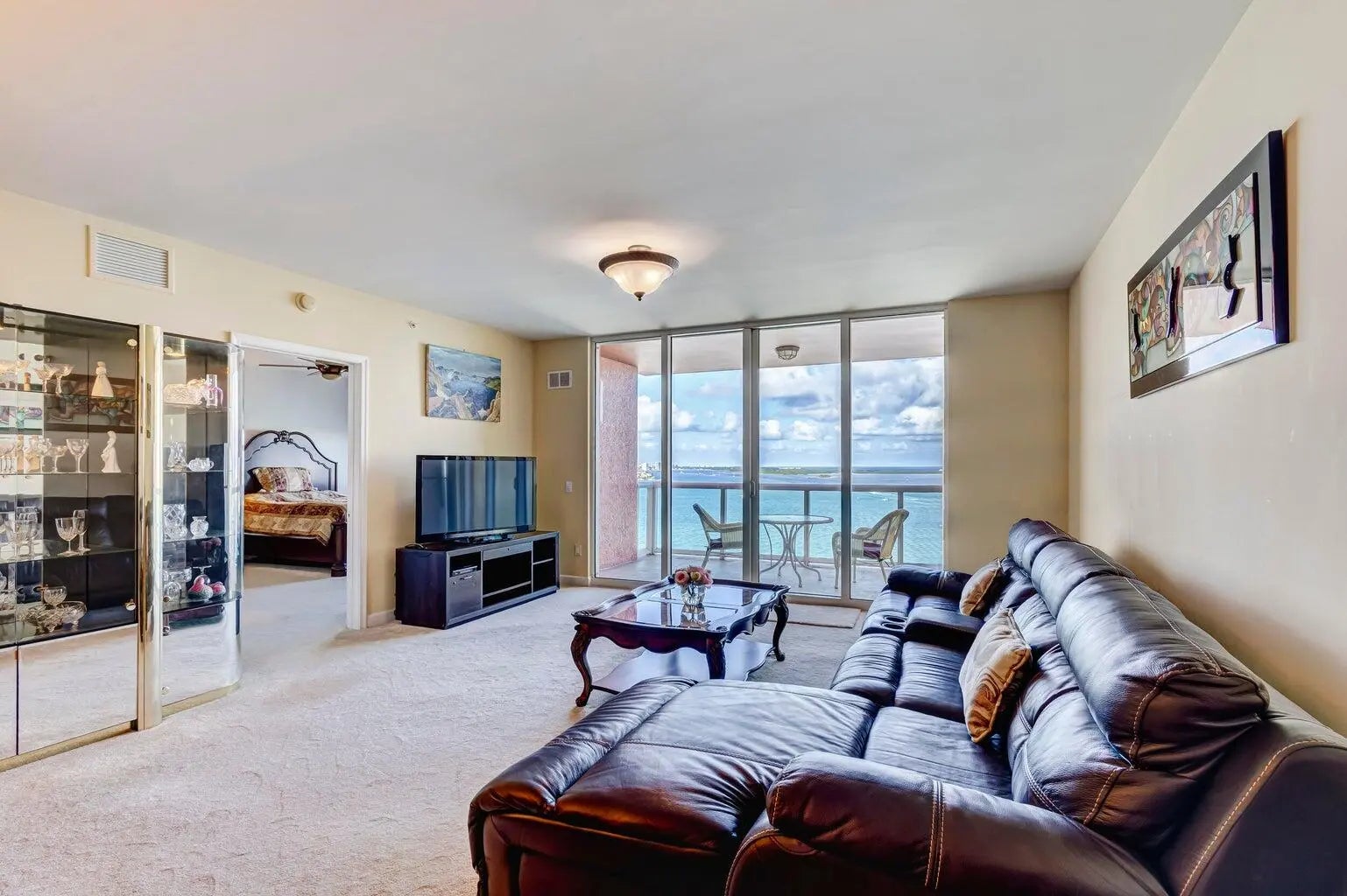 ONE OF THE MOST SPECTACULAR PANORAMIC VIEWS YOU WILL EVER SEE FROM THIS 18 FLOOR. 2 BEDROOM 2 1/2 BATHS WITH JACUZZI IN MASTER BATHROOM , MODERN UPGRADED KITCHEN FULLY FURNISHED.WASHER AND DRYER IN UNIT, VALET SERVICE,GARAGE PARKING,POOL, TENNIS,FITNESS CENTER,CARD ROOMS,BBQ AREA, MNGT ON SITE 24 SECURITY GUARD GATE . SEMI PRIVATE ELEVATOR TO YOUR FLOOR.RESORT STYLE LIVING,BOAT SLIPS AVAILABLE TO RENT.