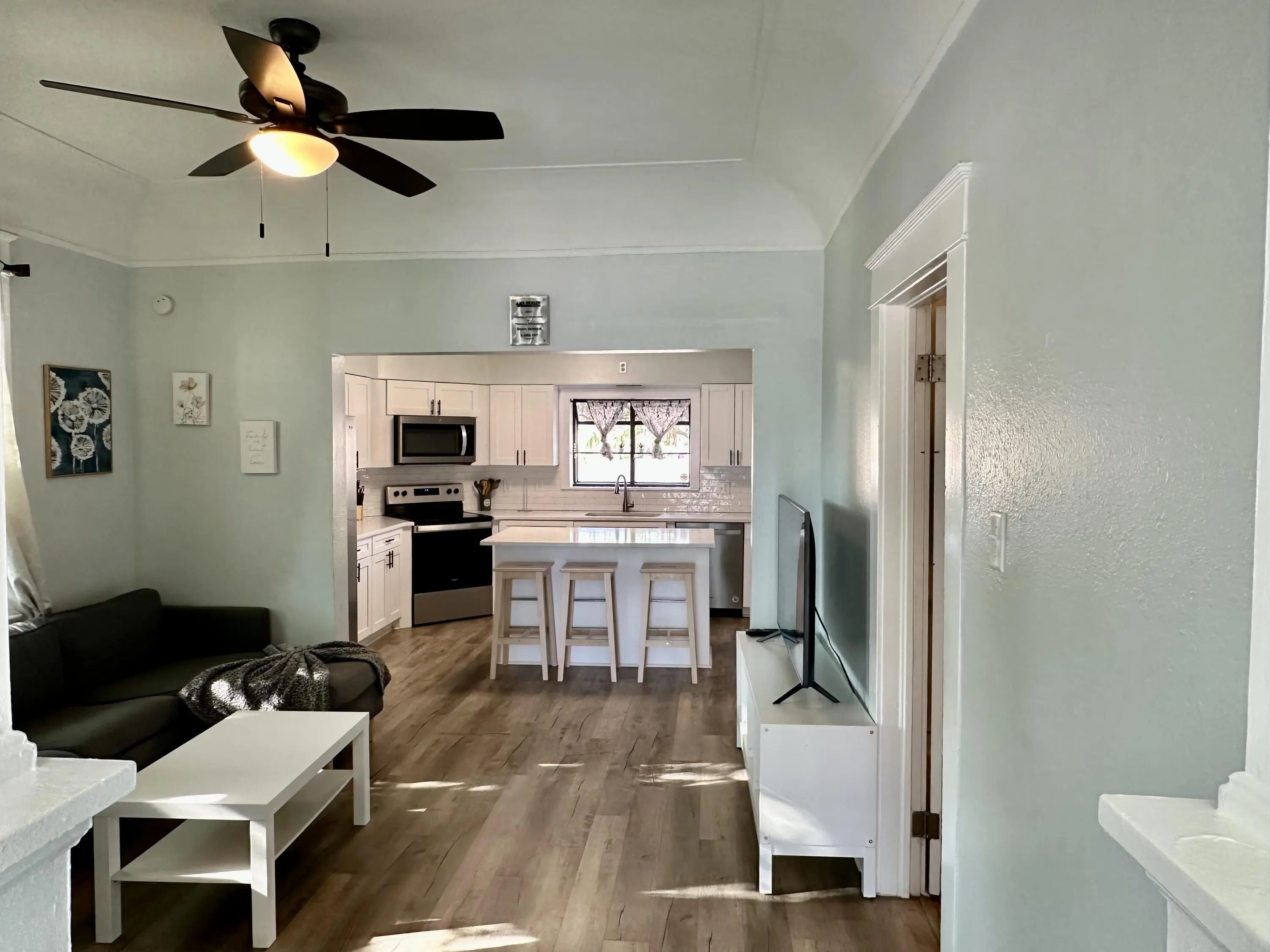 This home is one unique opportunity to bring your lifestyle and business to this perfect location offering ample parking up to 6 Vehicles- boat-RV ect. Perfect for contractors as this is fully furnished with a very spacius layout and updated amenities. Fully updated interior, with top of the line appliances, full front porch to enjoy the Breezy nights walking distance to stores, & schools
