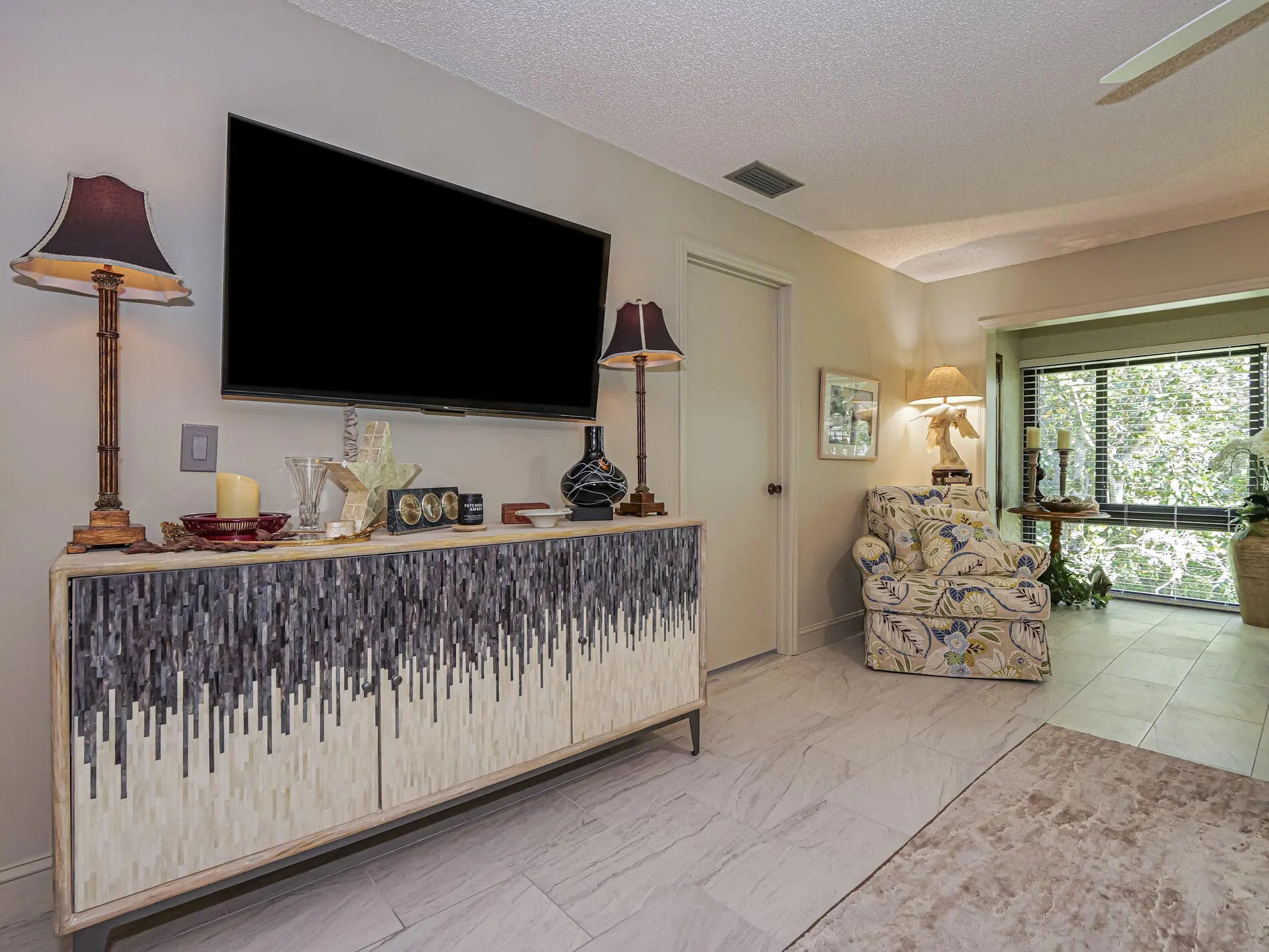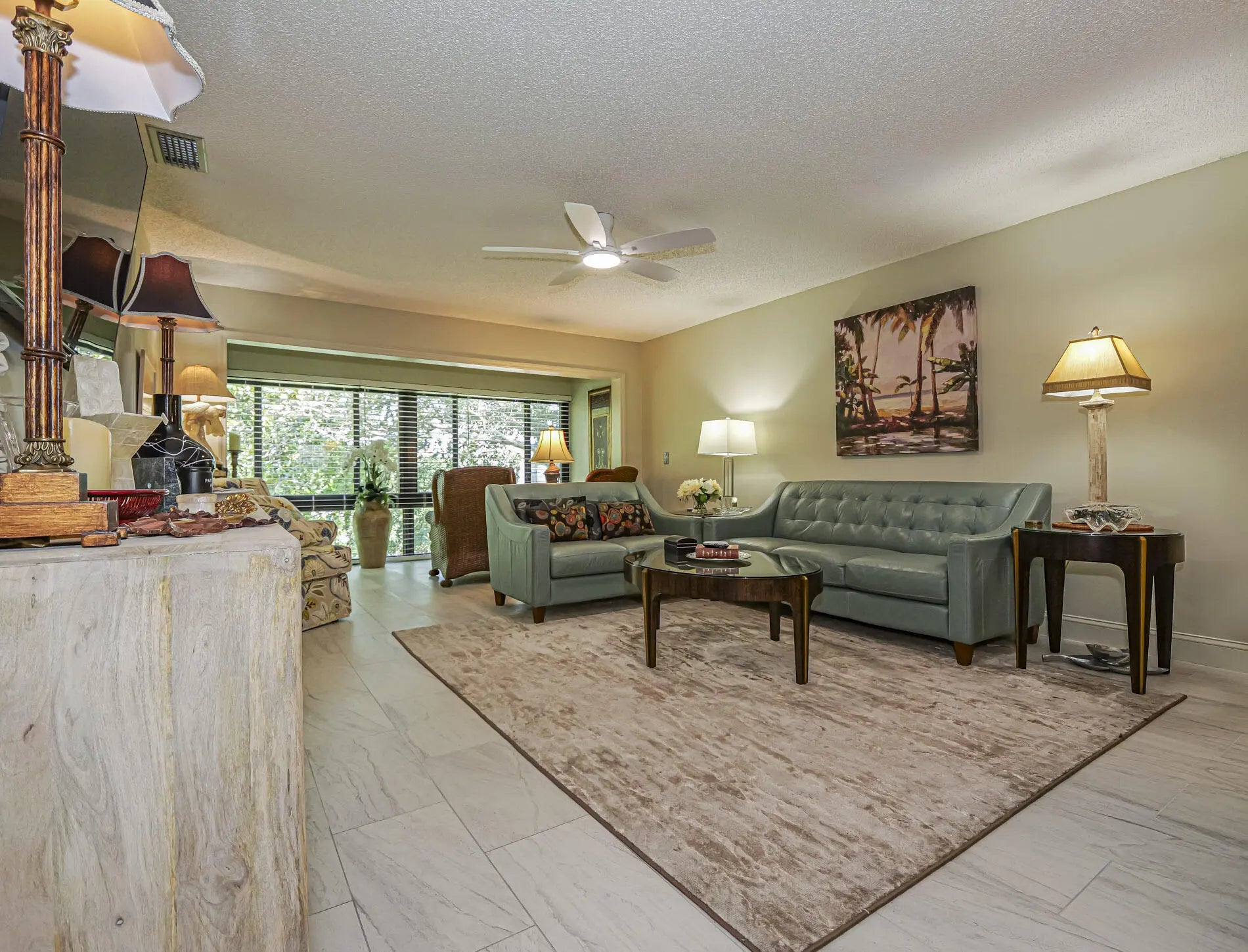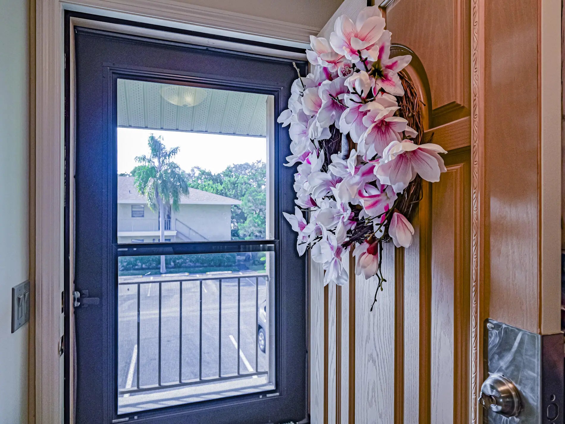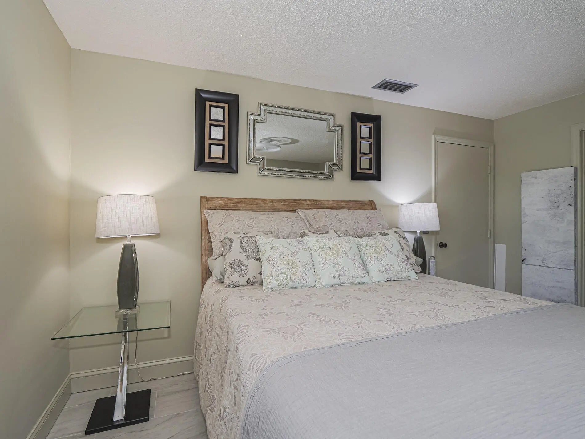 Being sold furnished, this completely remodeled split BR plan 2/2 has nearly 1150 sq ft. Gorgeous kitchen with stone counters and stainless steel --all newer appliances and fixtures. Stone tile flooring throughout. Spacious living-dining area expands to enclosed glassed in porch with view or garden area. Large primary BR with updated bath - 2nd BR with queen bed and full bath in hall. Designer touches throughout! Oak Park Terrace is just 2 miles to beaches and closer to shops and stores. Complex has heated pool and tennis. 55+ with no pets allowed -- coin op laundry.