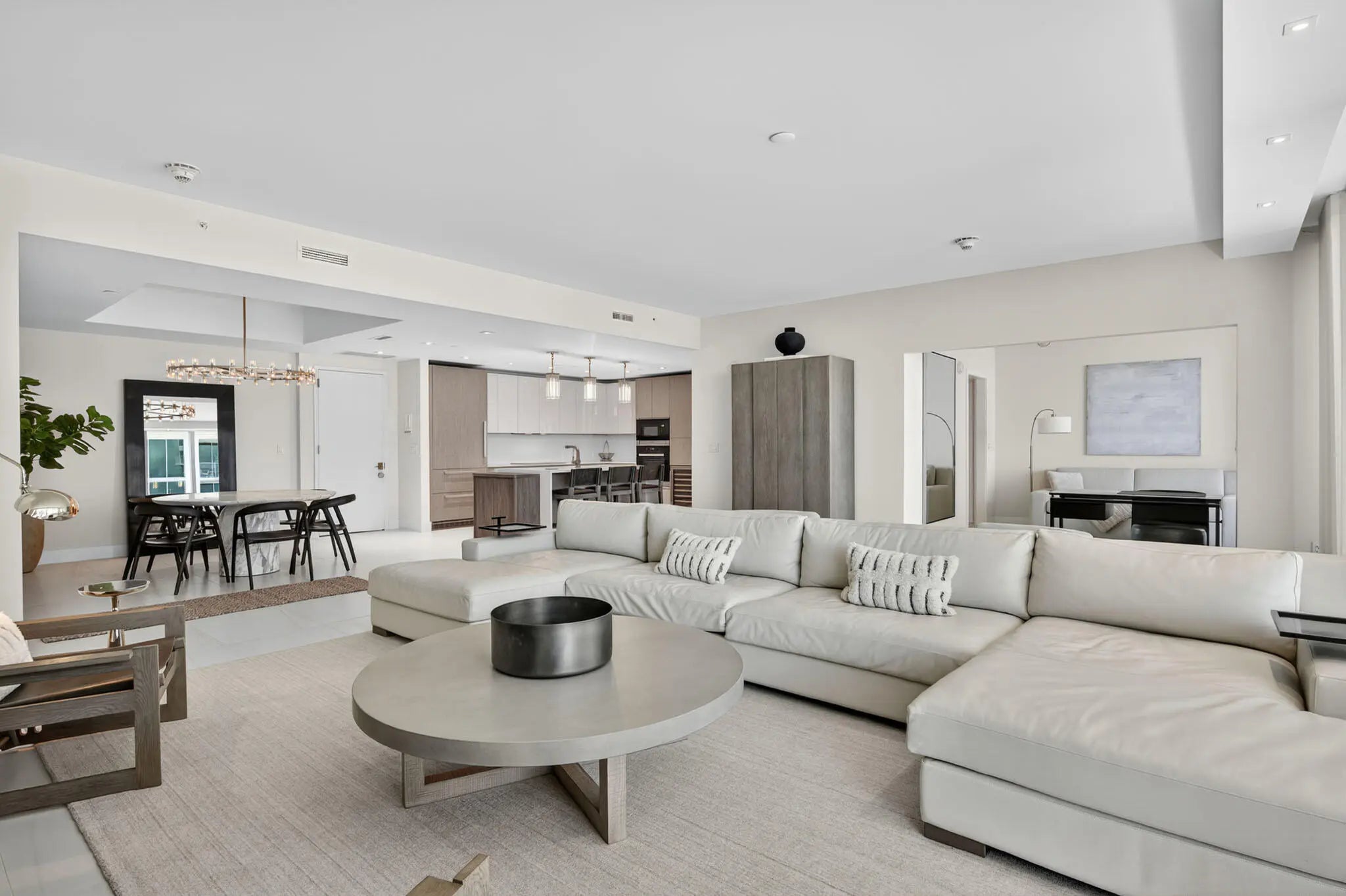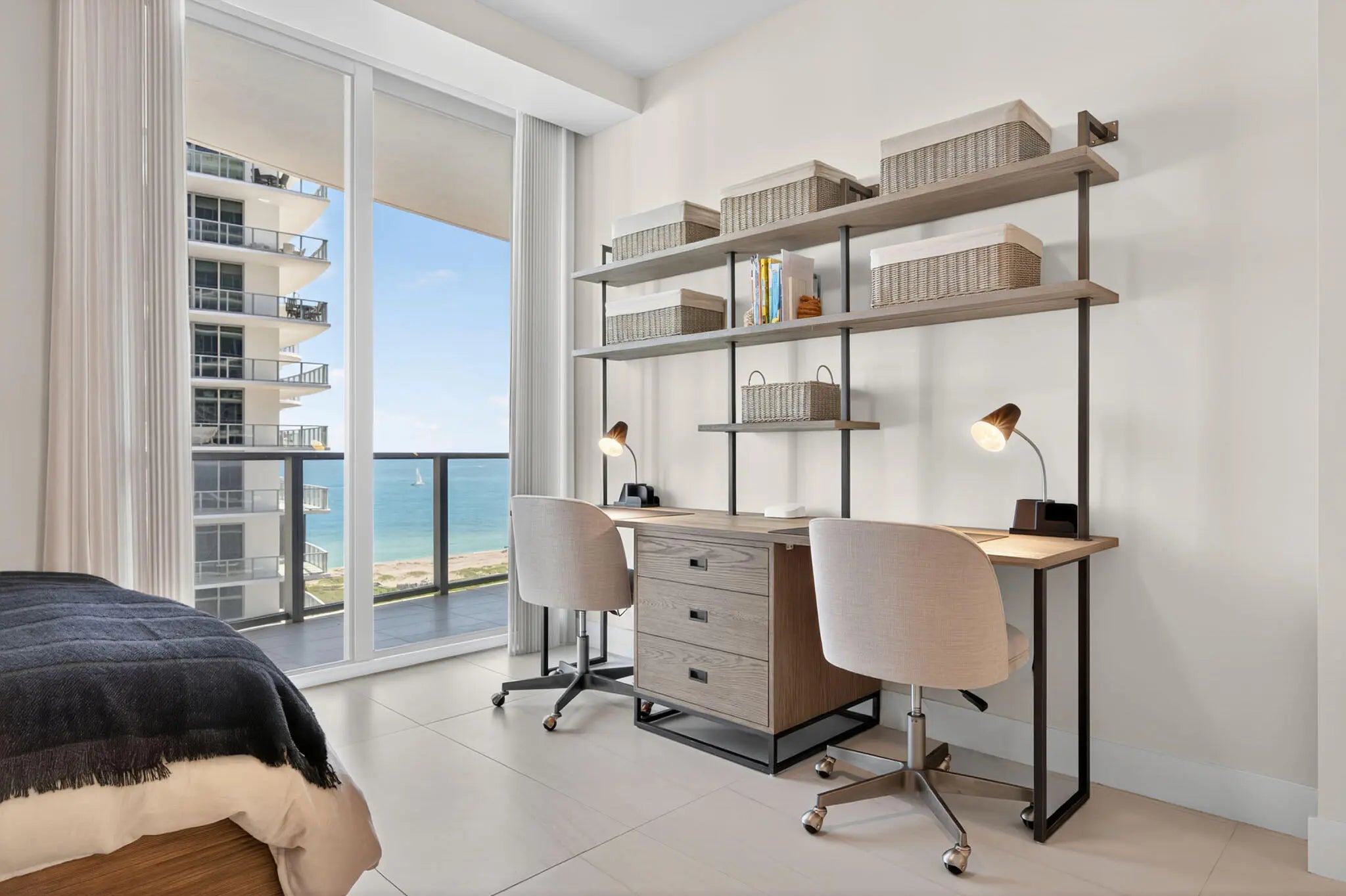 Modern complex built in 2023. Spacious, high-end condo with spectacular ocean views from every room. Large terrace, laundry room, Miele appliances. Sleeps up to 7 guests, the den features a high-quality sleeper sofa for extra comfort. Valet parking, residents pool, hot tub, community room, 100,000-square-foot spa facility, gym, restaurants, beach with chairs and umbrellas, towel service, all available for your use. Available ANNUAL and SEASONAL. Call for seasonal prices.