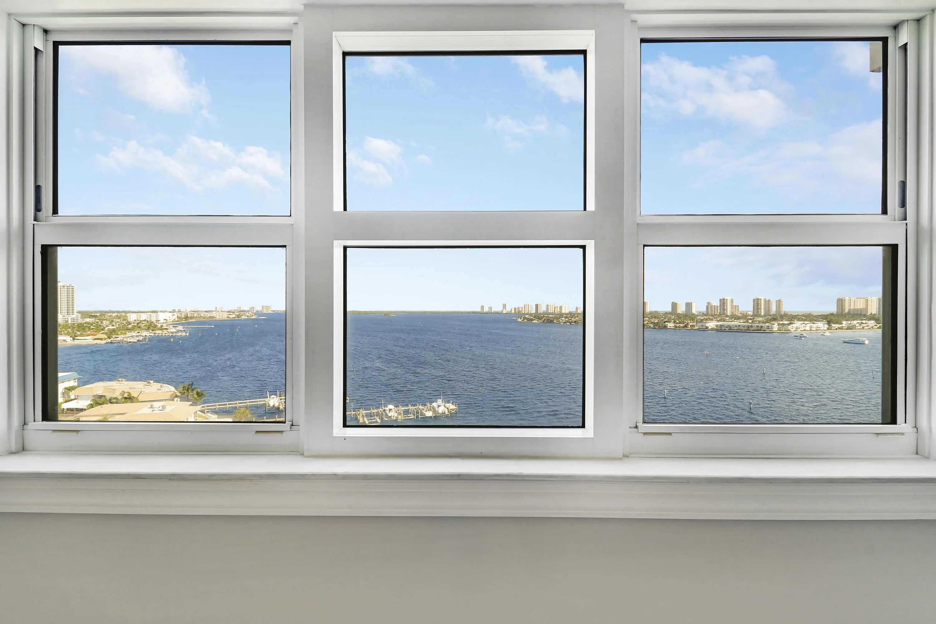 Move in ready! Seller wants an offer! Current Assessments to be paid by owner. Stunning intracoastal waterway and ocean views. Floor to ceiling 9FT Impact windows Largest 2 bedroom, 2 1/2 bath floor plan. High end Turkish marble floors throughout, marble countertops, backsplash, custom crown molding, baseboards w/ elegant wall trim. Freshly painted. 2023 AC, Deeded Parking 2-P101 / and climate-controlled storage 2 -L29. Gated Security with 24-7 private guard. TV cameras, and secure access only entry fobs. Pet friendly. Clubhouse, pickleball, sauna, steam room, luxury pool and hot tub. Full-Service Boat Marina available. Florida's most beautiful beaches and parks are 5 minutes away.