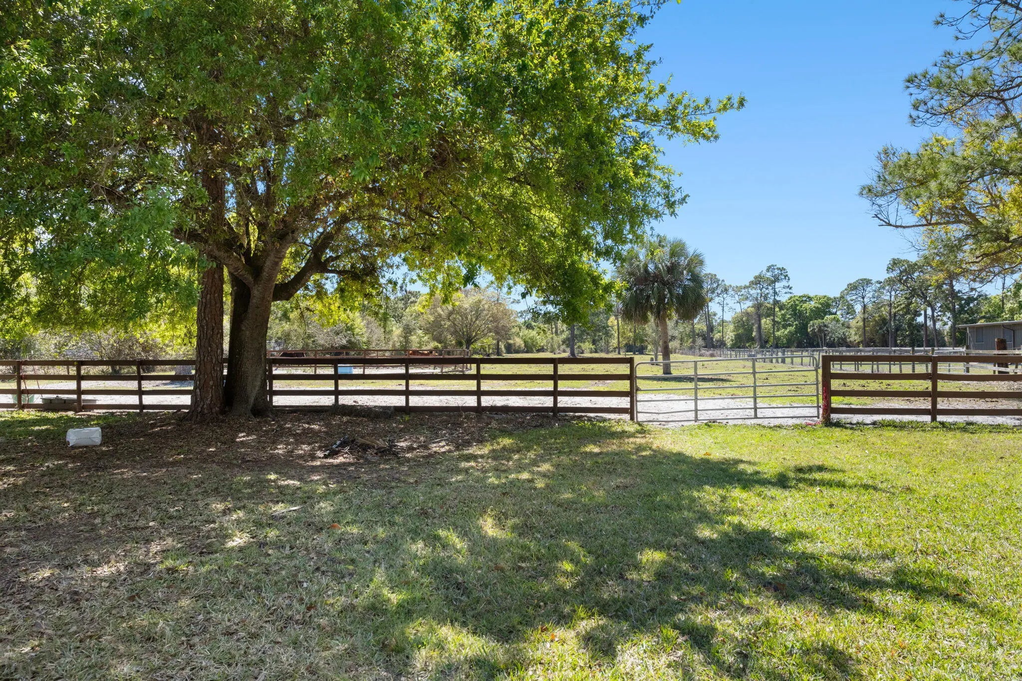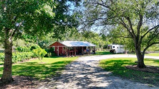 Enjoy peaceful country living close to town in Indian River Farms, Vero Beach. This 3 bed, 2 bath home sits on 5 acres with a fenced horse pasture, barn, and A/C outbuilding. Inside, vaulted ceilings, tile floors, office/flex room and an updated kitchen with stainless appliances complement a cozy wood-burning fireplace. French doors open to a screened porch overlooking lush grounds including lemon & mango trees. With a whole-house generator, RV plug, and new A/C, this property offers the ideal blend of comfort, space, and family-friendly charm.