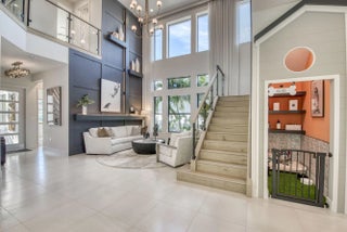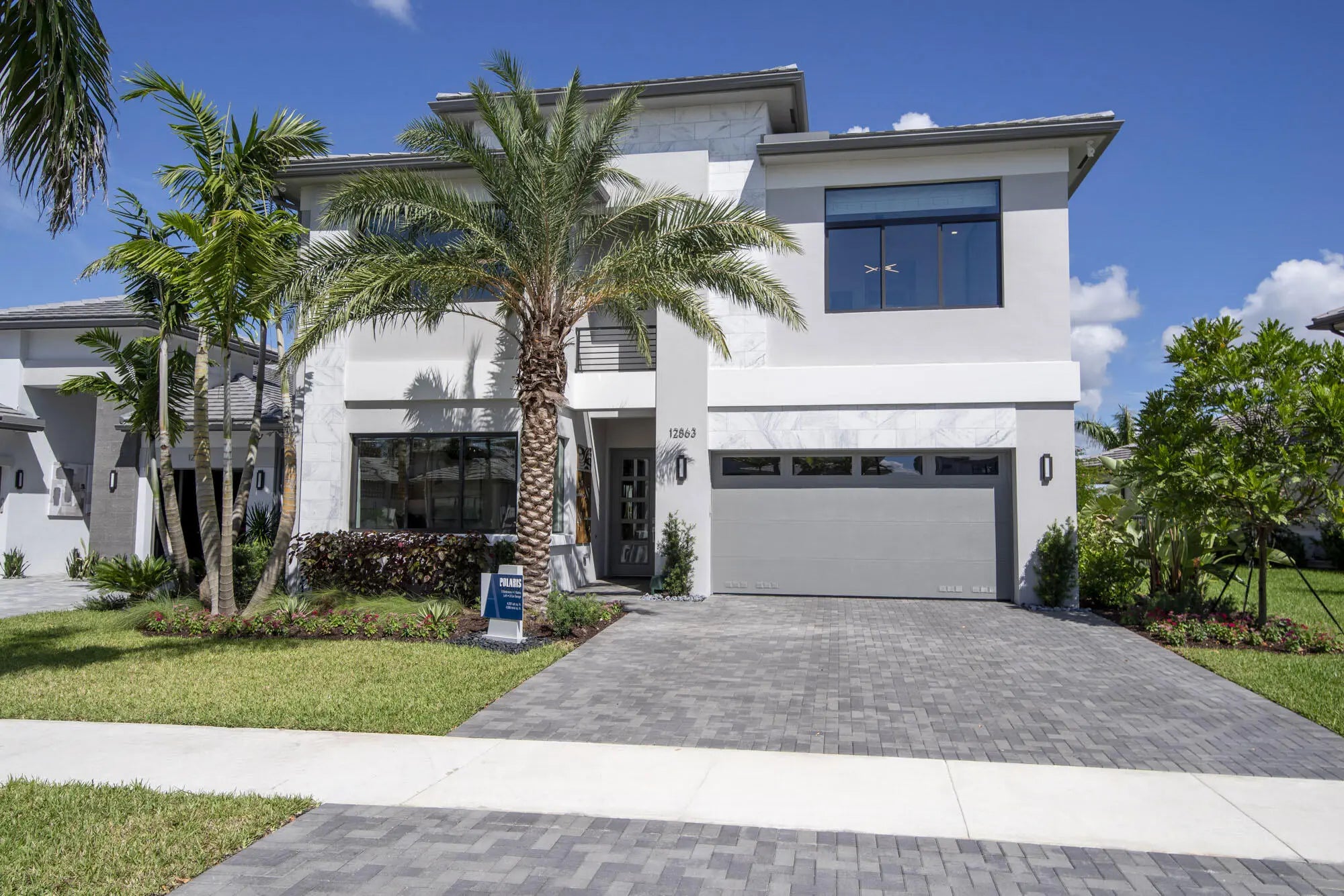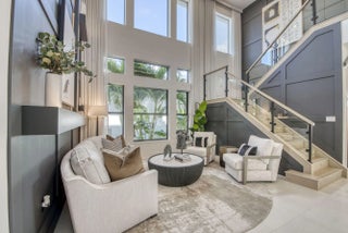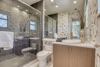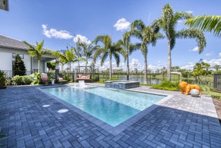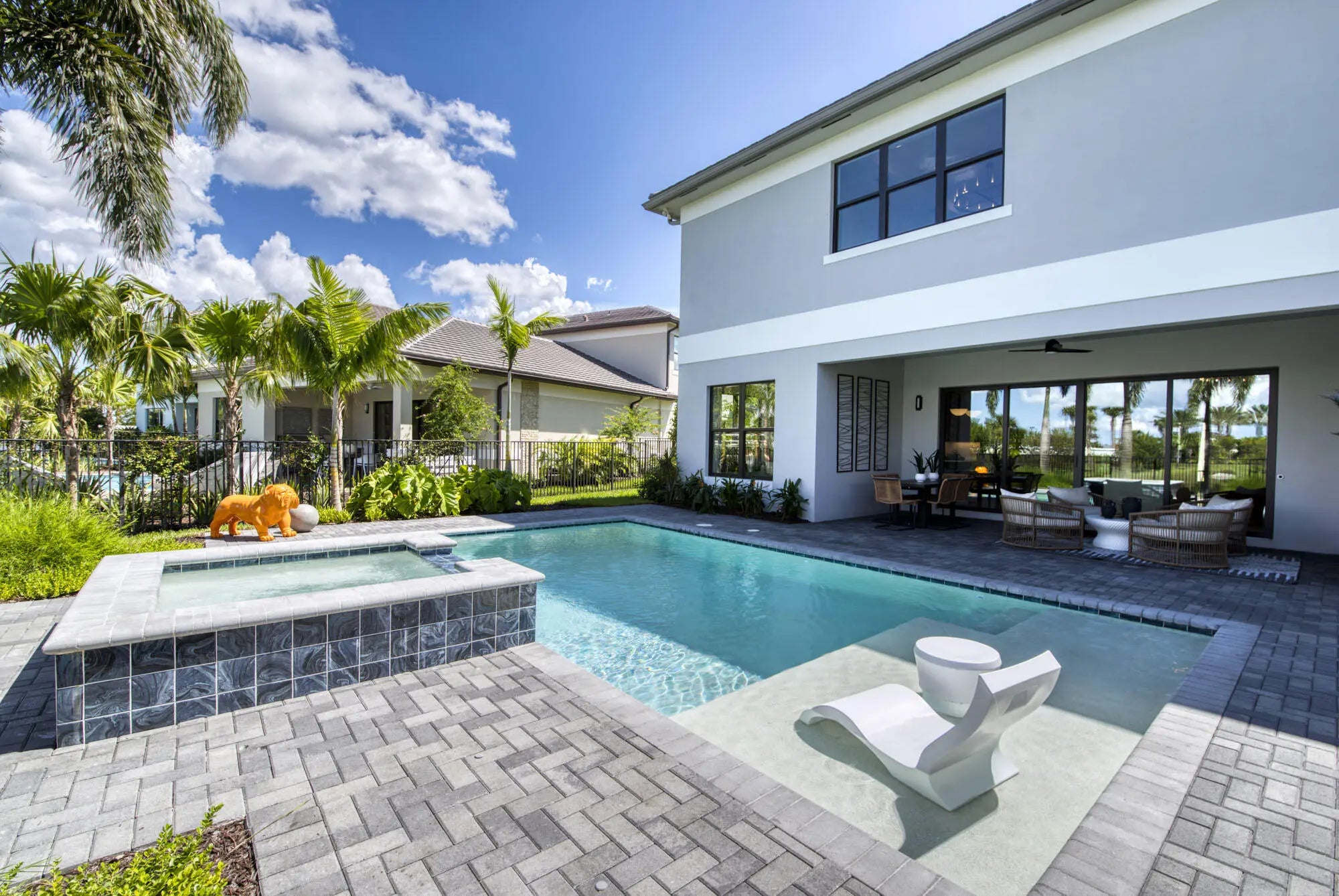 Modern Luxury in Apex at Avenir. This 5-bedroom, 7-bath lakefront home combines elegant design with functional living spaces, including a loft and 2-car garage. The interior features porcelain floor in key areas such as the foyer, great room, family dining, and laundry room. The gourmet kitchen is appointed with upgraded cabinetry, sleek quartz countertops with a flat polished edge, a full backsplash, GE appliances including a gas cooktop, and a large island ideal for cooking and entertaining. The laundry room offers upgraded cabinets with quartz countertops and a built-in sink for added convenience. include a gas stub-out for a future summer kitchen, pool pre-wire, 20 AMP garage receptacles for a future refrigerator, USB/C receptacles in the kitchen and primary bedroom, and a conduit for future EV charger installation. Experience the exceptional lifestyle and ideal location of Apex at Avenir, with easy access to the best of Palm Beach County. Estimated delivery: April/May 2026.