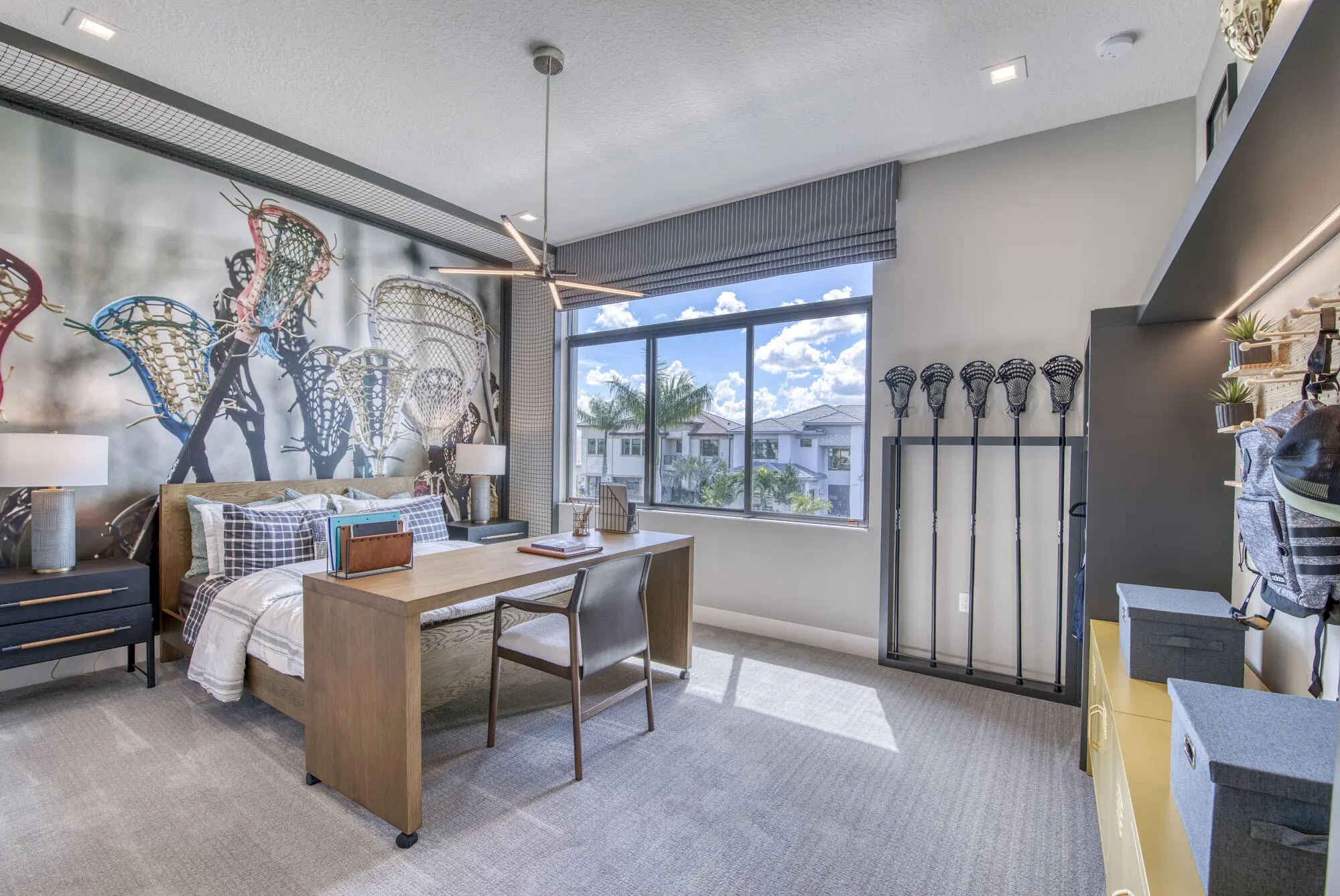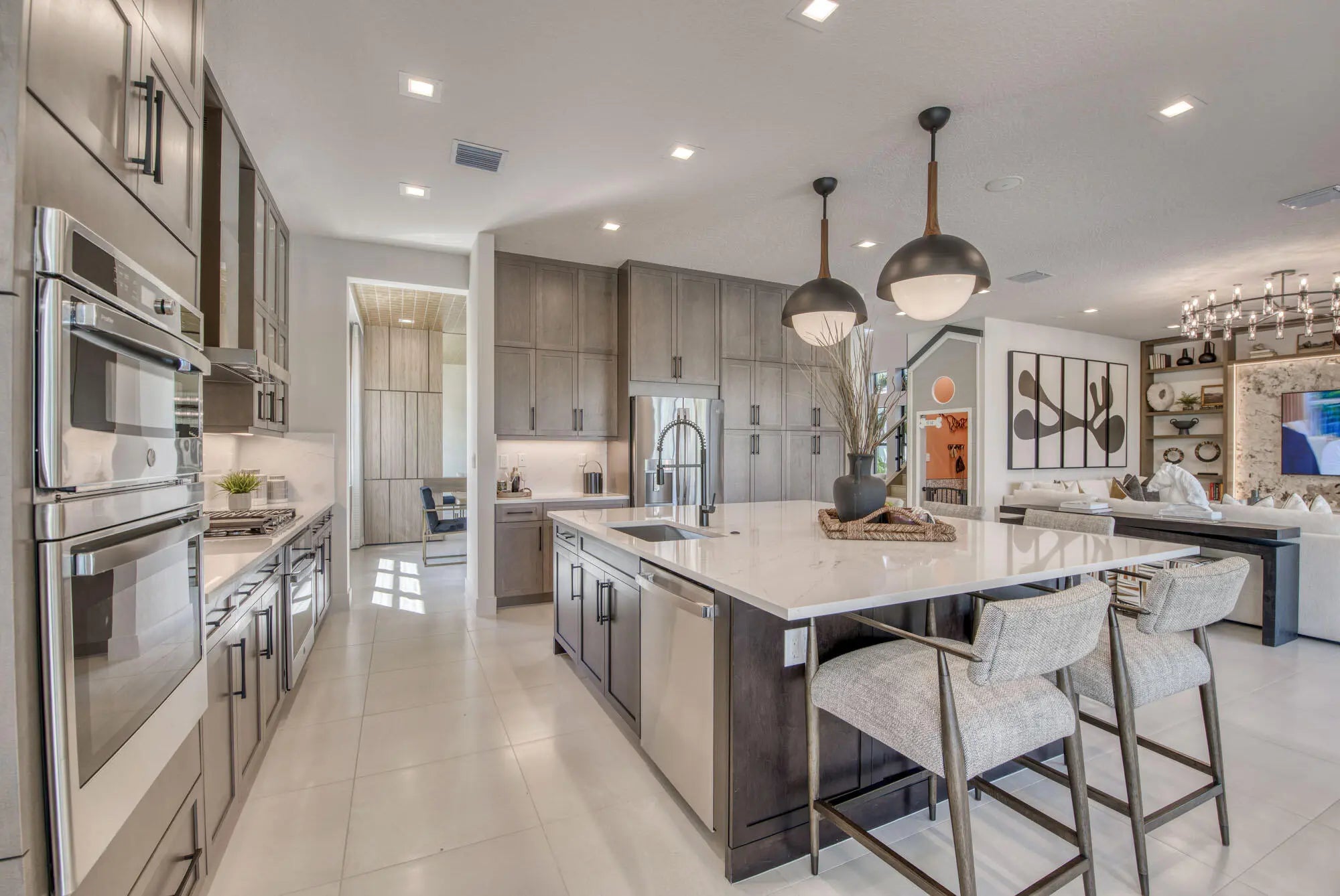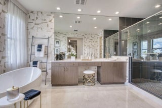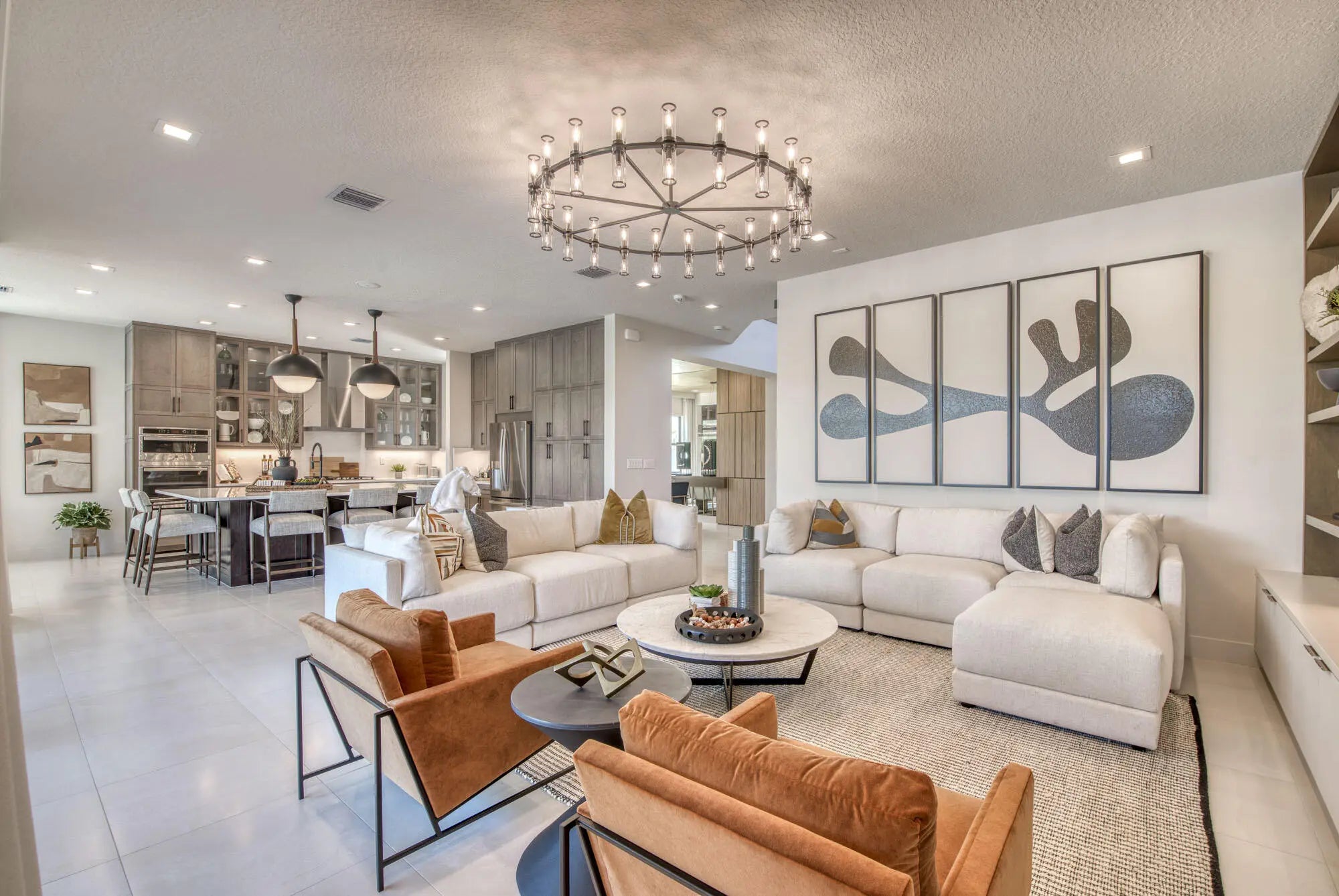Modern Luxury in Apex at Avenir. This 5-bedroom, 7-bath lakefront home combines elegant design with functional living spaces, including a loft and 2-car garage. The interior features porcelain floor in key areas such as the foyer, great room, family dining, and laundry room. The gourmet kitchen is appointed with upgraded cabinetry, sleek quartz countertops with a flat polished edge, a full backsplash, GE appliances including a gas cooktop, and a large island ideal for cooking and entertaining. The laundry room offers upgraded cabinets with quartz countertops and a built-in sink for added convenience. include a gas stub-out for a future summer kitchen, pool pre-wire, 20 AMP garage receptacles for a future refrigerator, USB/C receptacles in the kitchen and primary bedroom, and a conduit for future EV charger installation. Experience the exceptional lifestyle and ideal location of Apex at Avenir, with easy access to the best of Palm Beach County. Estimated delivery: April/May 2026.