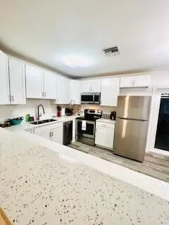 Rare opportunity to own this special property consisting of 2 completely separate homes on the same lot. Great for long term rentals, short terms rentals or AirBnB. Both homes were newly renovated in 2023 and feature: two year old roofs, new attic insulation, impact windows and doors, kitchens with Quartz counters and Stainless Steel appliances, remodeled bathrooms, newer AC systems, newer water heaters, laminate flooring throughout and tiles in bathrooms. The front house is a 2/2 with a large bonus room, carport, and laundry room. The rear house is a 2/1 with a bonus room, laundry room and lots of privacy- it cannot be seen from the street. Carport, driveway, gravel area and 2nd driveway offer lots of parking. Property also has an RV hook-up. RV does not convey.