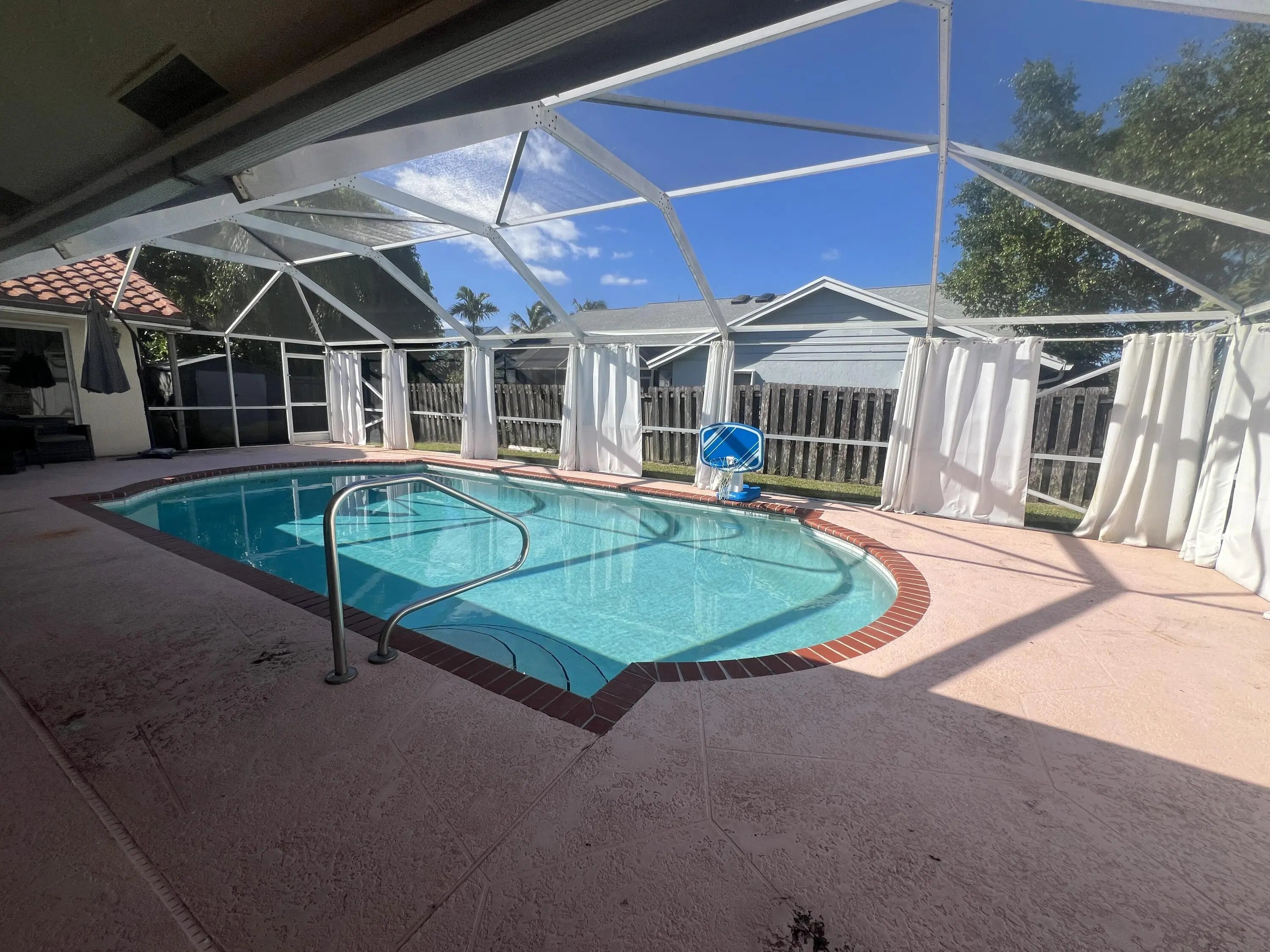 NO HOA !! Single family detached home with split 4 bedrooms, 2 full baths, 2 car garage house with an open floor plan, volume ceilings, private screened pool and patio, and fenced yard! vinyl flooring throughout, newer open kitchen with white cabinets and granite counters, and Stainless Steel appliances. Accordion shutters for hurricane protection. Centrally located in Wellington, walking distance to WEF, close to International Polo Club, Global Dressage, Wellington amphitheater, shopping, restaurants, Publix. Pets are welcomed!!This will not last ...