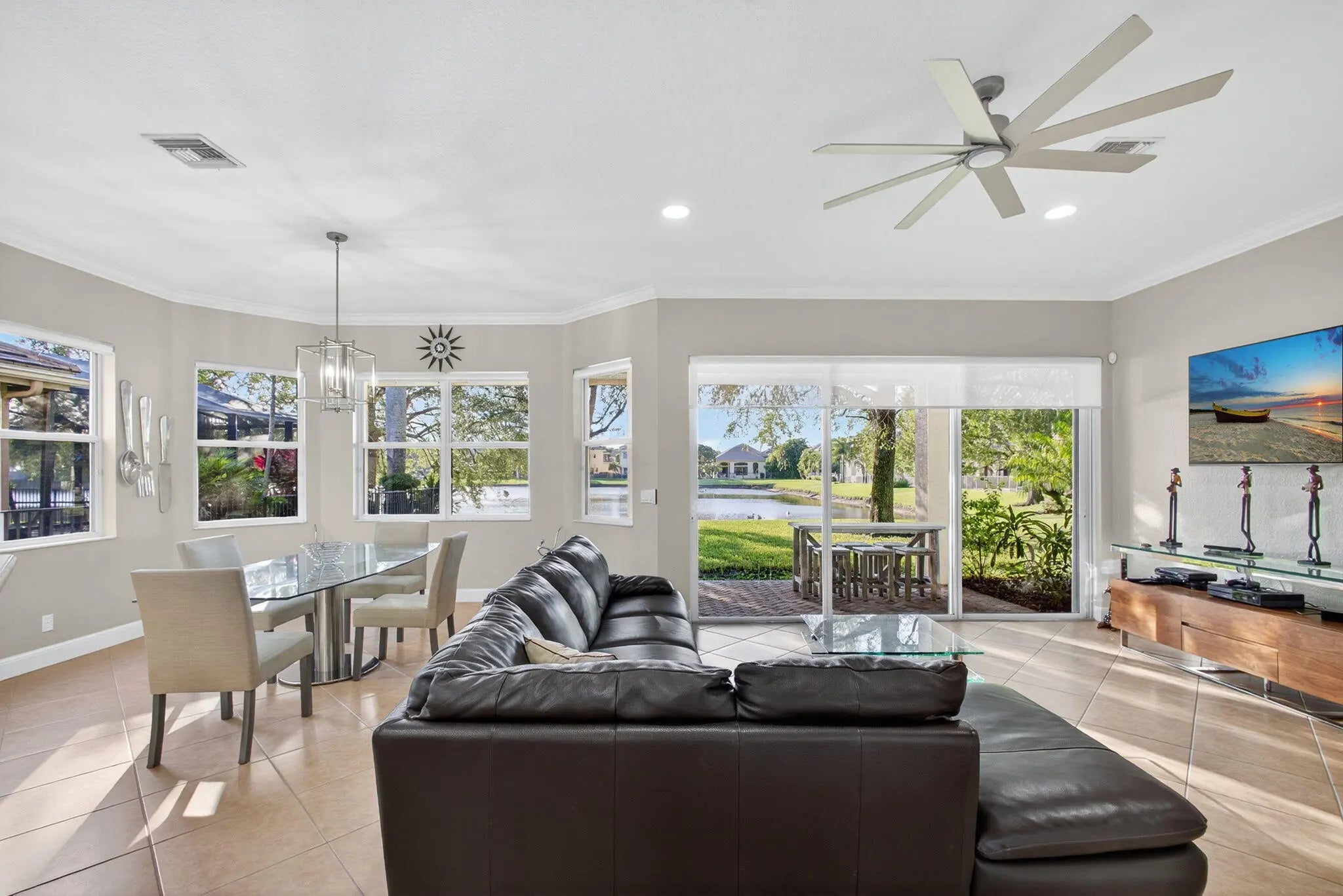 Discover Tranquility & Comfort in this Beautifully Designed 5 Bedroom, 3 Bath Home w/2 Car Garage, Ideally Situated on a Quiet Cul-de-Sac Overlooking the Largest Lake in the Community. The Thoughtfully Designed Floor Plan Features a Convenient 1st Floor Bedroom & Full Bath Perfect for Guests Step Inside to Find an Open & Versatile Floor Plan, Featuring a Spacious Upgraded Kitchen w/Custom Cabinetry, Granite Countertops, & Gas Cooktop Perfect for the Home Chef. The Adjoining Living & Dining Areas are Highlighted by Diagonal Tile Flooring & Stunning Wrought Iron Staircase that adds Timeless Sophistication. Upstairs, the Spacious Primary Suite has 2 Large Walk-in Closets & Spa-Inspired Bathroom with Granite Finishes, Soaking Tub w/Walk In Shower & 3 additional bedrooms share this Level.... While the Oversized Backyard Provides Endless Possibilities for Outdoor Enjoyment, with Ample Space for a Pool or Entertaining Spaceall Overlooking Breathtaking Lake Views. Additional Highlights include a Gas Water Heater, Stone-Accented Exterior, & Lake-Fed Sprinklers for Cost-Efficient Maintenance. Featuring CBS Construction on Both Floors, this Home offers Peace of Mind & Exceptional Craftsmanship