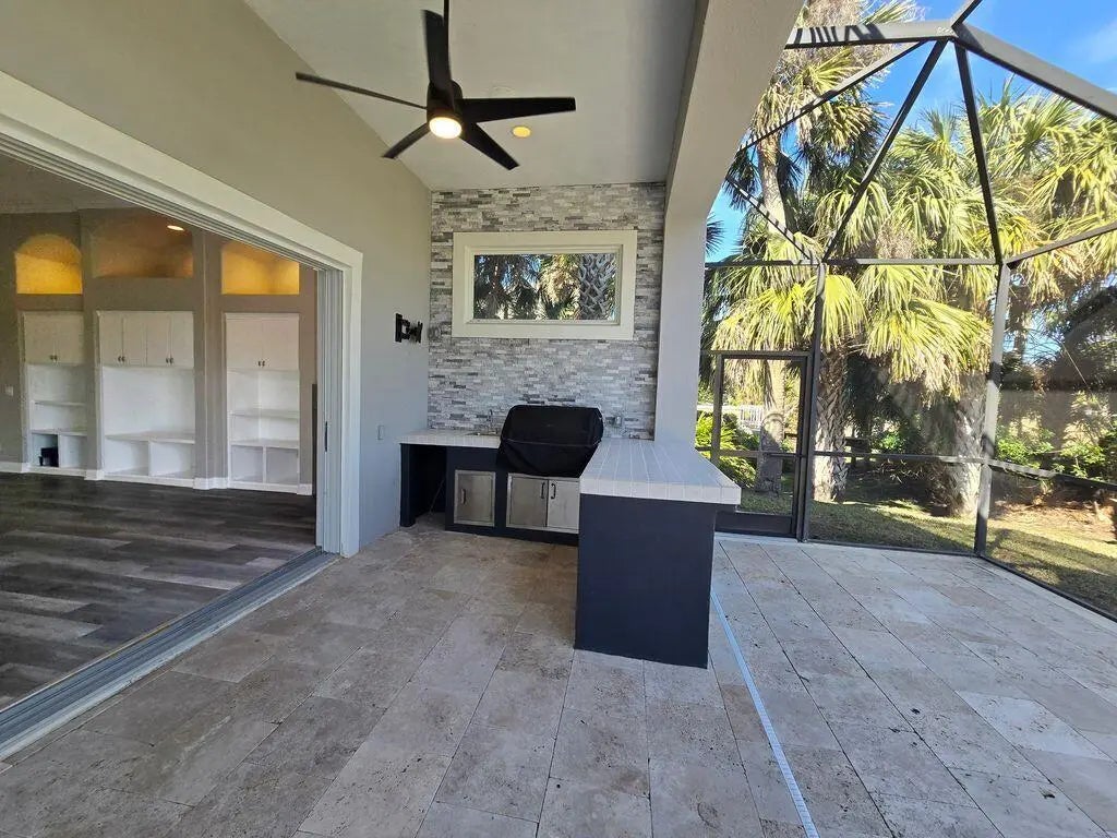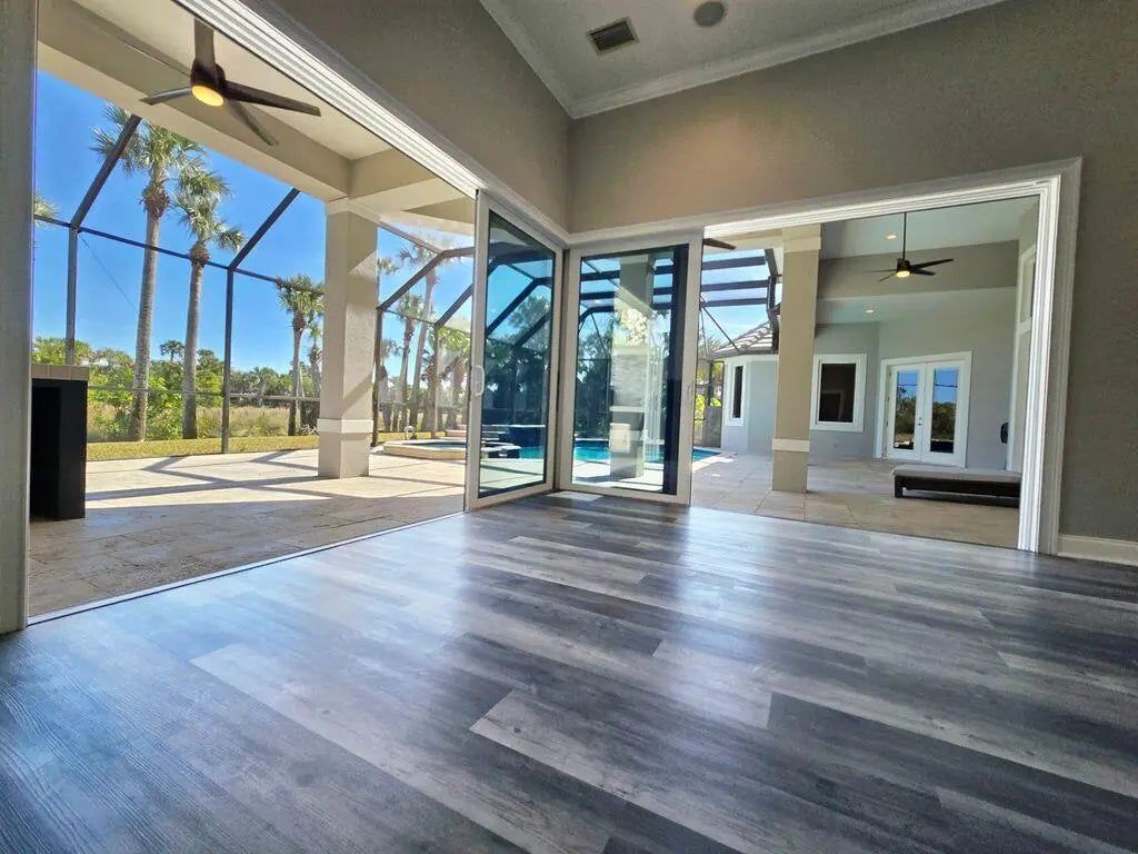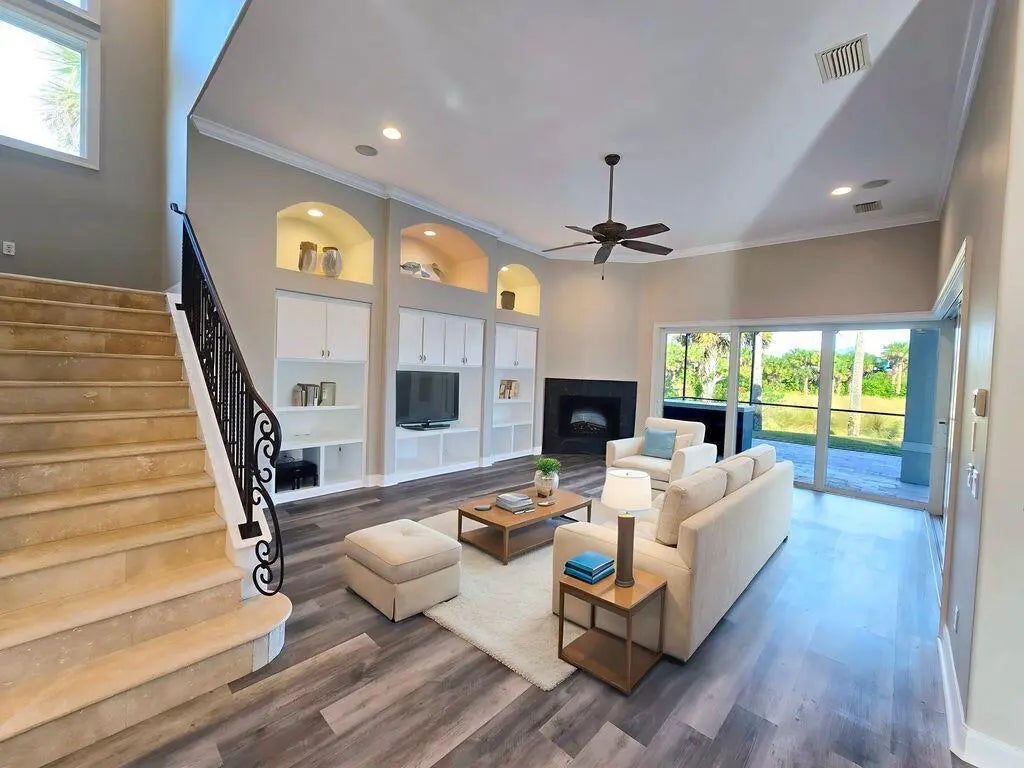 One or more photo(s) has been virtually staged. Repositioned under $1.5M at approximately $305/sf, materially below current listings (approx. $394-$866/sf at time of posting) despite hundreds of thousands in 2024-2025 improvements, a newer concrete tile roof, and a very favorable insurance profile. Layout: Grand entry with 17 ft ceilings and polished 24x24 travertine. Approx. 70 low-e windows and wide sliders open to a heated pool and spa with six waterfalls, a travertine patio, covered lanai, and summer kitchen. Concrete-block construction. Primary suite on main. Upstairs: 2 bedrooms, 2 full baths, and a dedicated theater. Downstairs: 3 bedrooms and 4 full baths plus all main living areas. Total 5 bedrooms and 6 full baths. Large custom office and generous living and dining The primary suite includes French-door access to the pool/patio, a fireplace, a new steam shower (2025), a jetted tub, and an oversized closet with a marble island and chandelier. Recently partially updated kitchen features quartz countertops and high-end appliances. Upgrades 2024-2025: HVAC - four new Daikin Fit inverter systems (12-year transferable warranties) with smart thermostats, whole-house air purification and air-quality monitoring, extensive new ductwork and true zoning. Kitchen/laundry - new Sub-Zero French-door refrigerator; new Bosch dishwasher; new wine cooler; new propane water heater with whole-house recirculation; new garbage disposal; new washer and dryer (convey). Finishes/automation - new lighting automation and fixtures; multiple new Grohe plumbing fixtures; extensive new flooring and paint; updated window coverings; refreshed screen enclosure with new panels and doors; updated 20-speaker, 8-zone sound system; new low-maintenance tropical landscaping with new automatic irrigation and fruiting banana trees. Purchased buried propane tank which is now owned rather than leased. Pool/Spa: new valves and sensors, new pump and filter, and a new Pentair 400,000 BTU heater for fast spa heat in winter. Waterfront improvements: walkover rebuilt in 2025; expansive dock with power and water; freshly serviced 10,000-lb Deco lift with new motor and gearbox; new kayak launch. Outdoors: Oversized paver driveway and large garage. Upstairs tiled balcony overlooks preserve. Starry, dark-sky nights, abundant wildlife, and the sound of ocean waves. Costs (per owner, 2026): newer concrete-tile roof with important wind-mitigation credits makes homeowner's insurance including wind/hurricane $3,564.02/yr (significantly less than most comparable listings); NFIP flood policy about $841/yr (assumable). Private beach access and 24-hour manned gate. Optional Hammock Dunes Club membership with oceanfront clubhouse, gym, croquet, and two Audubon-certified golf courses. Positioned to sell now: newer major systems, extensive 2024-2025 renovations, priced at approximately $305/sf where others are $394-$866/sf. Occupied - no same-day showings; minimum 24 hours' notice.