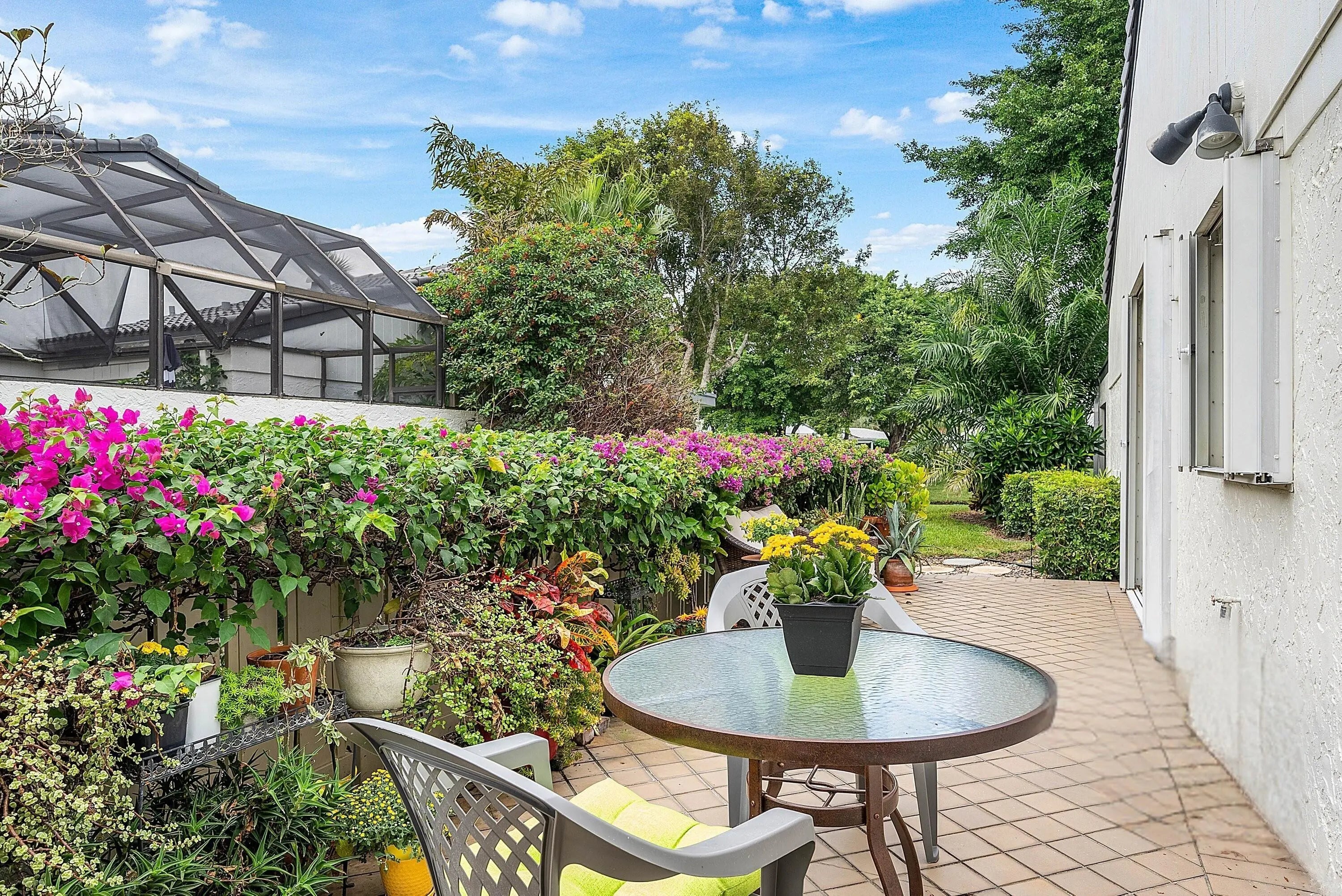 Completely charming villa w/ picturesque lake views! Live effortlessly in this sun-filled home where mornings begin with coffee on one of two private garden patios, afternoons unfold on the lanai overlooking the meandering lake, and evenings glow w/ sunset reflections on the water. In The Villas of Brentwood at Hunters Run Country Club, this 2BR/2BA villa home features vaulted ceilings, clerestory windows, and a spacious layout. The redone kitchen shines w/ modern finishes including quartz counters and light-toned cabinets with matching appliances. The home has a BONUS OFFICE/FLEX SPACE providing versatility for work or visiting family, a FULL-HOUSE GENERATOR, and a 1.5-CAR GARAGE. Conveniently located close to the subdivision pool. A perfect retreat within an amenity-rich country club. Hunters Run Country Club has world-class golf, tennis, pickleball, fitness, dining, and a vibrant social lifestyle. Featuring 3 golf courses, 18 tennis courts, 12 pickleball courts, teams, tournaments, a resort-style pool & poolside bar & dining, several other dining venues, a gym with trainers and classes, a spa & salon, entertainment, events, subdivision pools, and so much more. Located just minutes from Delray Beach's famed Atlantic Ave, the Intracoastal & beaches.