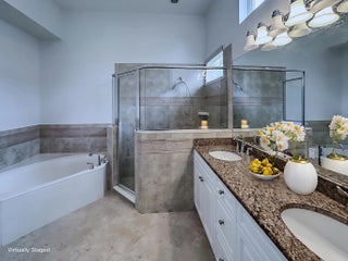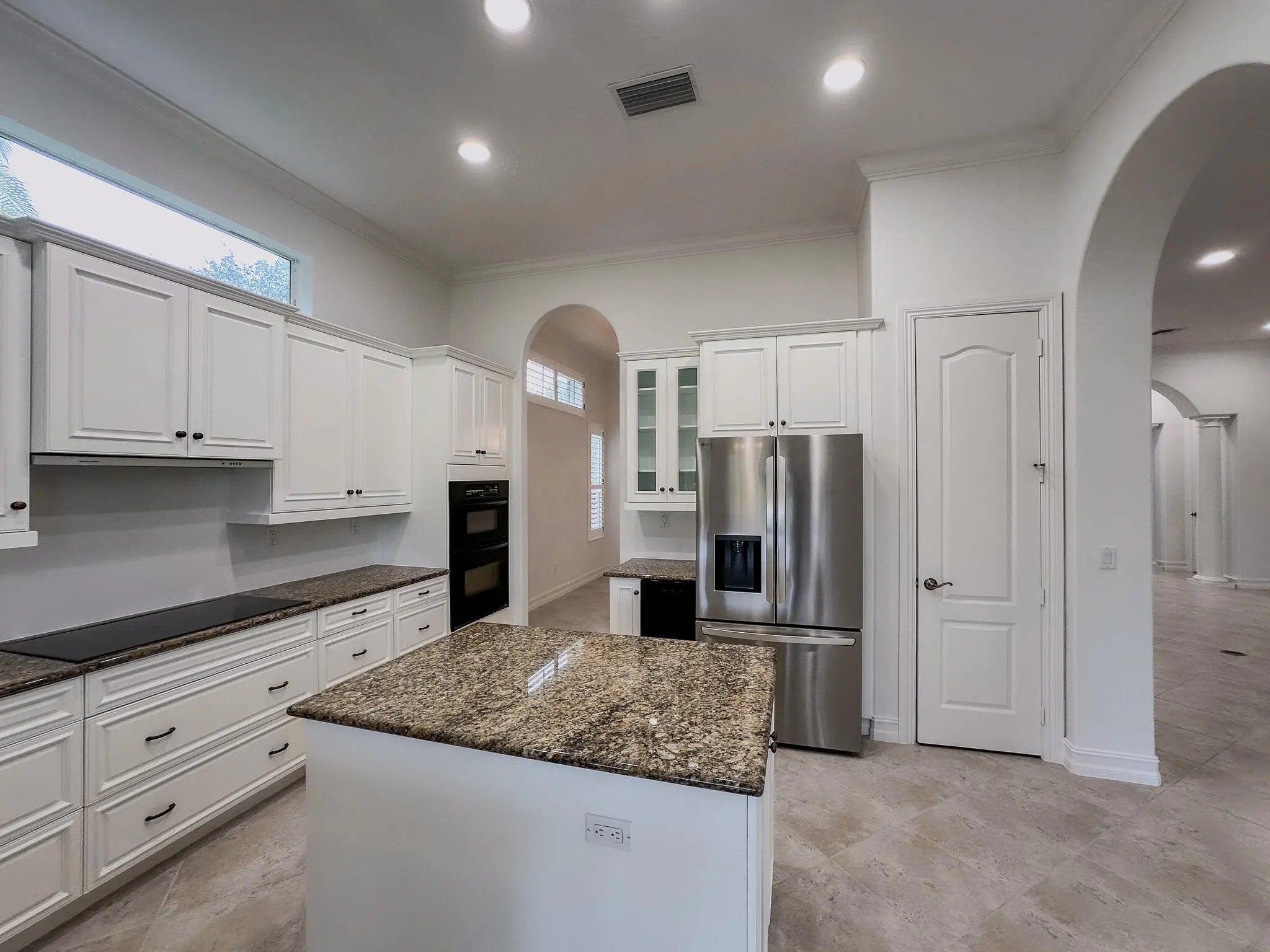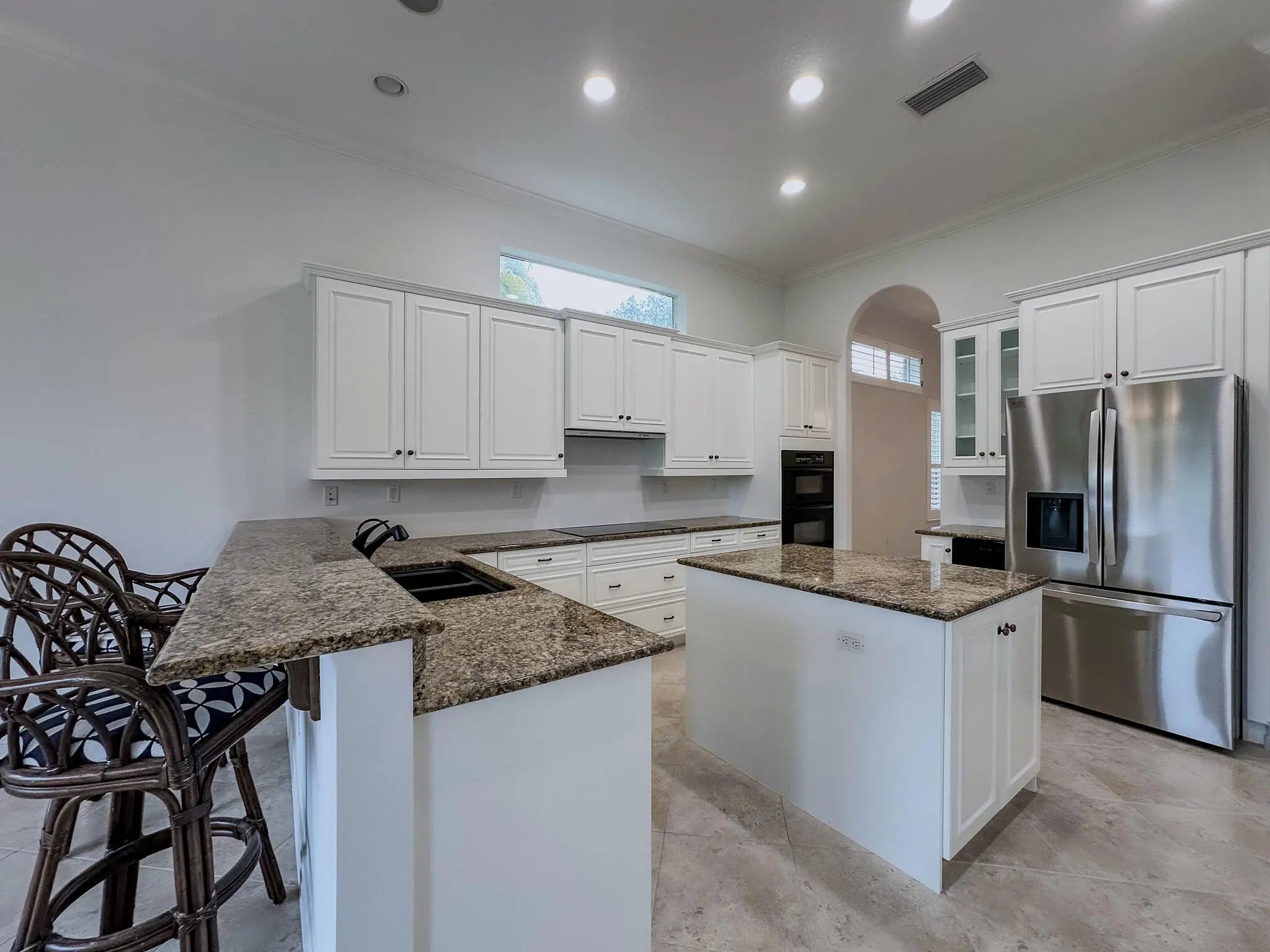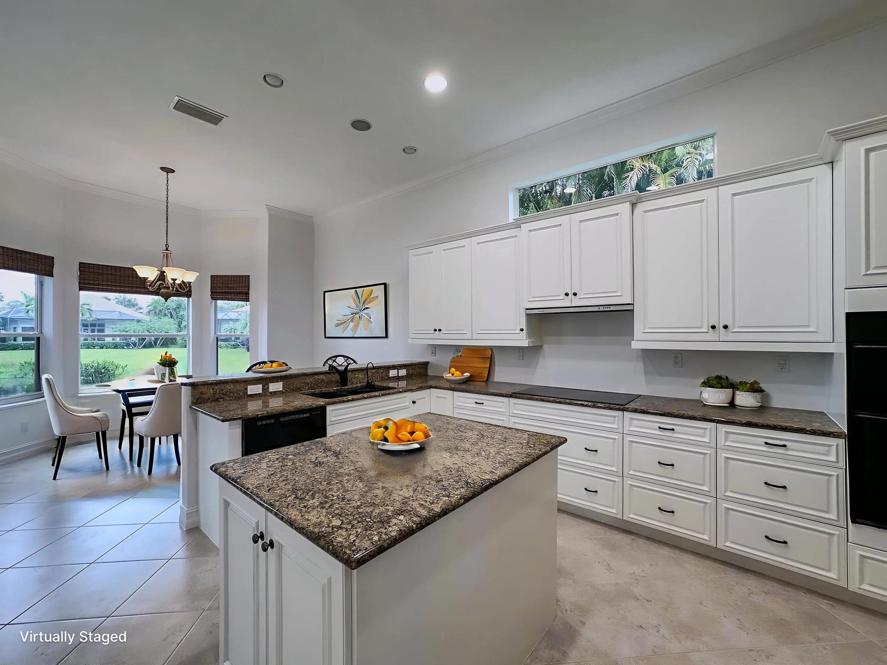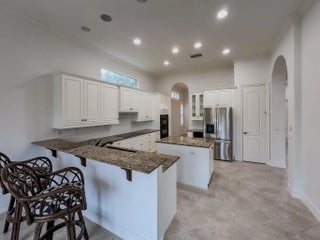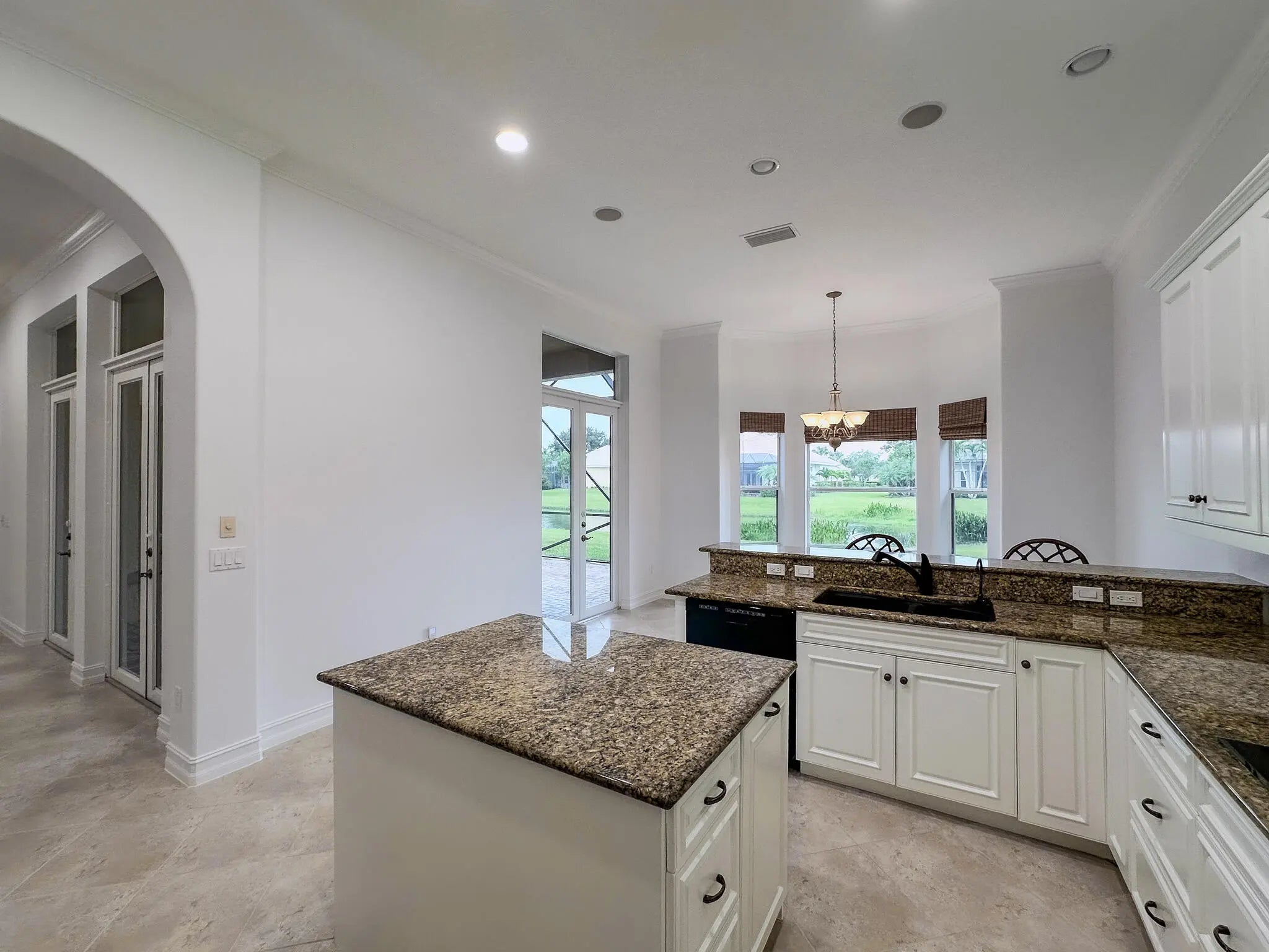 Impact Glass! Gated & Secure! Welcome to River Wind, a friendly and social Vero Beach community where life is truly fabulous. This expanded model offers 4 bedrooms, 4 baths, and a 3-car garage. Recently painted and meticulously maintained, the home features high ceilings, crown molding, tile floors, and a chef's kitchen with granite countertops, 42'' designer cabinets, and a center island. Relax on the screened patio overlooking the lake, surrounded by lush tropical landscaping. Enjoy the clubhouse with heated pool and vibrant atmosphere.