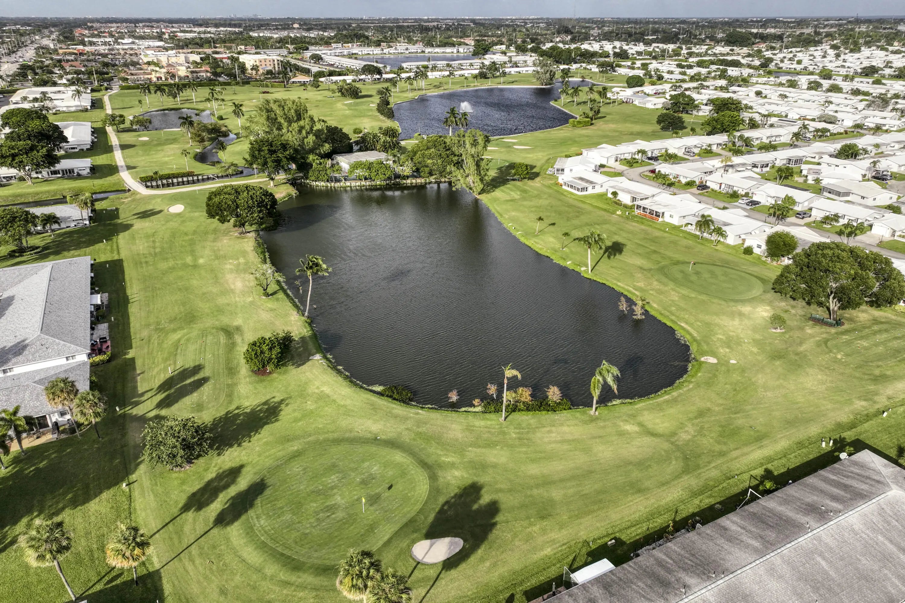 Enjoy the best of South Florida living in this beautifully updated 2-bed/2-bath Condo with lake, canal, and golf course views. Featuring a bright Key West-inspired design with coastal colors, light blue tones, and breezy décor. Located in Leisureville, an active 55+ community where residents play the private 18-hole Par 3 course FREE! Featuring over $40,000 in recent improvements, including impact-resistant hurricane windows/doors, new roof (May 2025, assessment paid), fully remodeled kitchen with new appliances, updated bath, and new washer and dryer. The bright, open layout flows to a patio overlooking the lush grounds, perfect for relaxing or entertaining. Residents enjoy three heated pools, clubhouses, fitness center, sauna, billiards, shuffleboard, bocce, workshops, and a full calendar of social activities. Ideally located near I-95, shopping, dining, medical centers, and beautiful beaches!